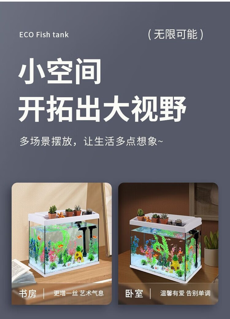 OYKTN鱼缸水族箱客厅小型自循环家用懒人免换水生态创意桌面玻璃金鱼缸 230鱼缸标配-无礼包