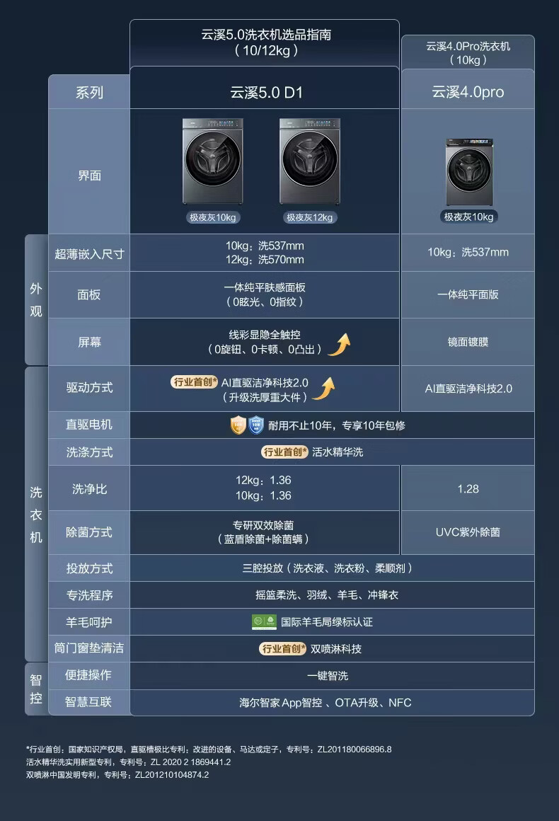 海尔(Haier)云溪5.0 AWE同款 12KG全自动滚筒洗衣机单洗 家用大容量全家筒 AI直驱洁净2.0双效除菌 D1系列换新 全家筒12KG滚筒 单洗