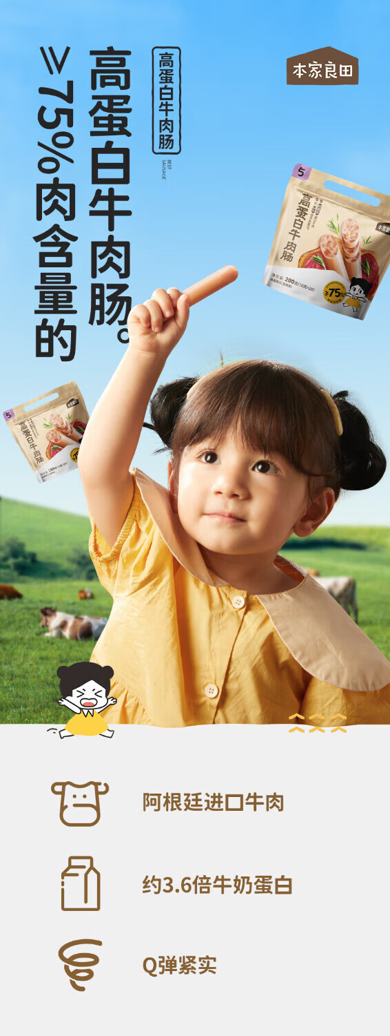 本家良田高蛋白营养牛肉肠200g无添加猪肉火腿肠宝宝儿童零食即食肉肠 【75%的肉含量】牛肉肠200g*2袋
