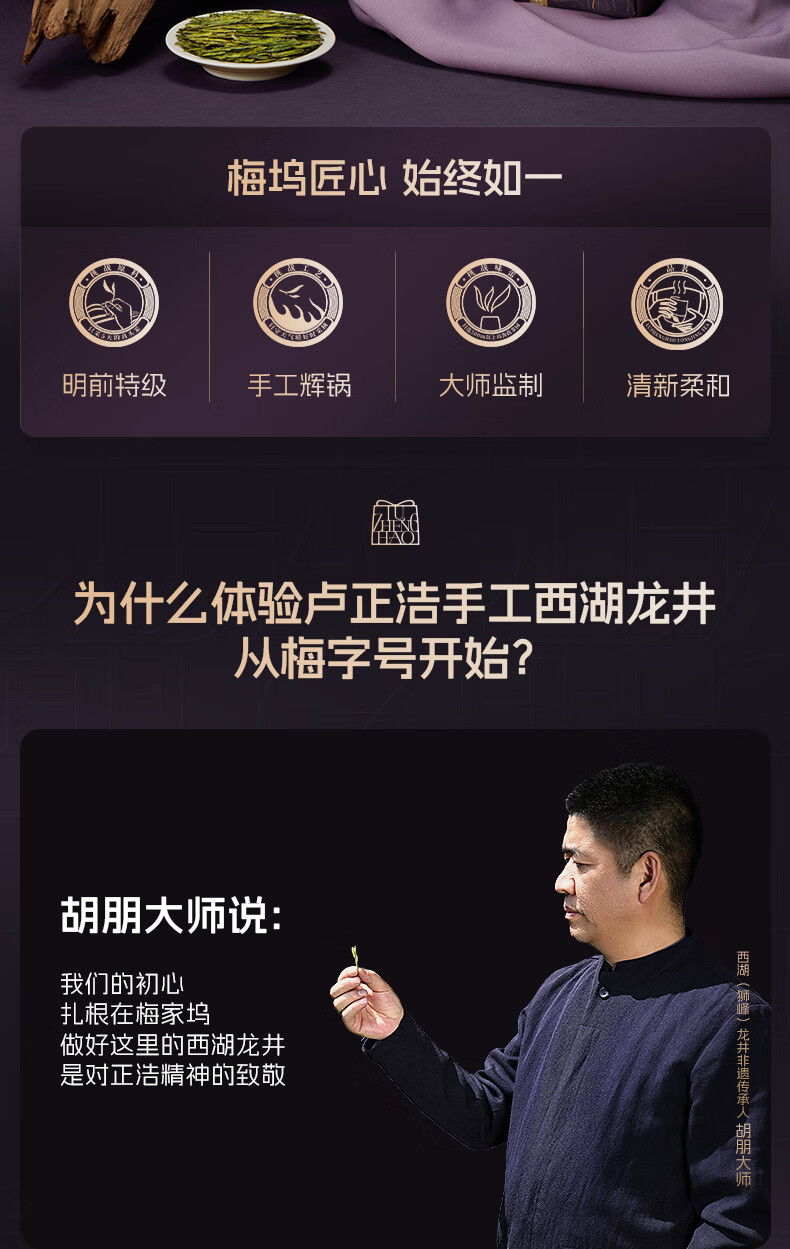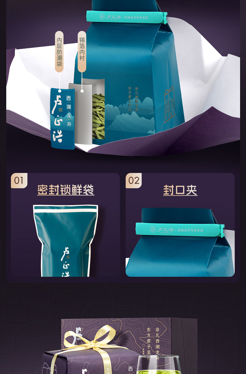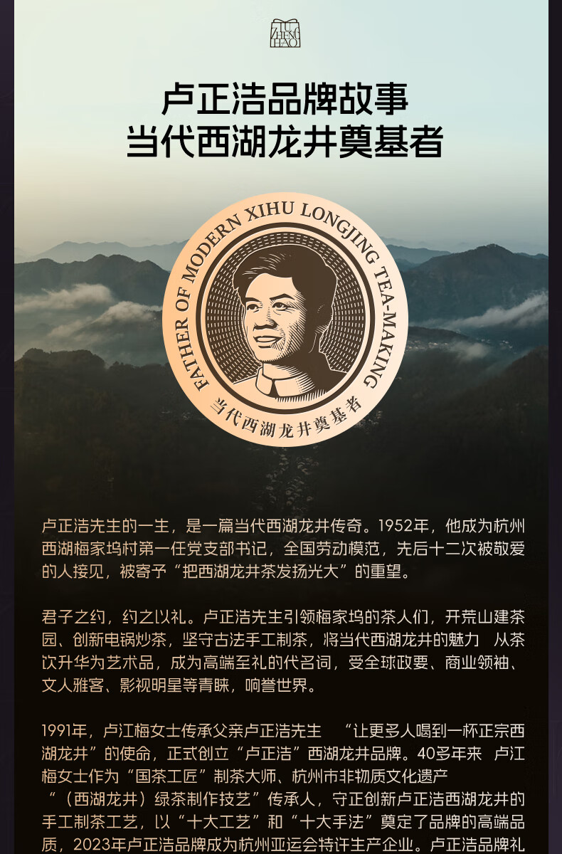 卢正浩绿茶西湖龙井茶特级150g2026新茶预售明前茶叶纸包礼盒源头直发