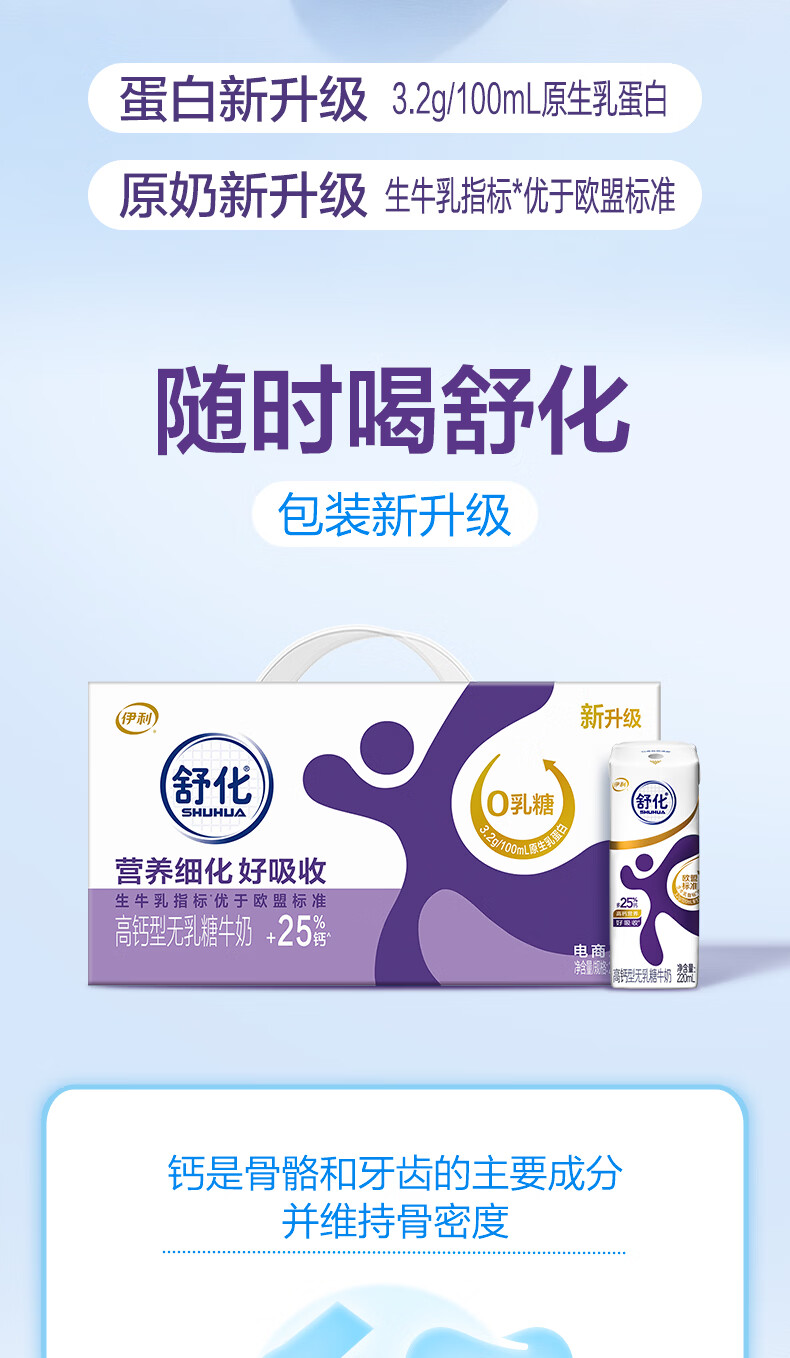 伊利舒化奶无乳糖高钙牛奶220ml*24盒整箱 适合乳糖不耐受 礼盒装 高钙易吸收 2月产
