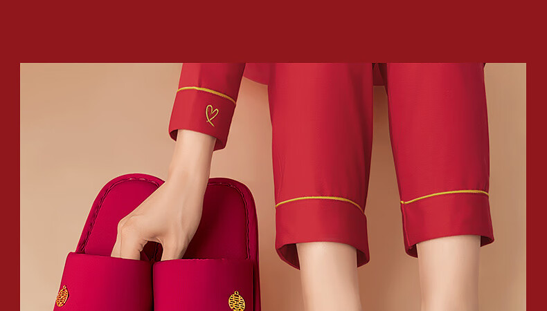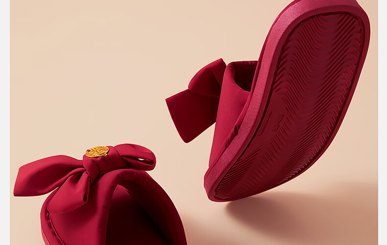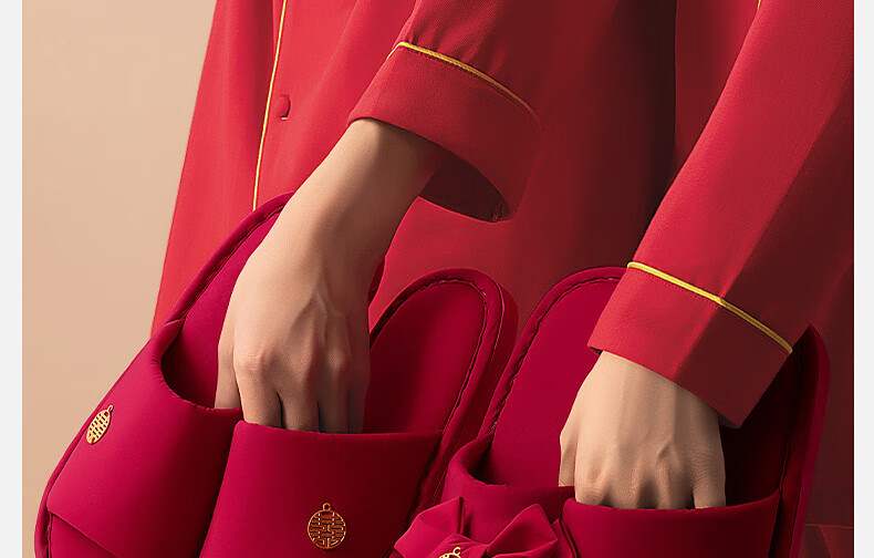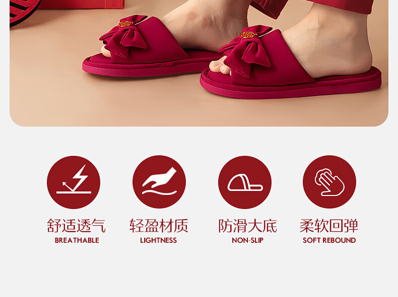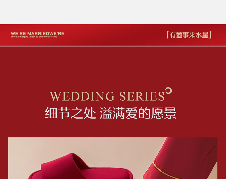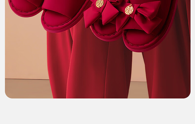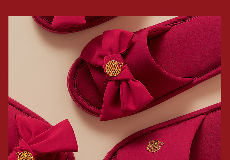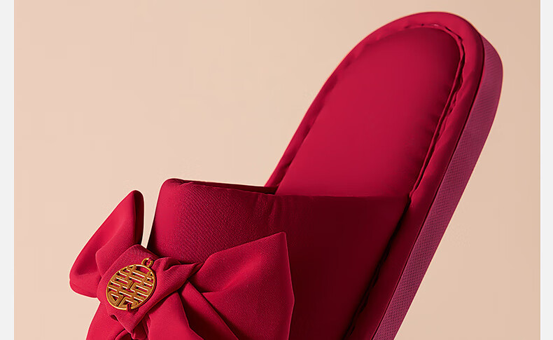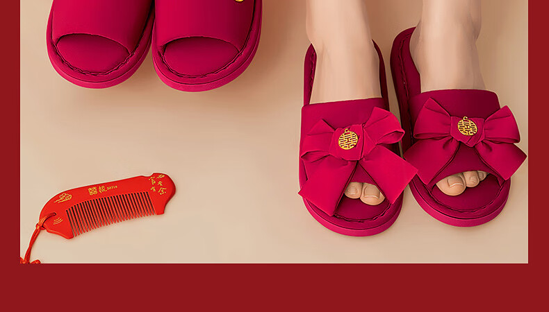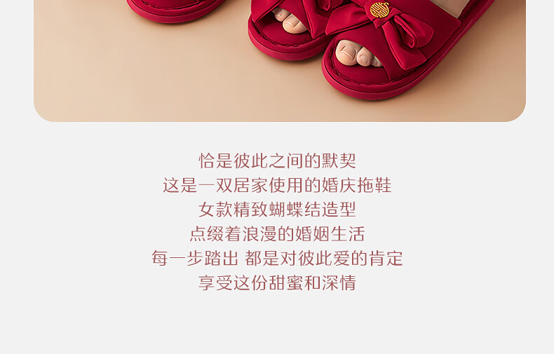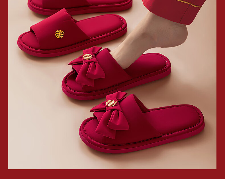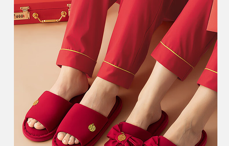 水星家纺 结婚拖鞋情侣红色一双 婚庆红拖鞋喜庆情侣拖鞋【专享】 囍合双影情侣拖鞋女 38-39