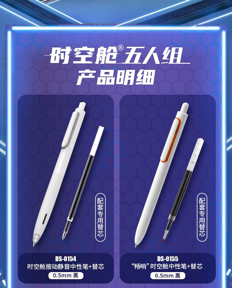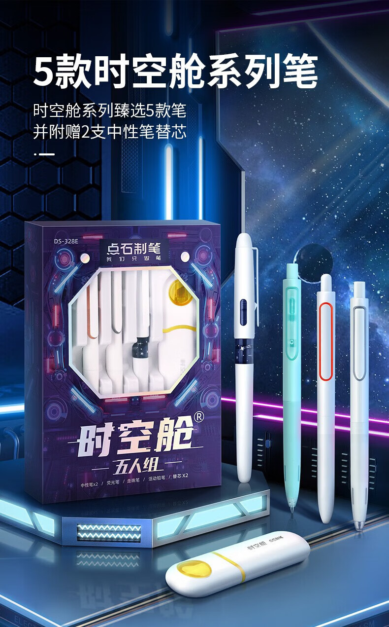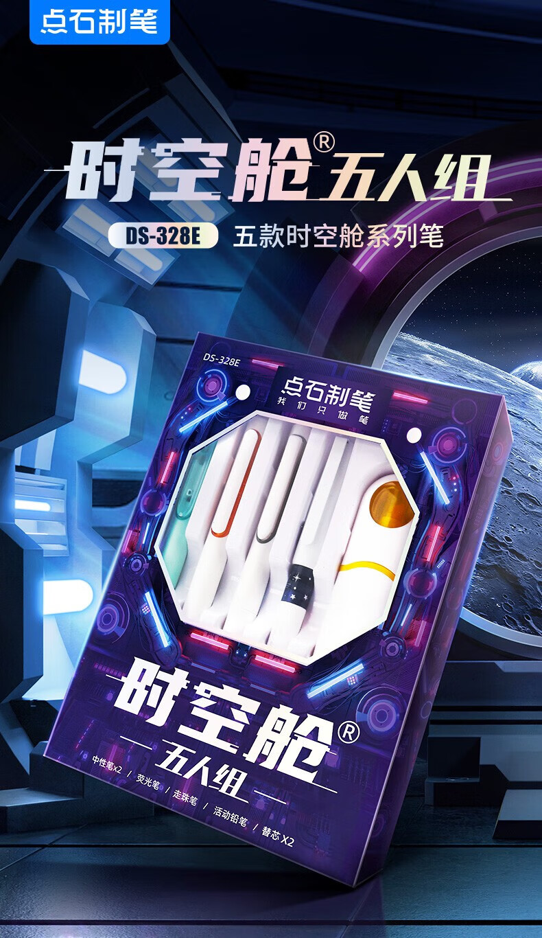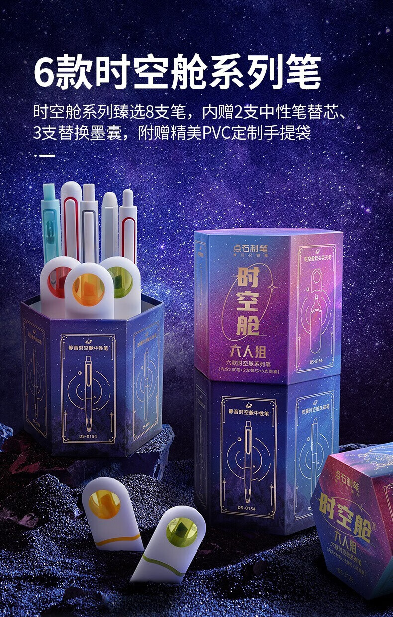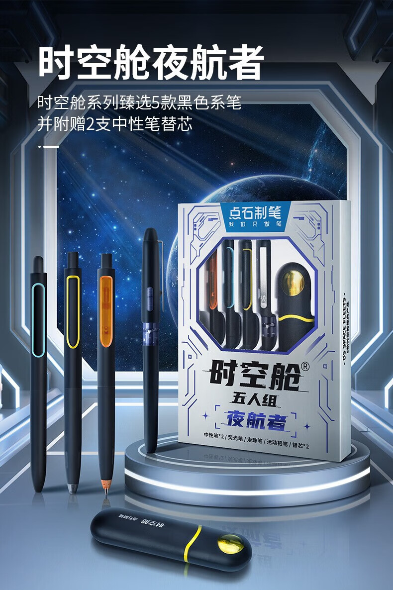 点石时空舱五人组夜航者书写标记六人组人气组时空舱舰队限定套盒按动中性笔高颜值0.5mm标记用笔 (时空舱五人组夜航者)限定套盒