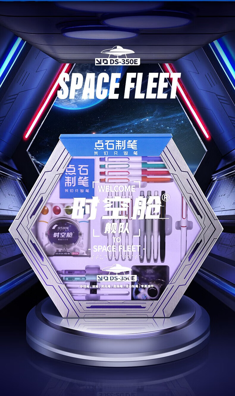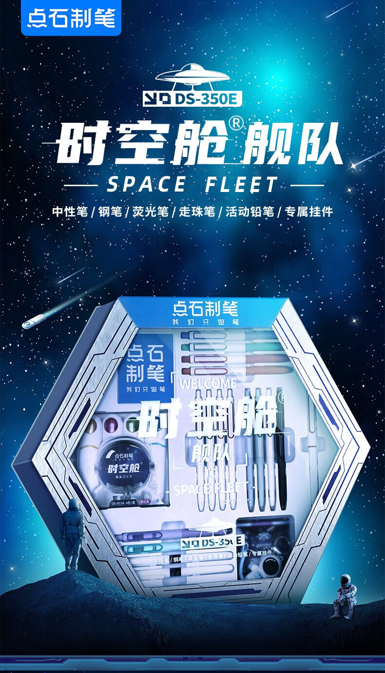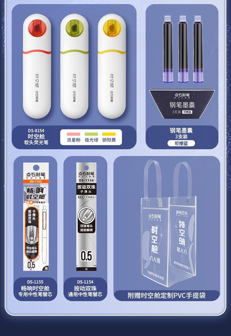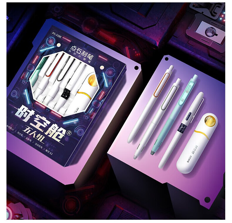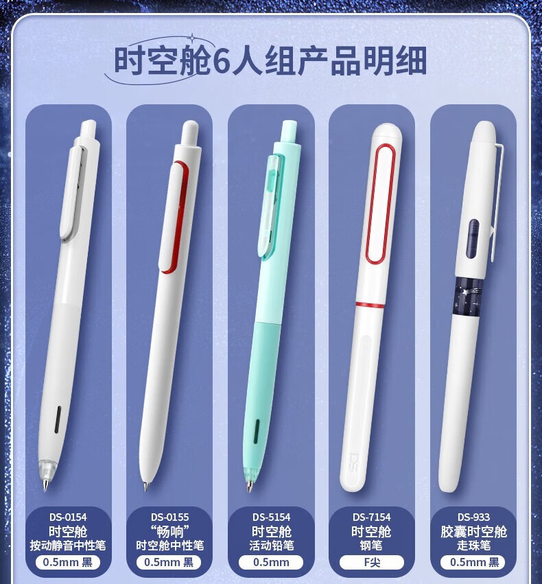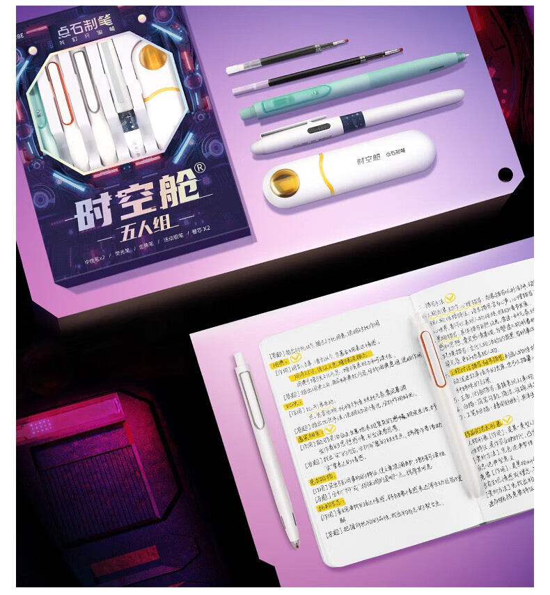 点石时空舱五人组夜航者书写标记六人组人气组时空舱舰队限定套盒按动中性笔高颜值0.5mm标记用笔 (时空舱五人组夜航者)限定套盒