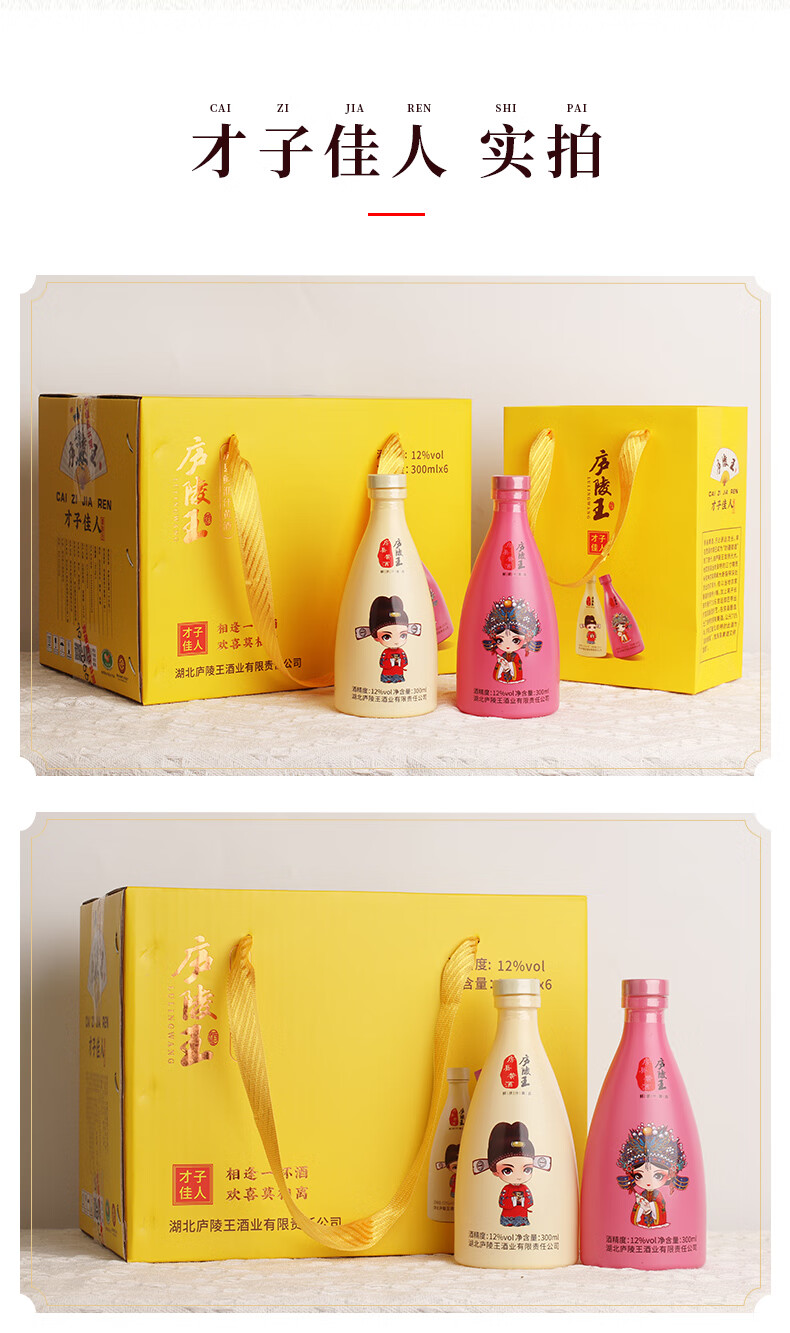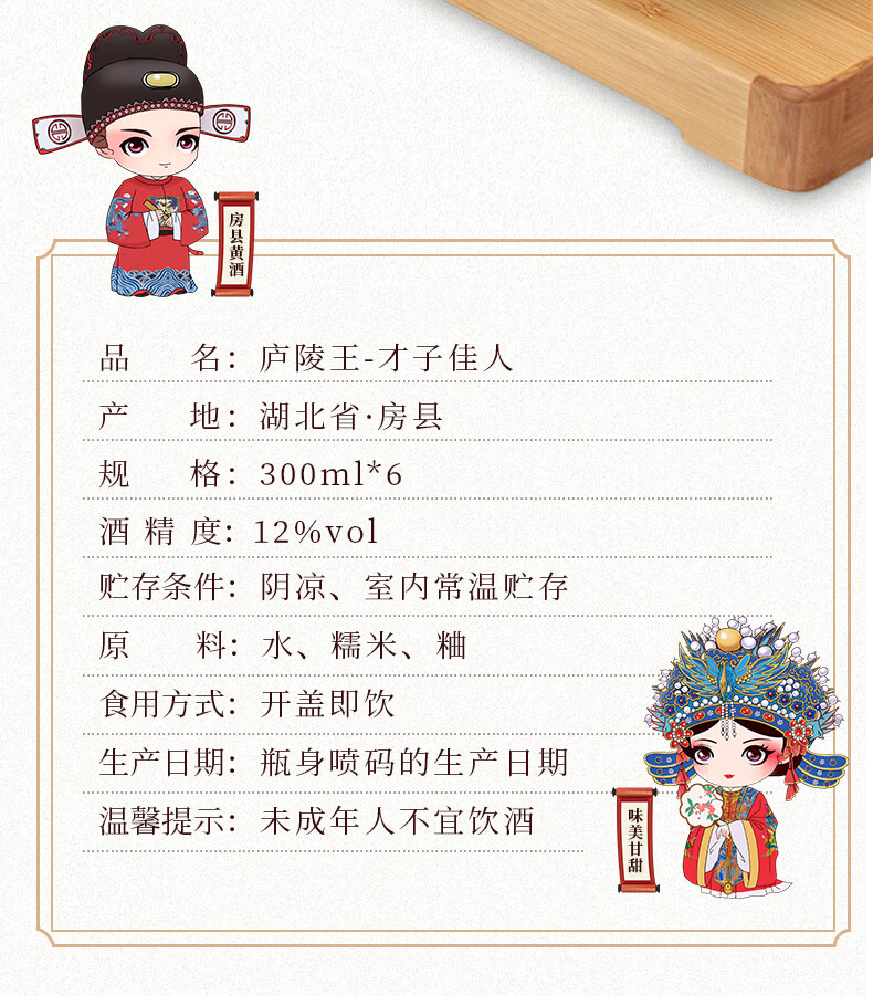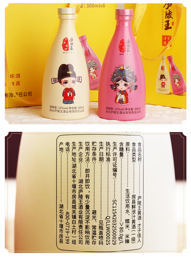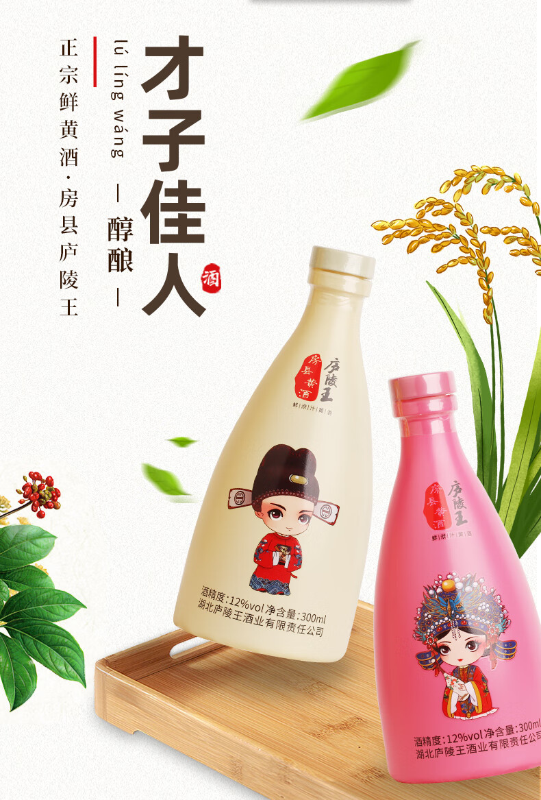 庐陵王 房县黄酒 才子佳人洑汁 300ml*6瓶糯米酒 伴手礼半甜型 300mL 6瓶 整箱装