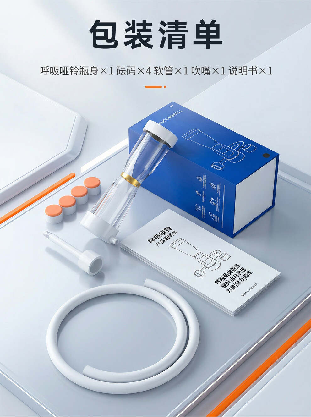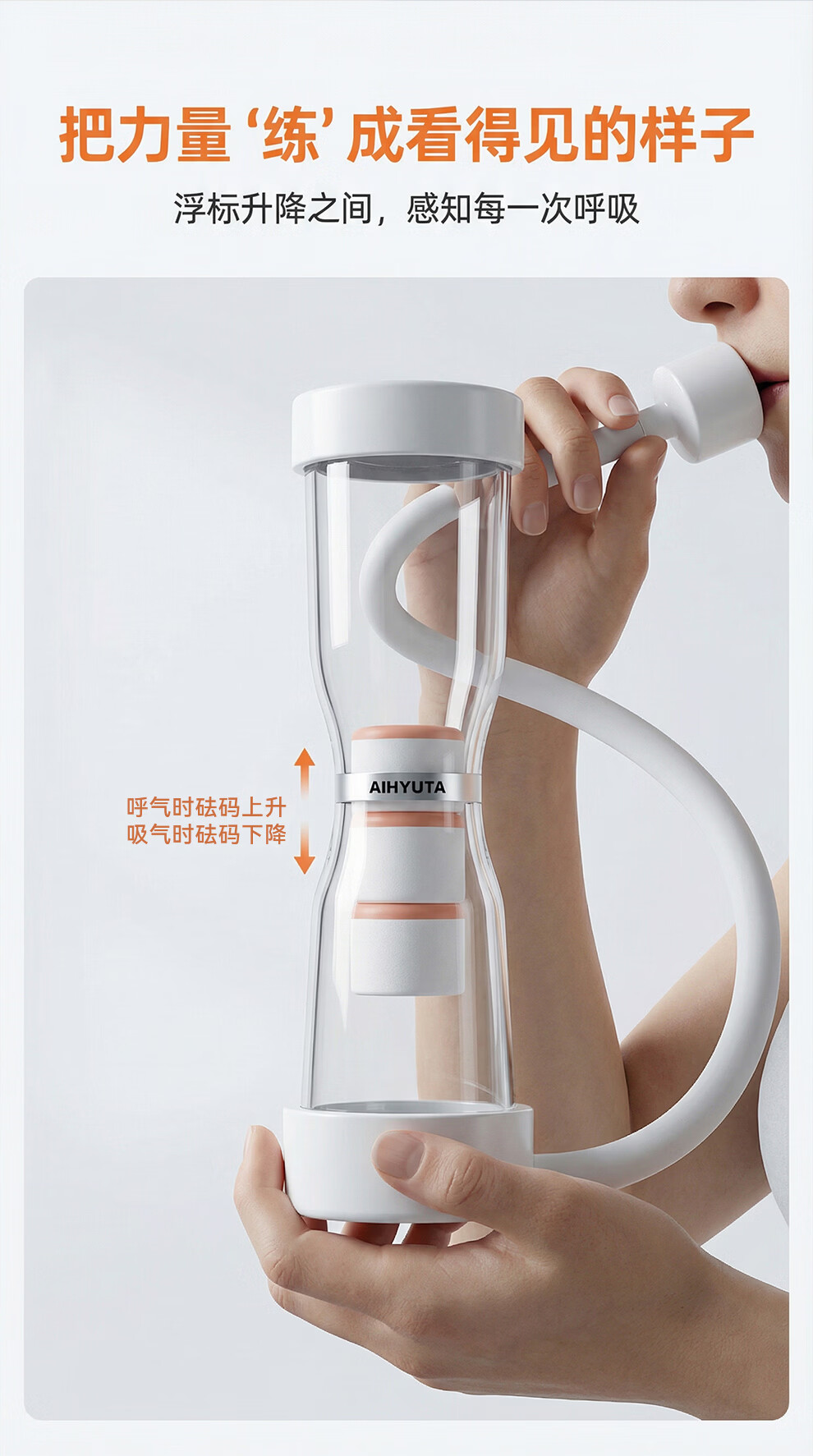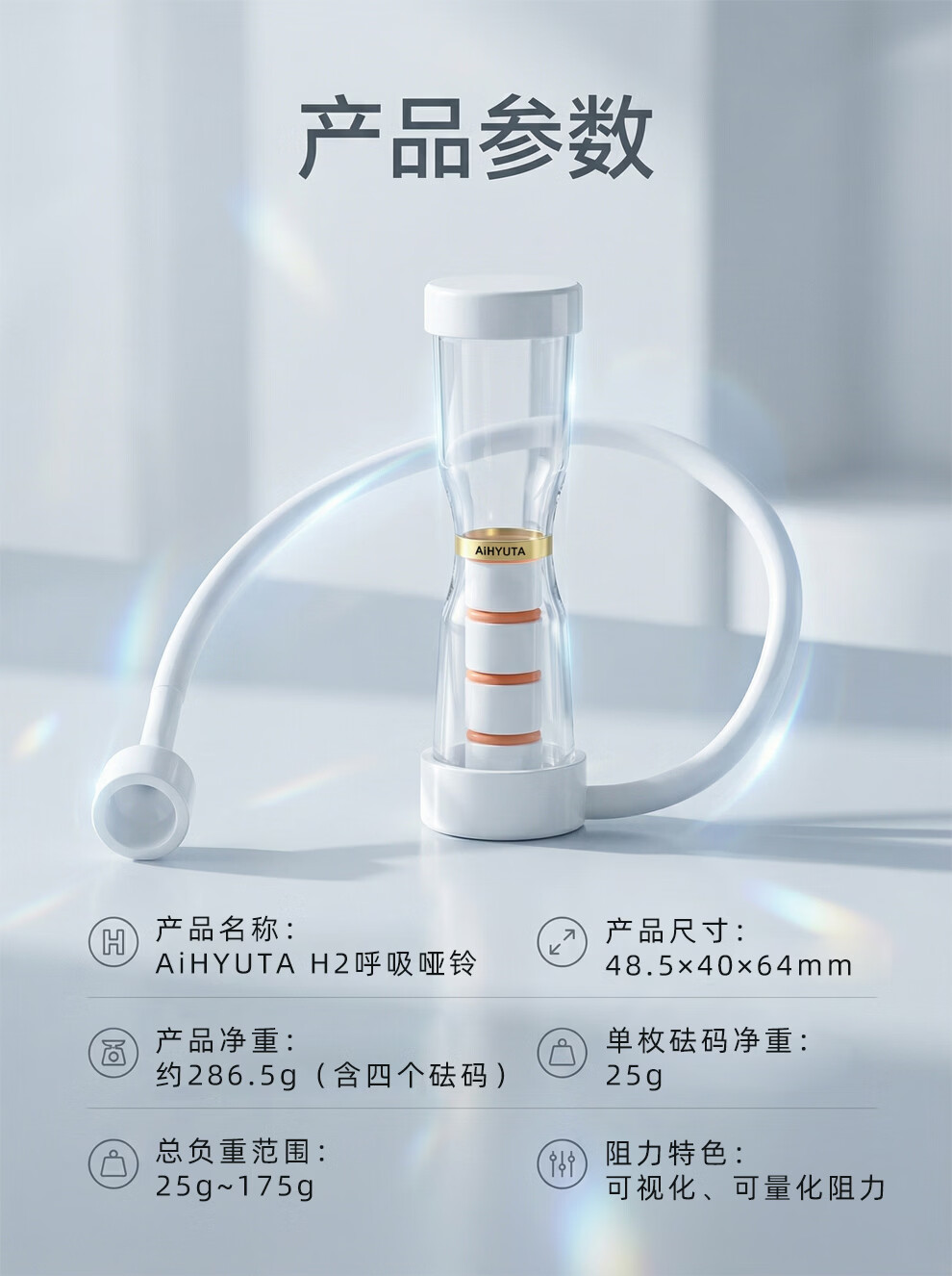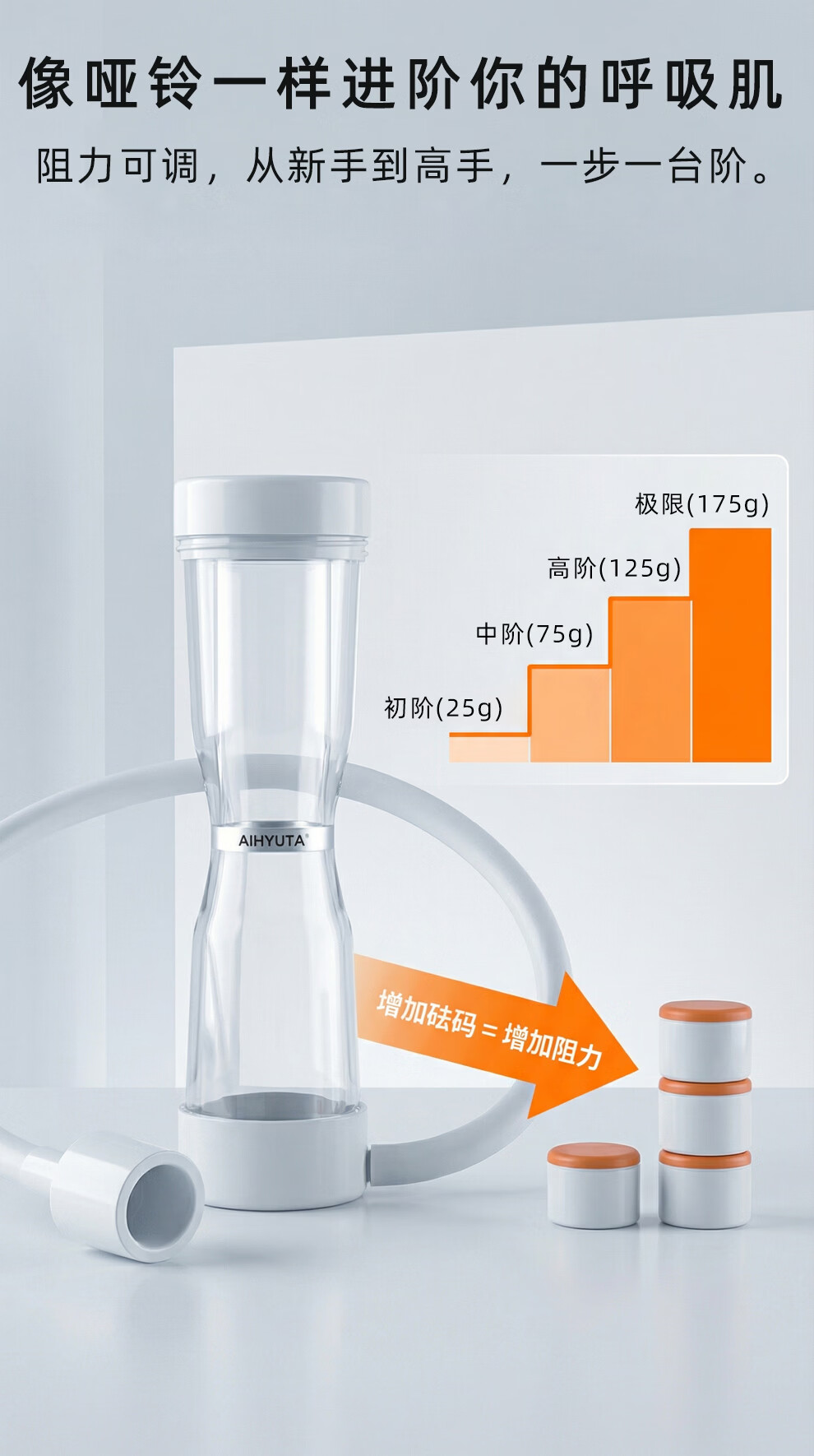 AiHYUTA呼吸哑铃腹式肺活量训练仪器腹肌马甲线盆底肌瘦脸腹部瘦肚子健身 AiHYUTA升级款150g【加厚管壁-白色银环】