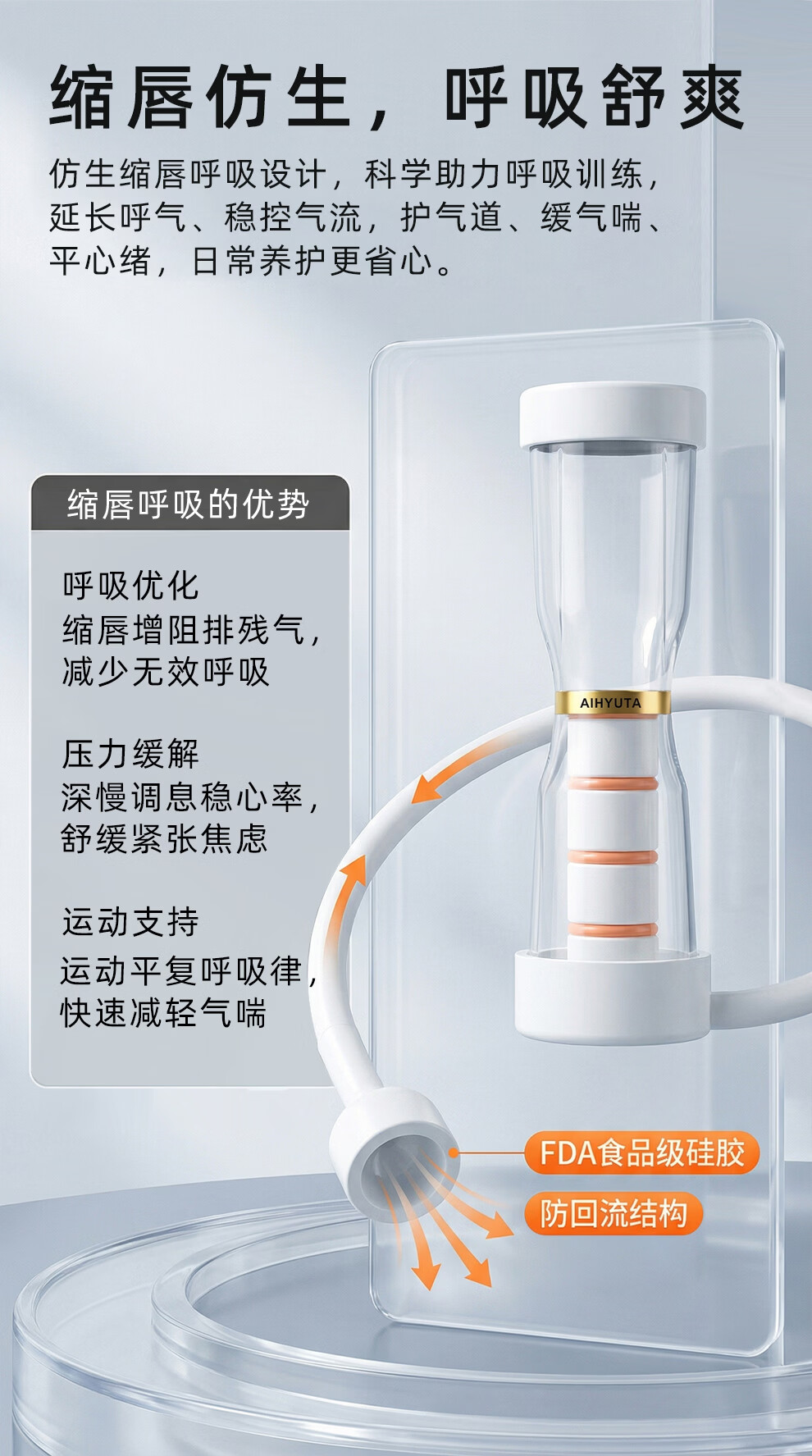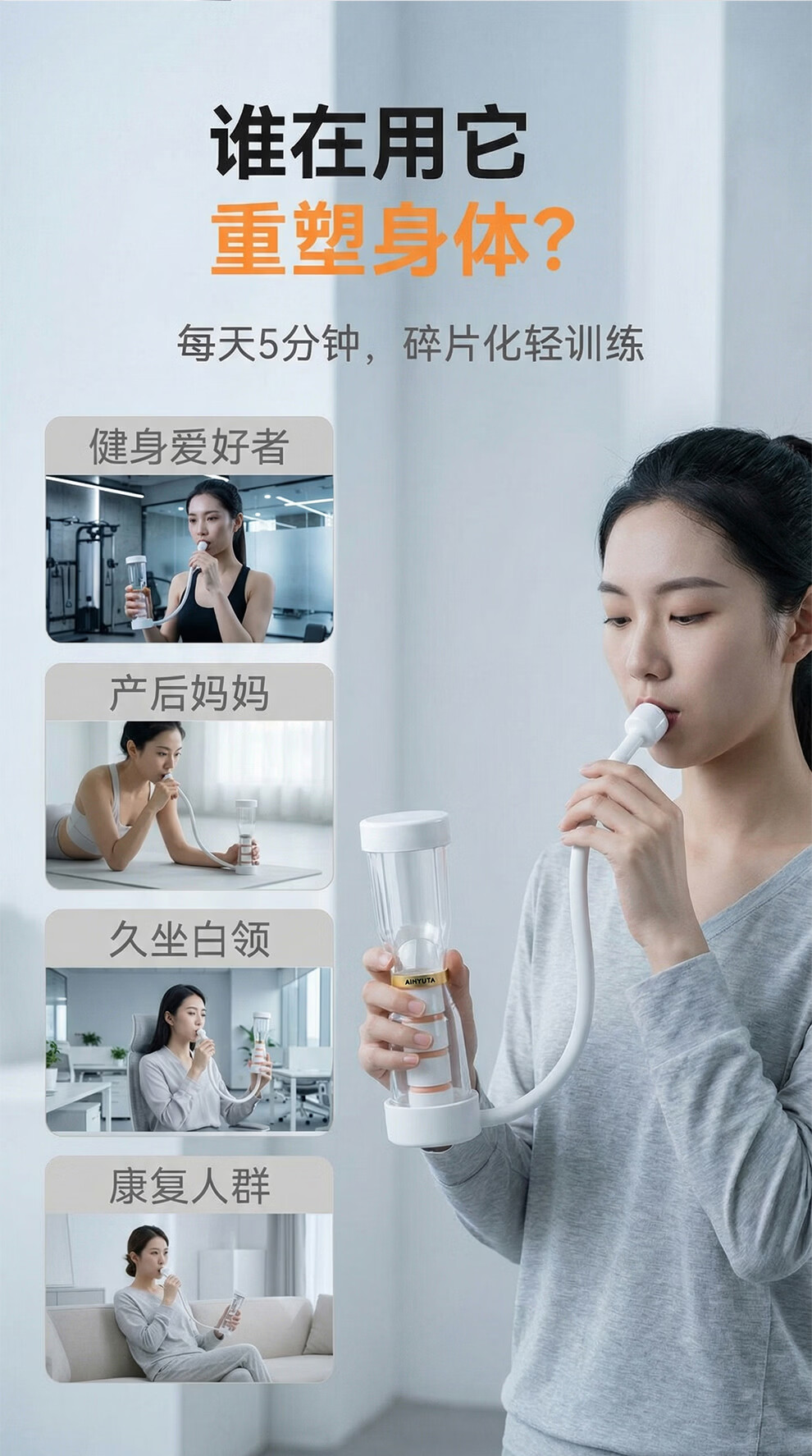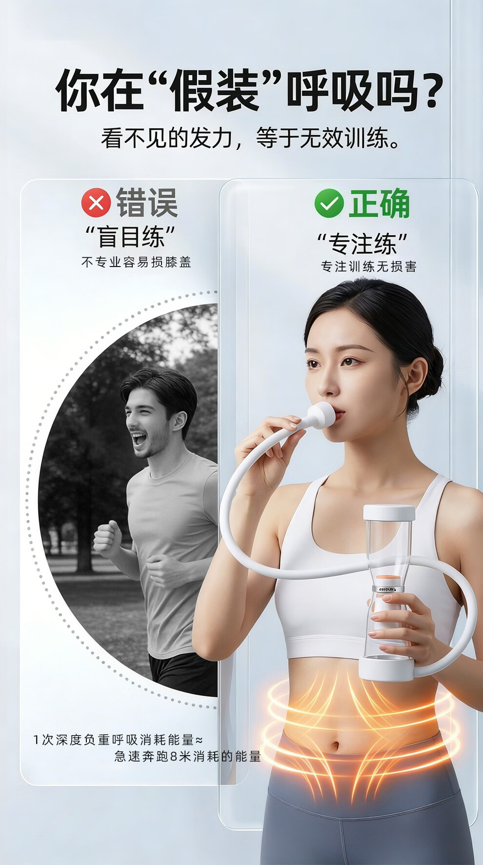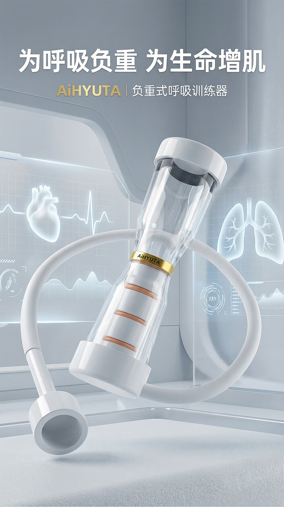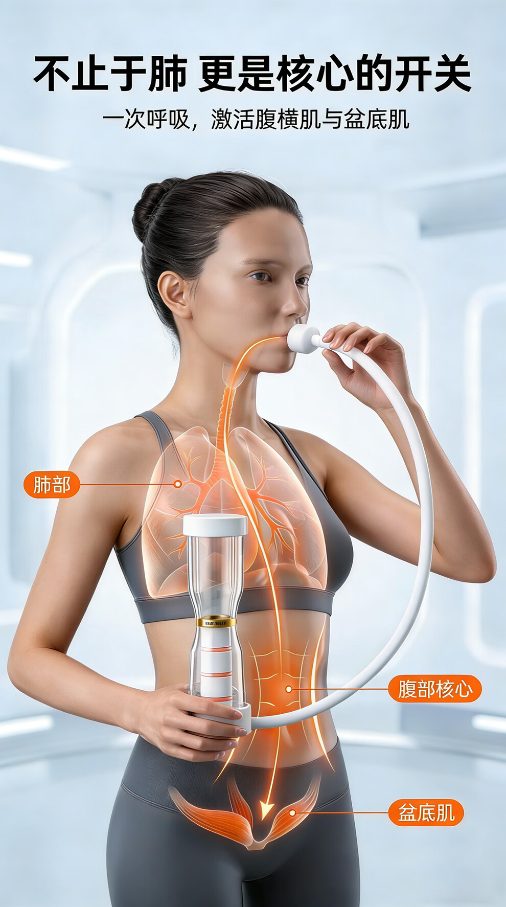 AiHYUTA呼吸哑铃腹式肺活量训练仪器腹肌马甲线盆底肌瘦脸腹部瘦肚子健身 AiHYUTA升级款150g【加厚管壁-白色银环】