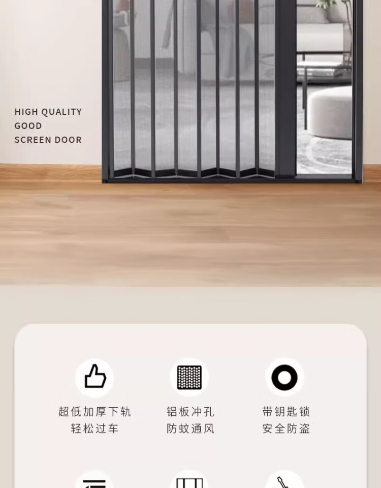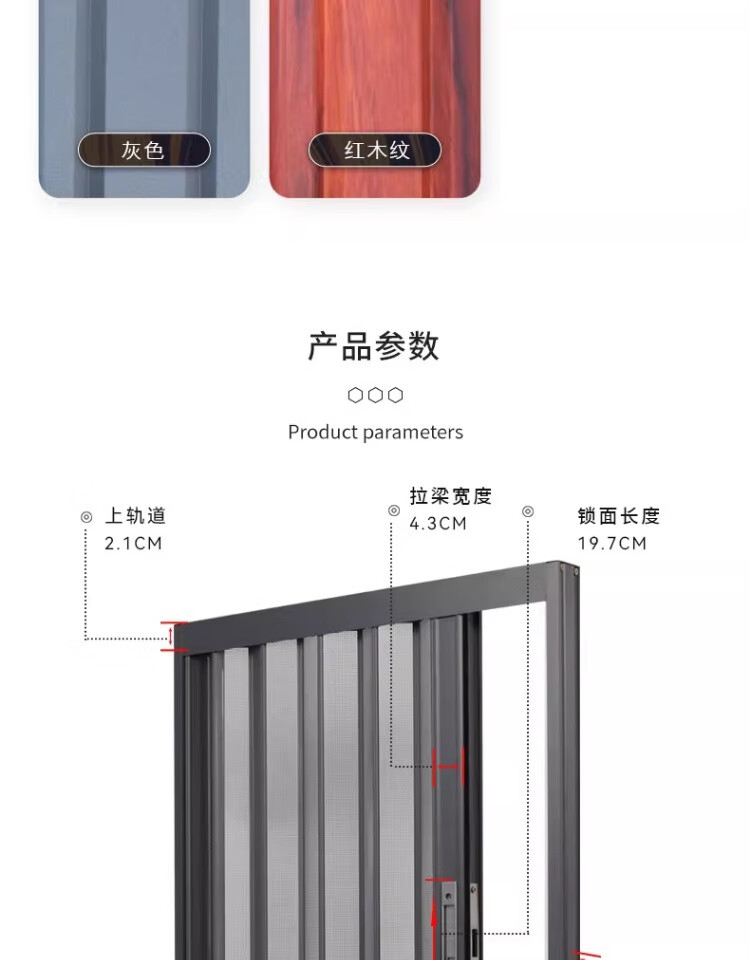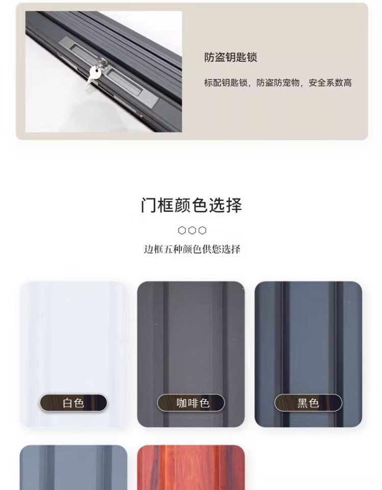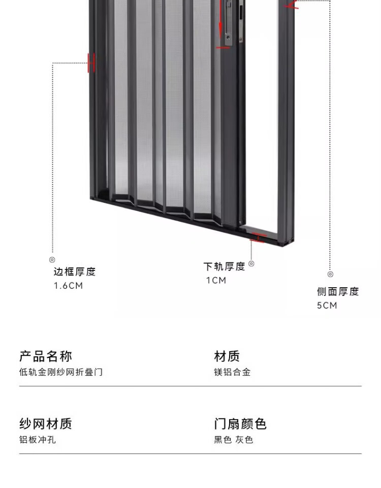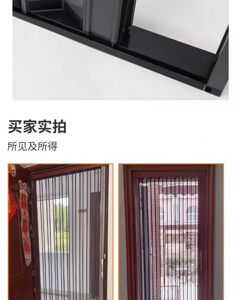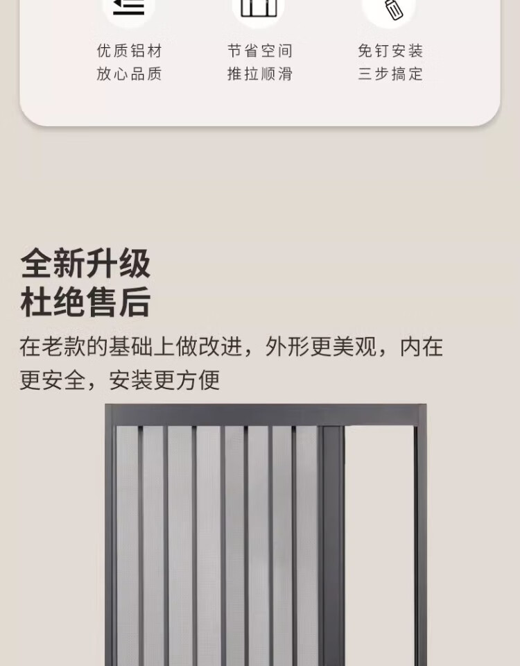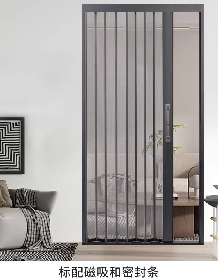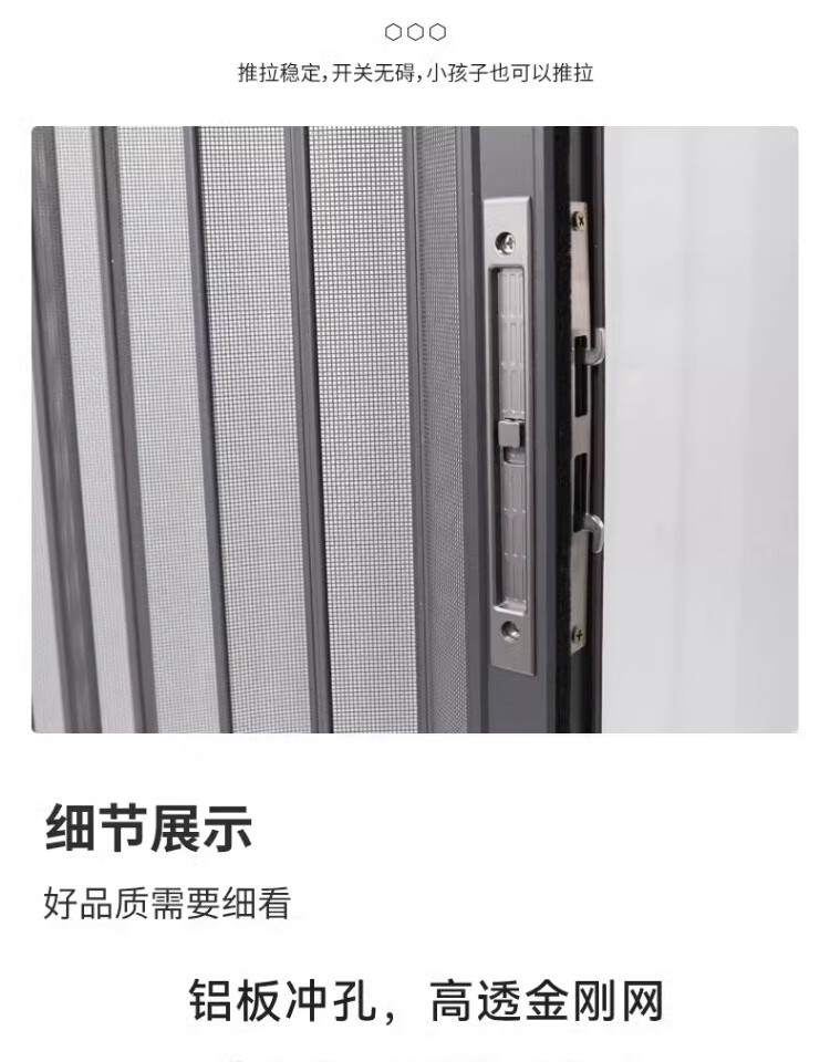 顿阁金刚网折叠纱门防蚊防猫狗老鼠带锁防盗隐形伸缩推拉式铝合金纱窗 灰色