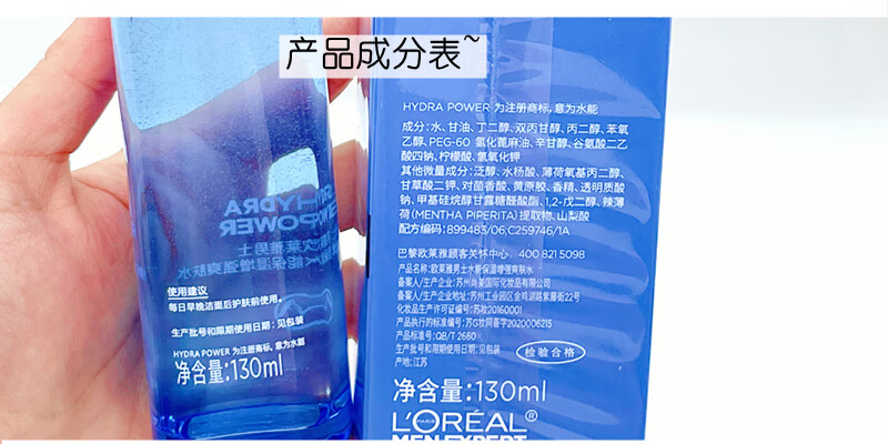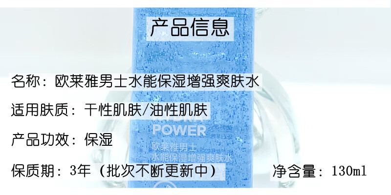欧莱雅男士水能保湿增强爽肤水130ml须后水清爽补水春夏季节护肤 (男士水能爽肤水130ml*2瓶)