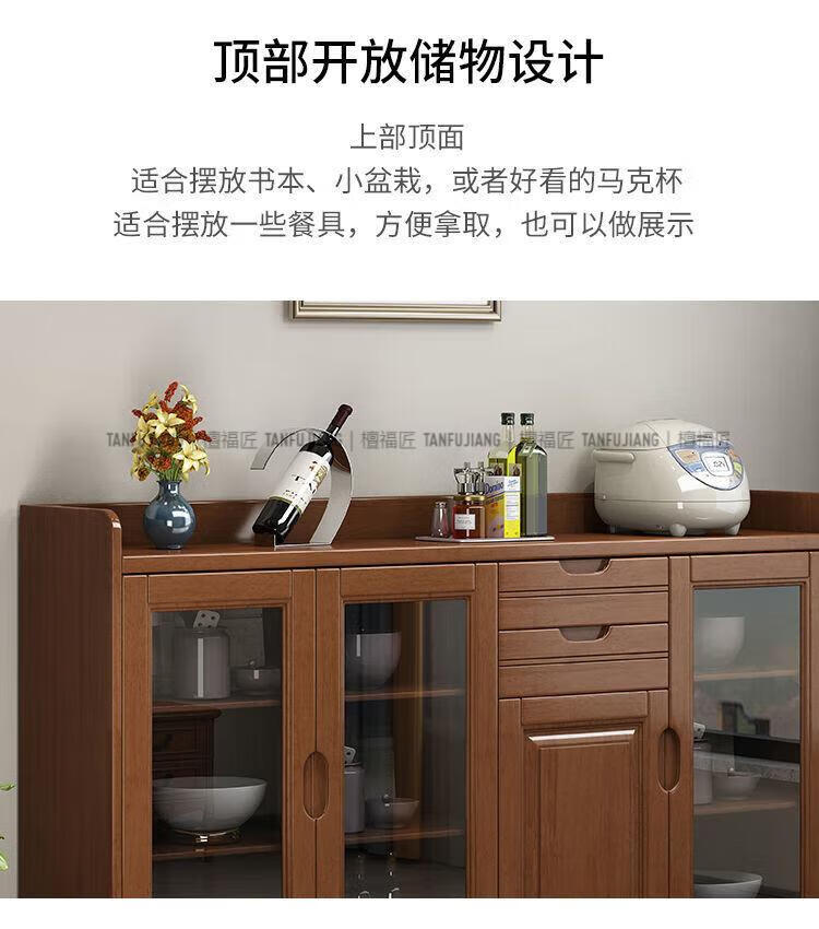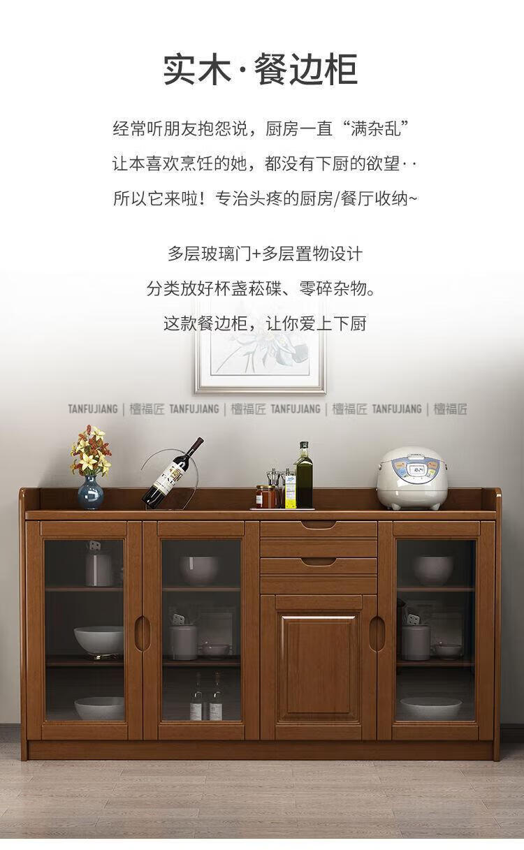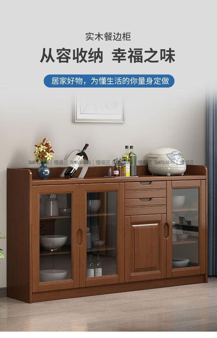 梵盛林2026新款实木餐边柜矮柜餐厅边柜酒柜靠墙现代简约客厅茶水柜碗柜 1.6米海棠色 包入户安装