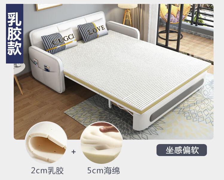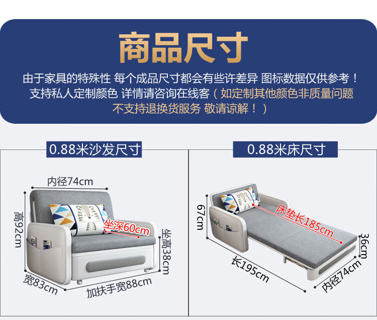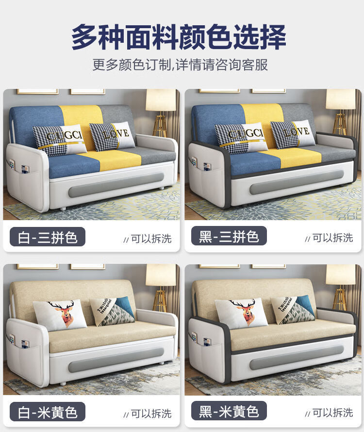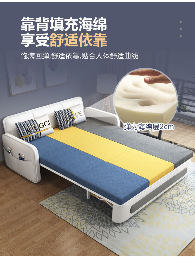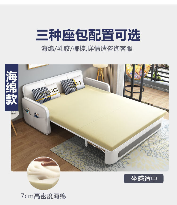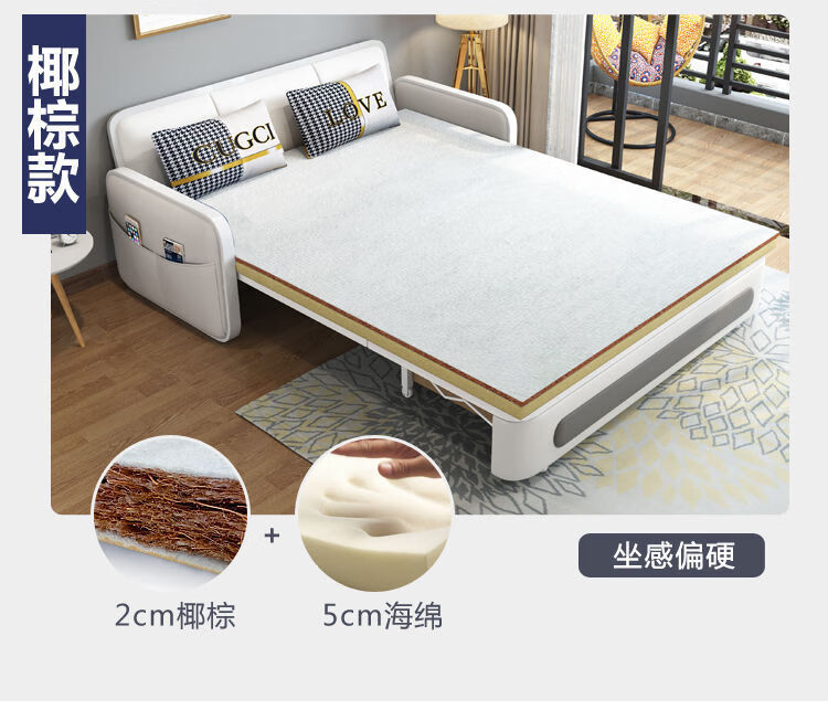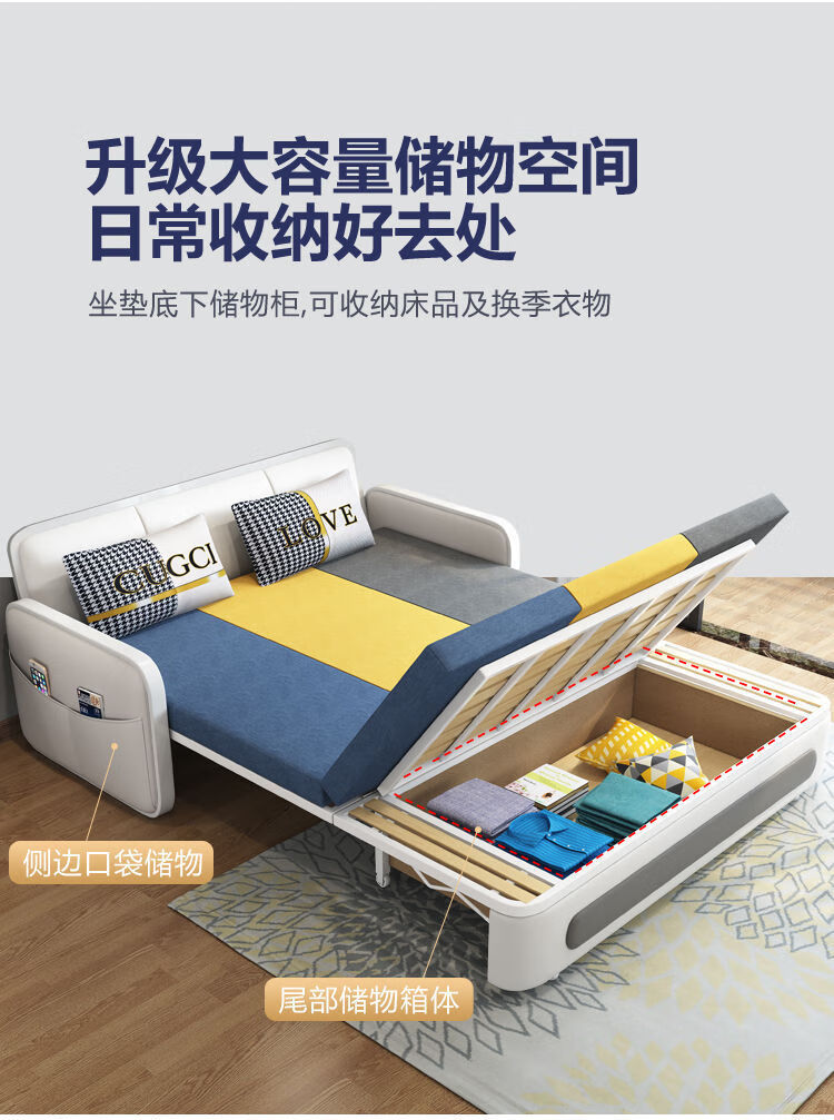 三世桃源沙发床可折叠坐卧两用多功能沙发二用小户型单人客厅沙发床可拆洗 白#米黄色 外宽0.88m护脊椰棕垫+储物