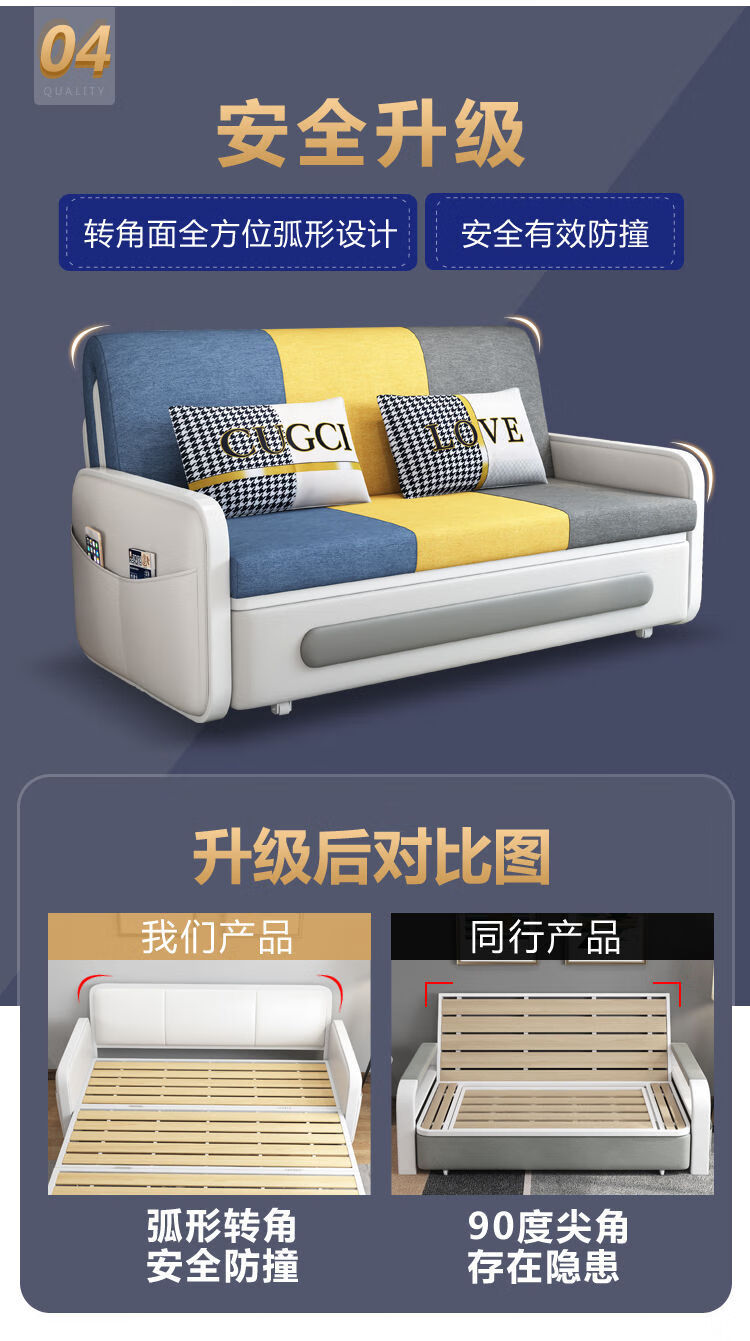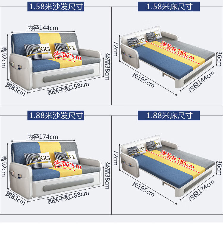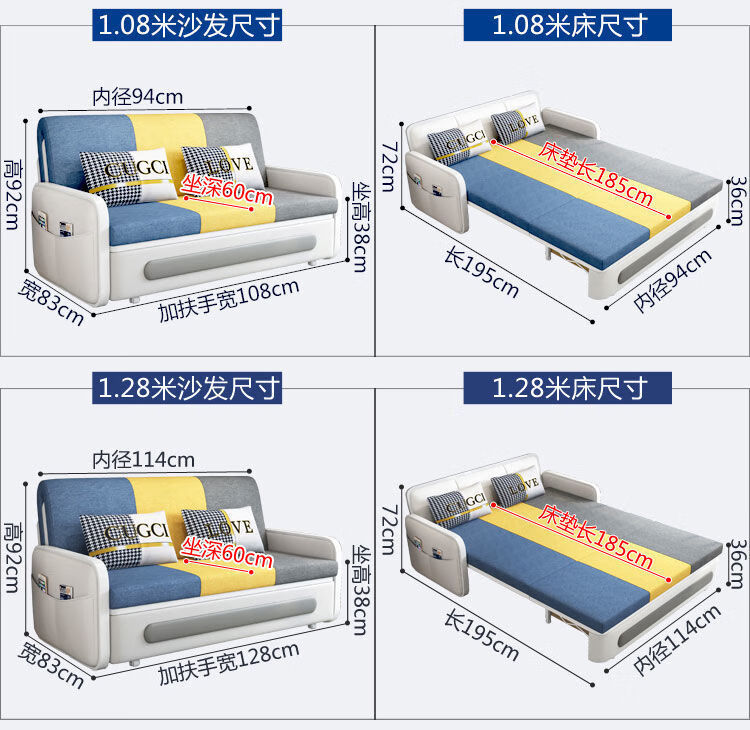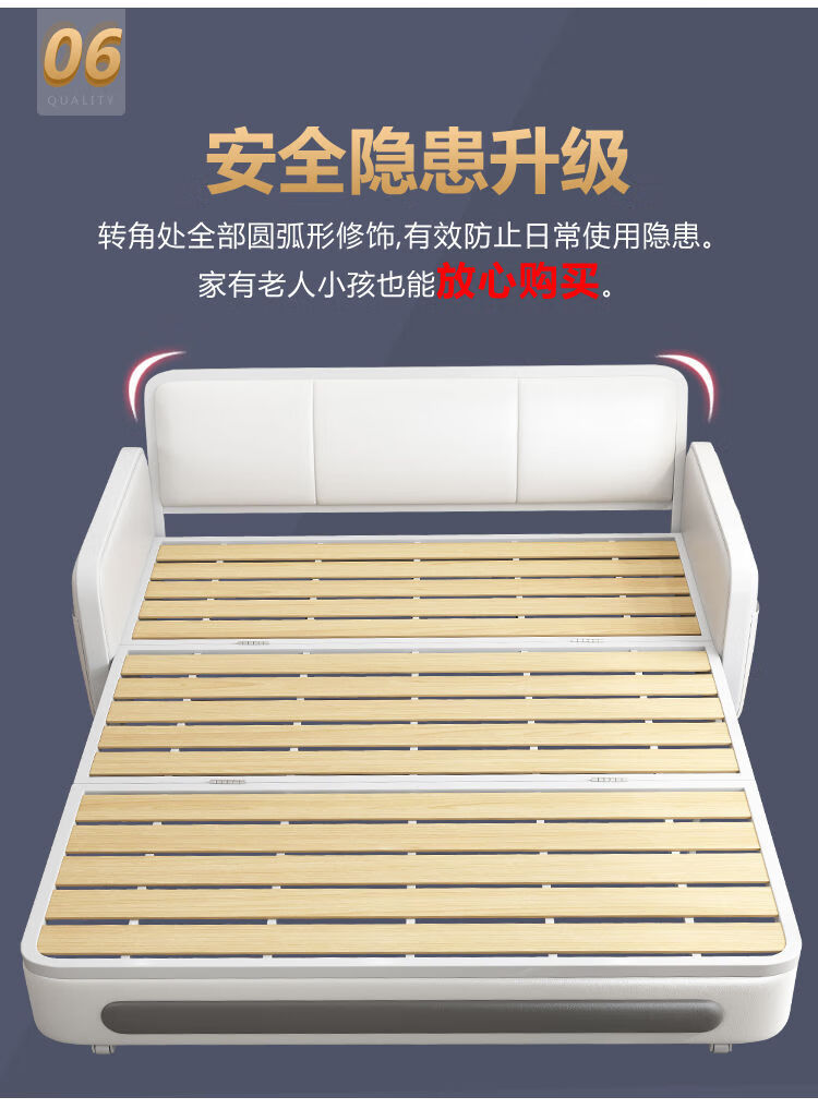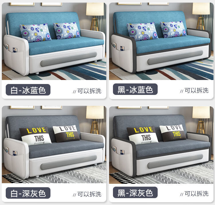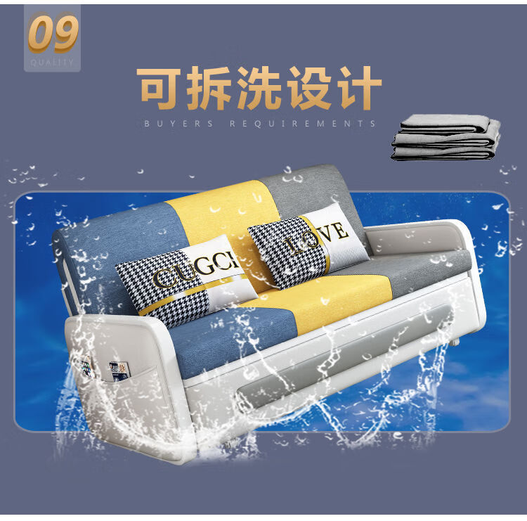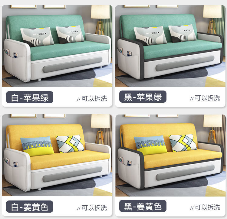 三世桃源沙发床可折叠坐卧两用多功能沙发二用小户型单人客厅沙发床可拆洗 白#米黄色 外宽0.88m护脊椰棕垫+储物