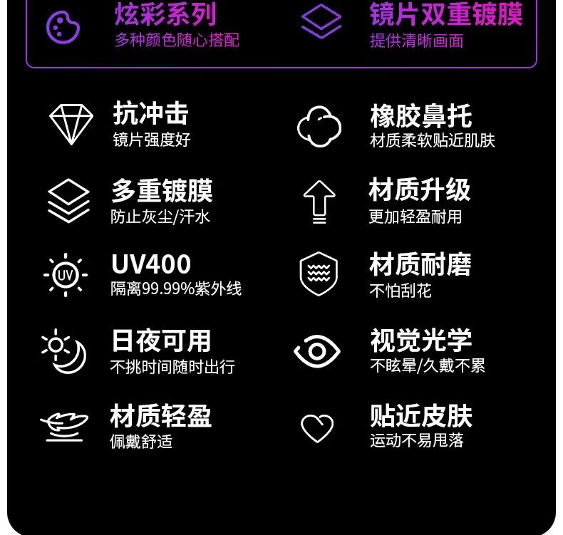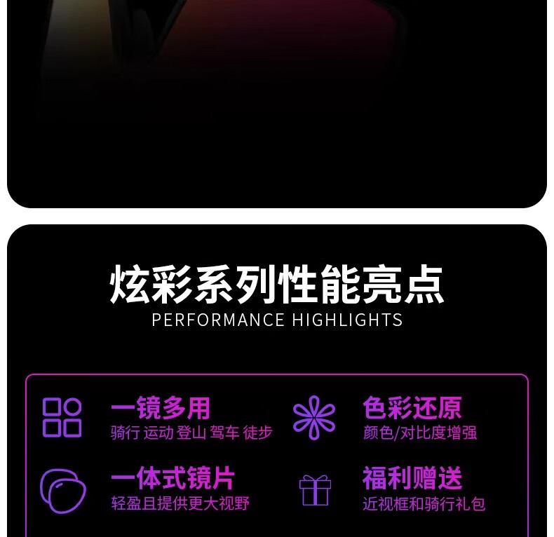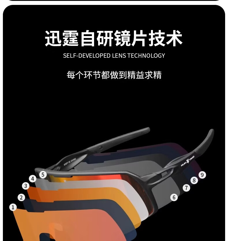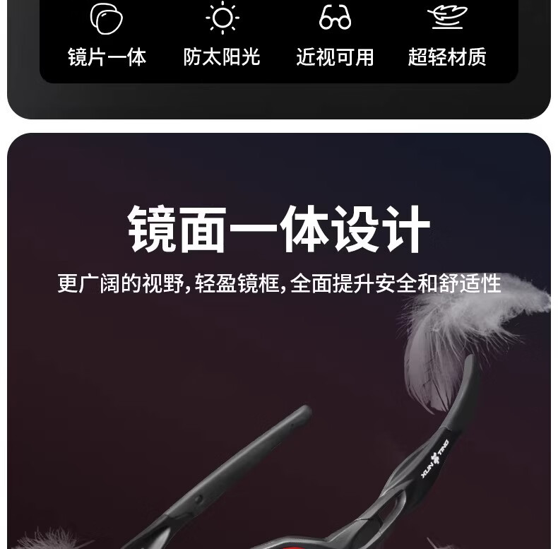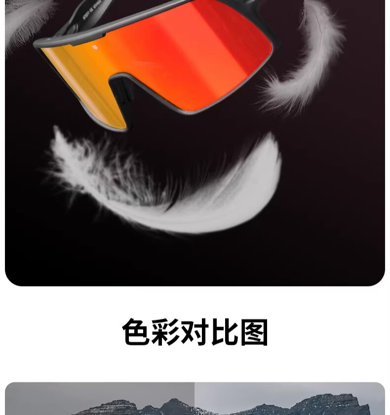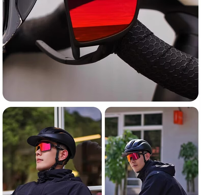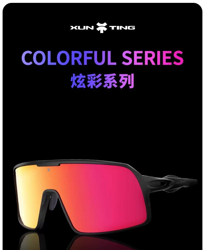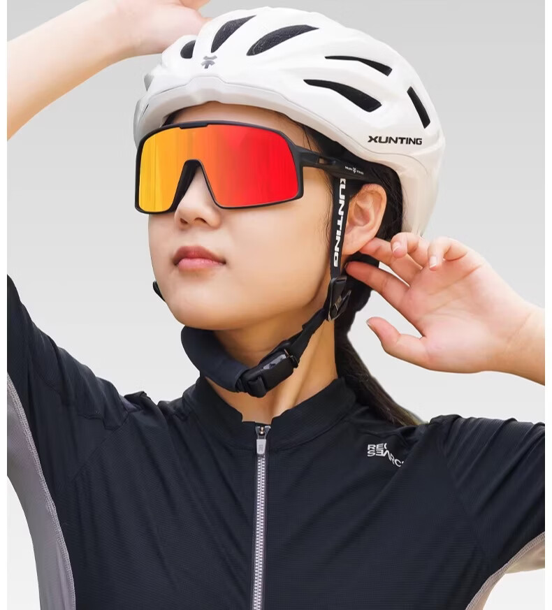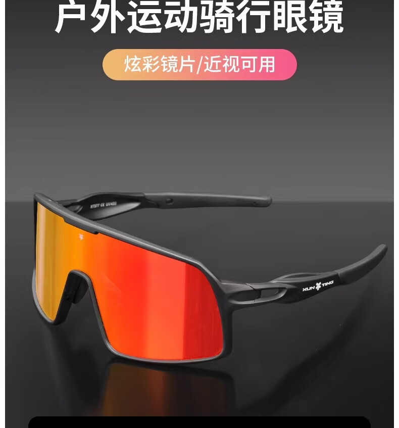 迅霆骑行眼镜炫彩近视防强光自行车户外运动专业公路车护目镜 经典方框【晚霞红】炫彩镜面
