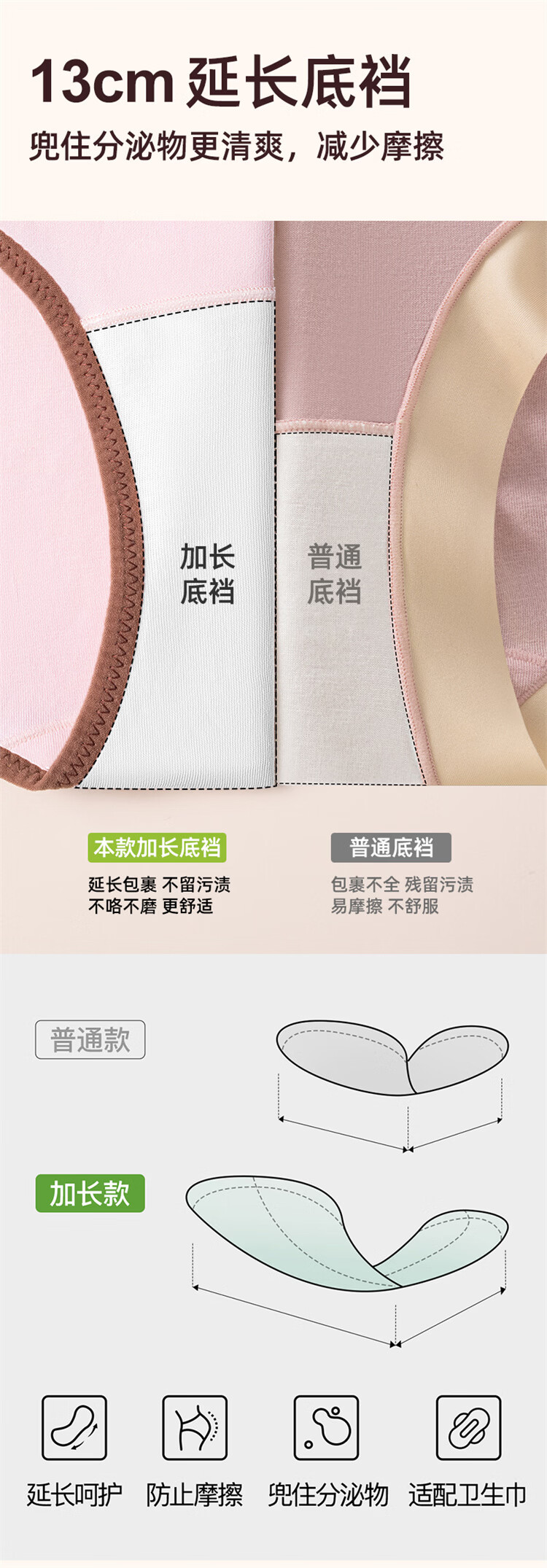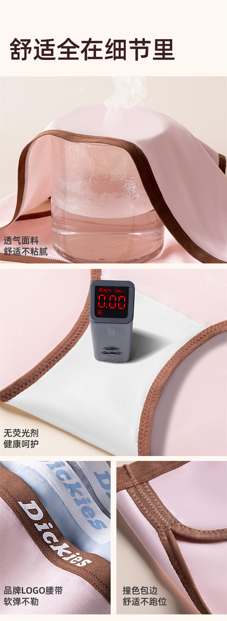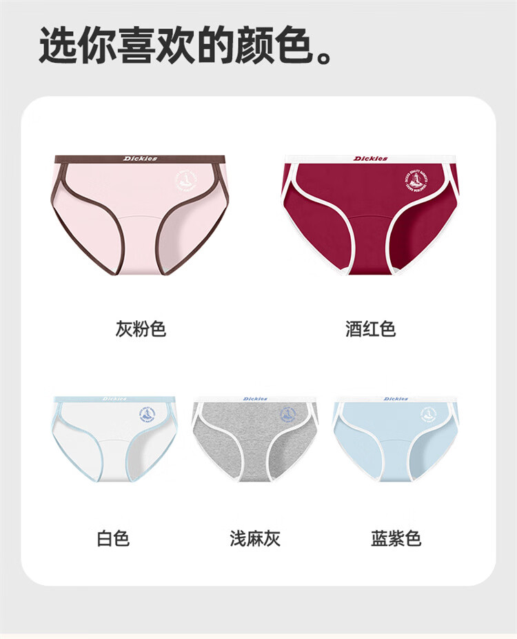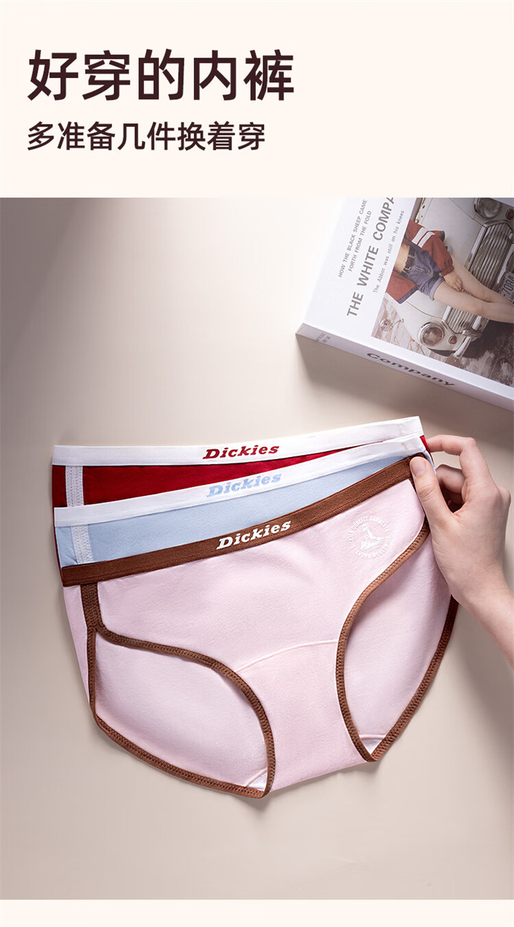 Dickies女士内裤三角裤纯棉正品抗菌中腰轻奢高级性感红色大码无痕加长裆 白色+灰粉色+蓝紫色 3条 XL 适合125-140斤