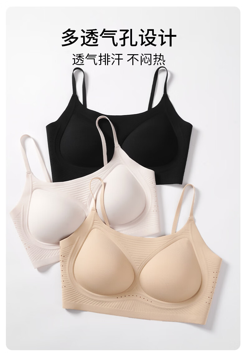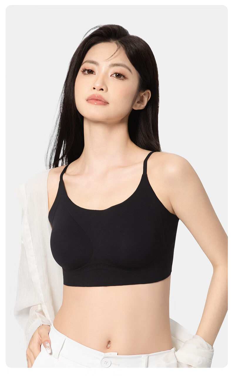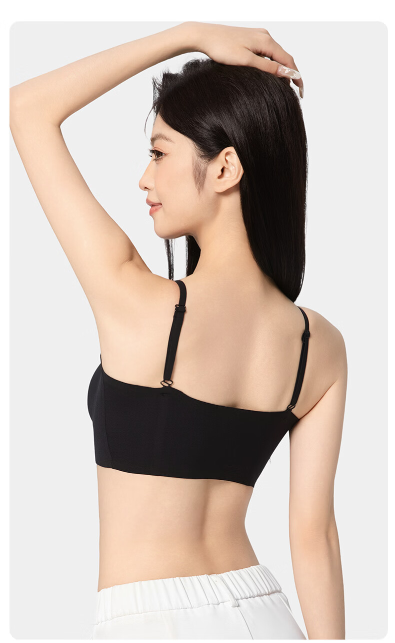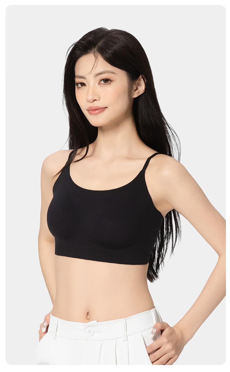 氧心(YANGXIN)2件装薄款无痕内衣少女夏季无钢圈聚拢透气吊带运动美背文胸 优雅黑+裸肤色 M (80-100斤)