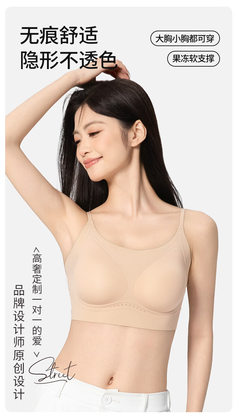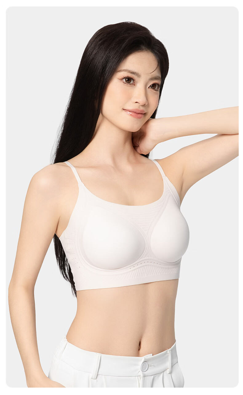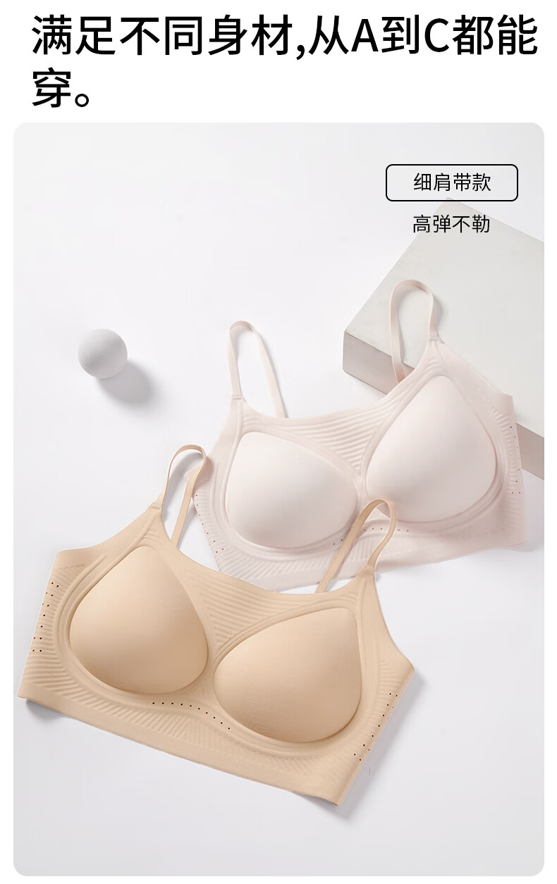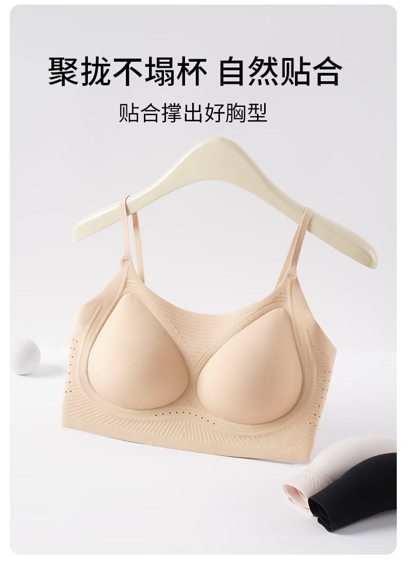 氧心(YANGXIN)2件装薄款无痕内衣少女夏季无钢圈聚拢透气吊带运动美背文胸 优雅黑+裸肤色 M (80-100斤)