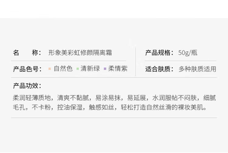 形象美彩虹修颜隔离霜保湿遮瑕妆前乳提亮肤色自然裸妆BB霜 柔情紫