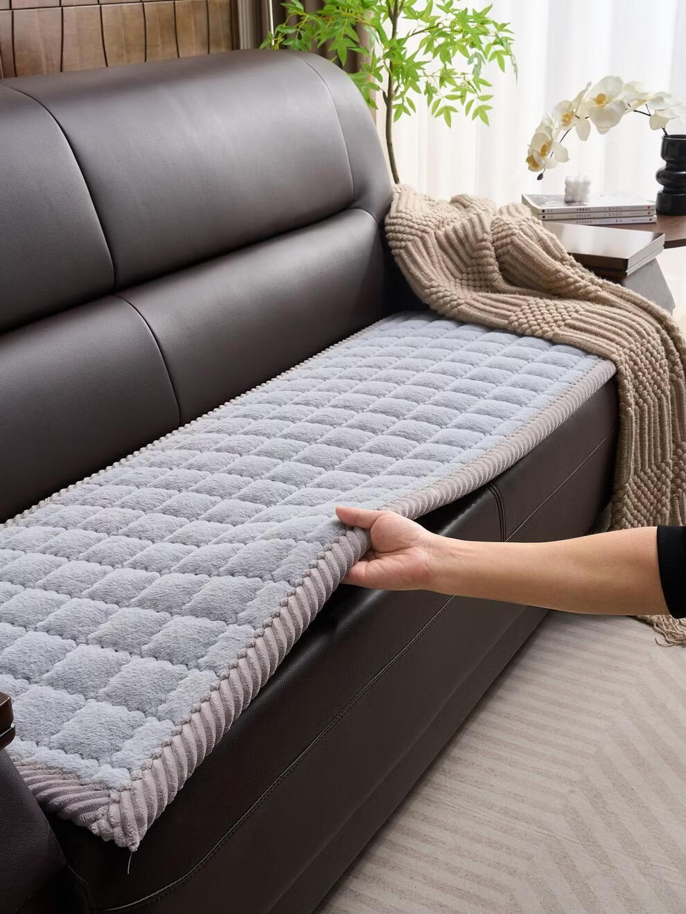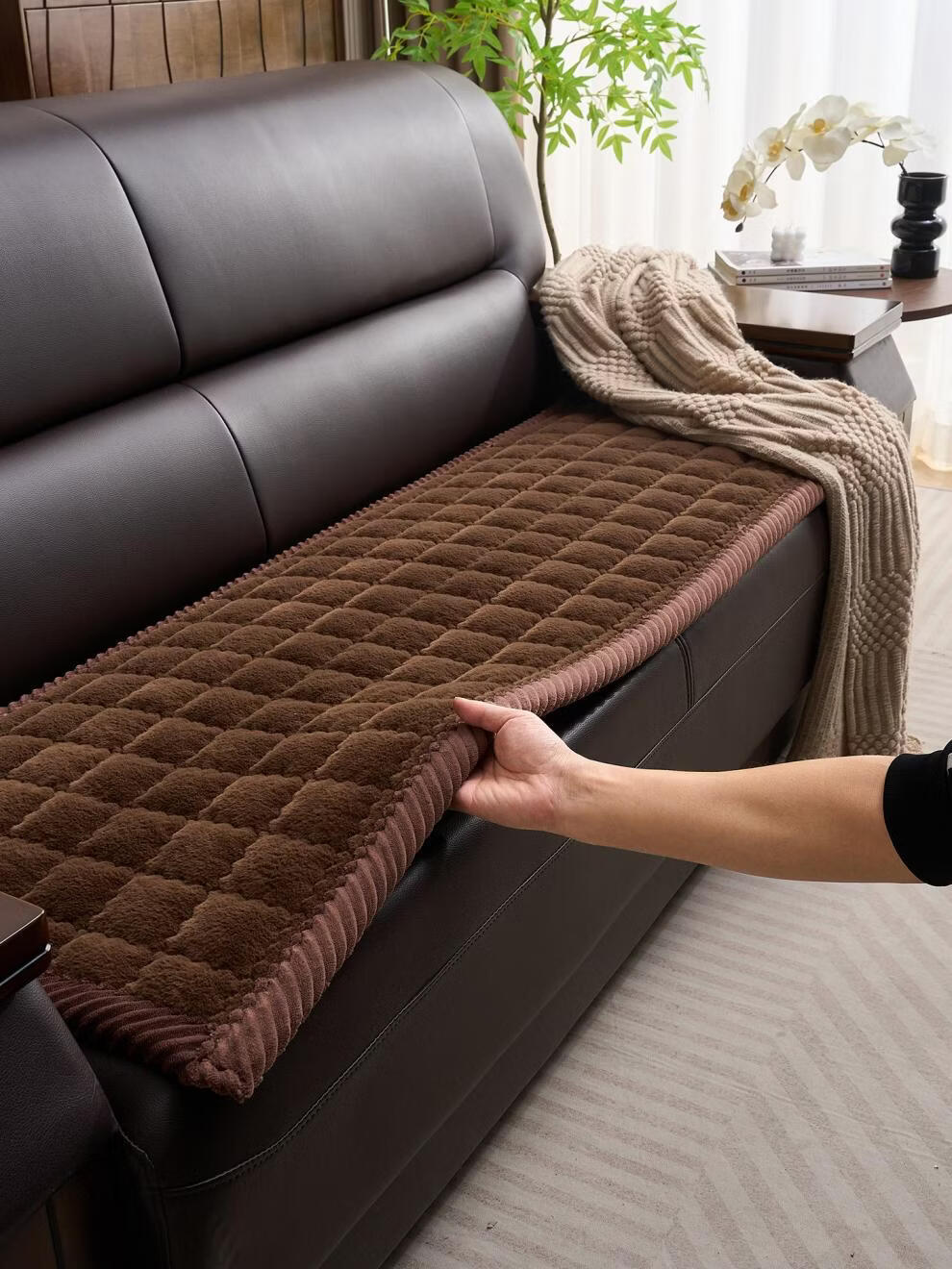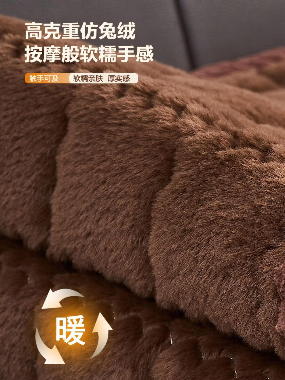 正圣加厚毛绒三人位沙发垫子沙发巾轻奢2025年流行皮沙发专用垫 兔毛-方格 咖啡【加厚款】 1cm*1cm 定制联系客服改价(不可退换)