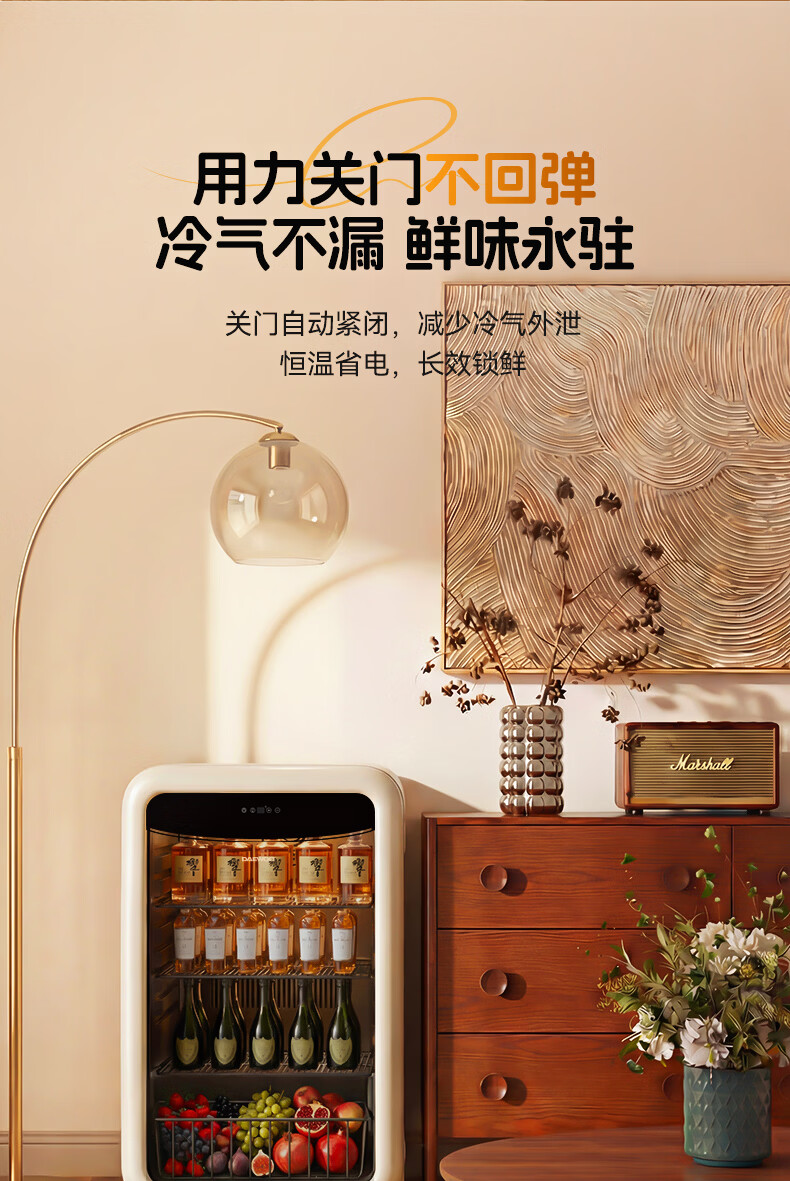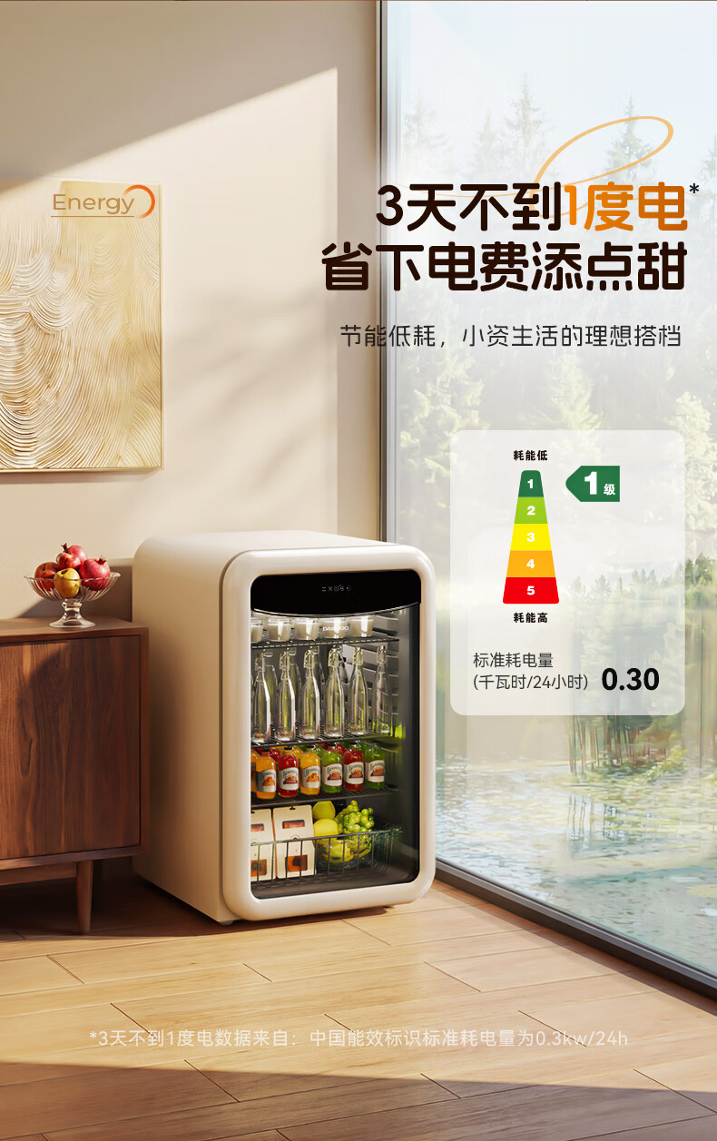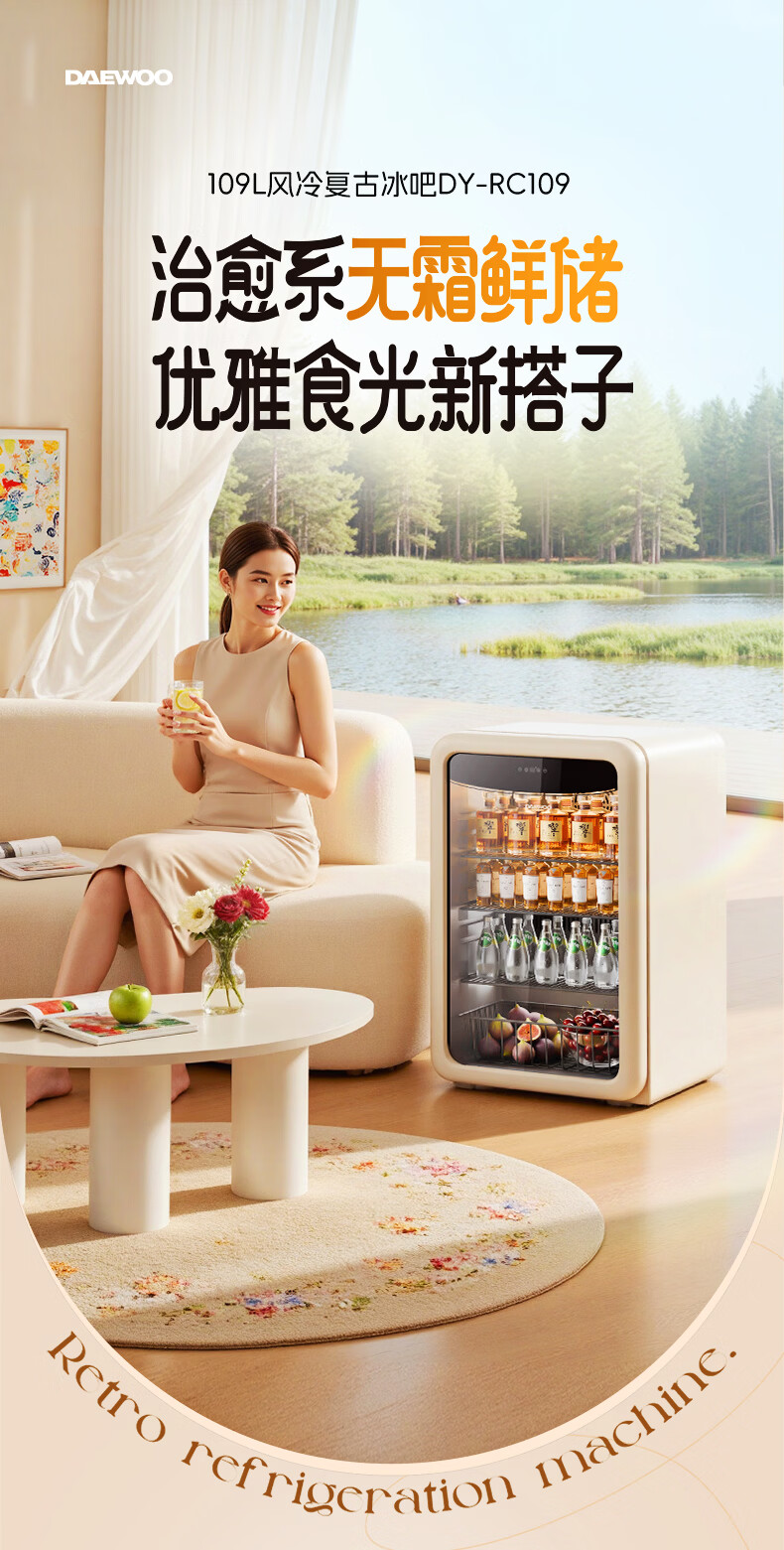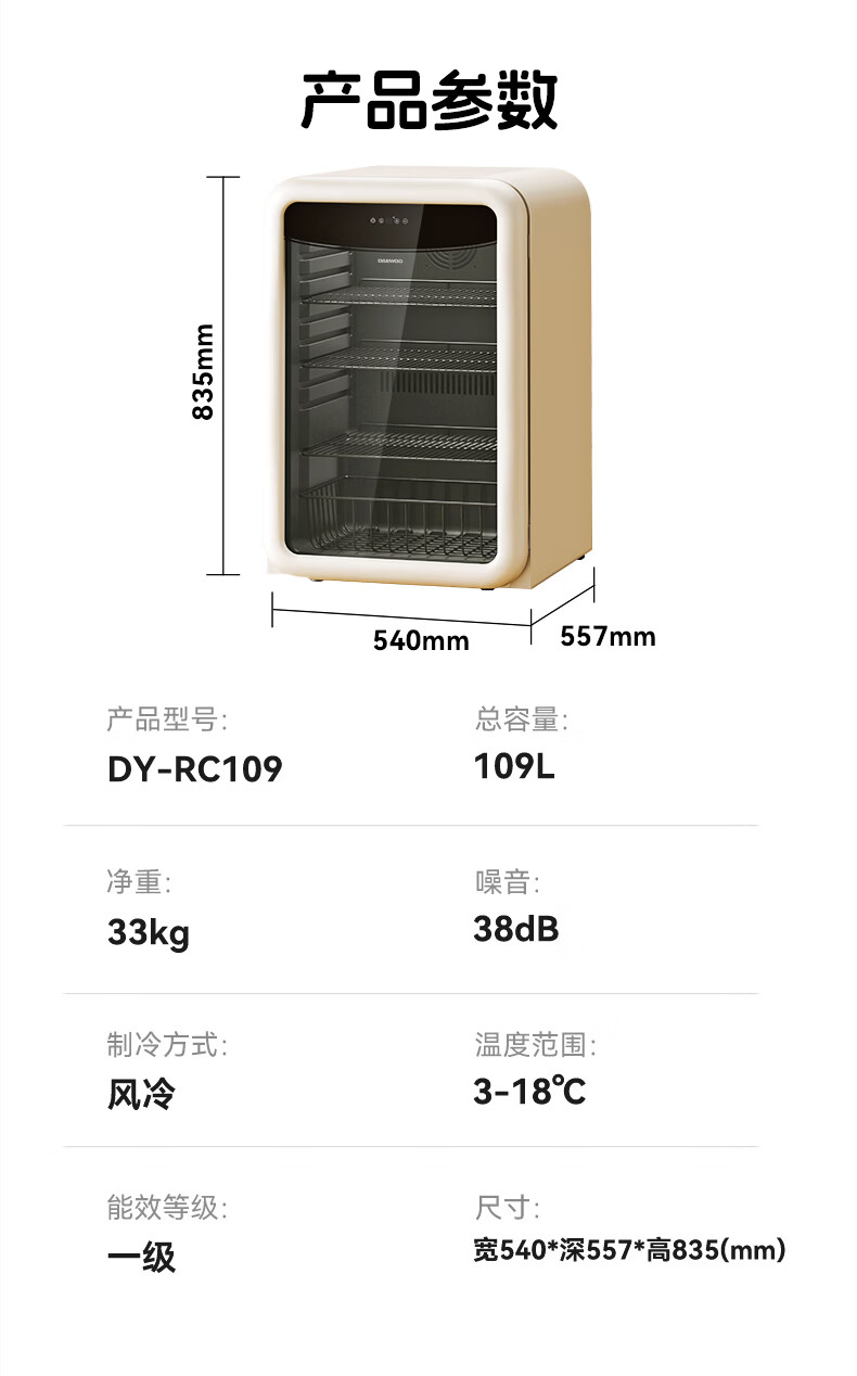 大宇(DAEWOO)小型冰箱迷你冰吧小户型家用复古电冰箱办公室茶叶冷藏保鲜柜酒柜109L大容量恒温恒湿储藏柜 风冷无霜|一级能效|109L-奶油白
