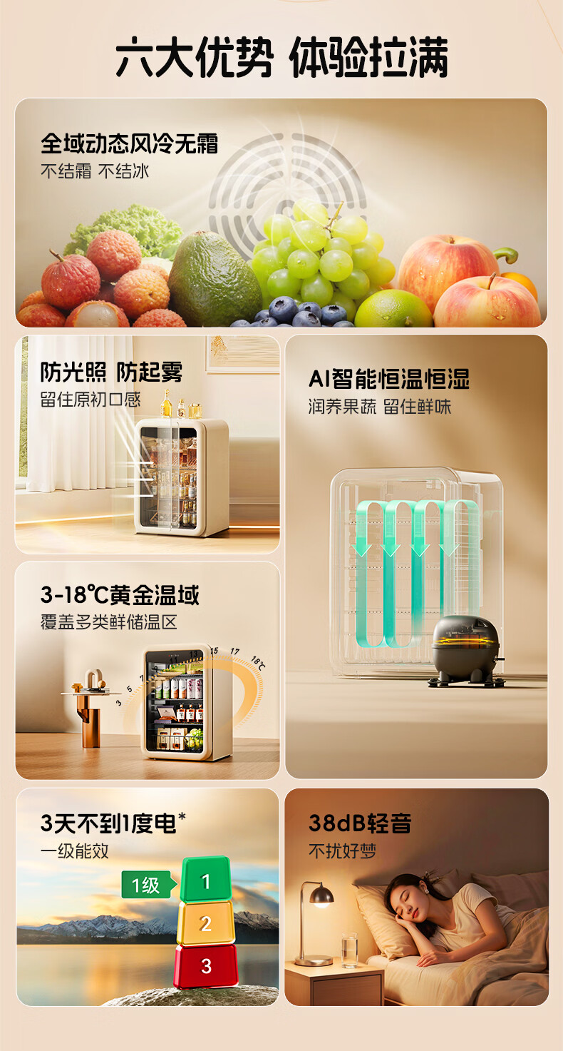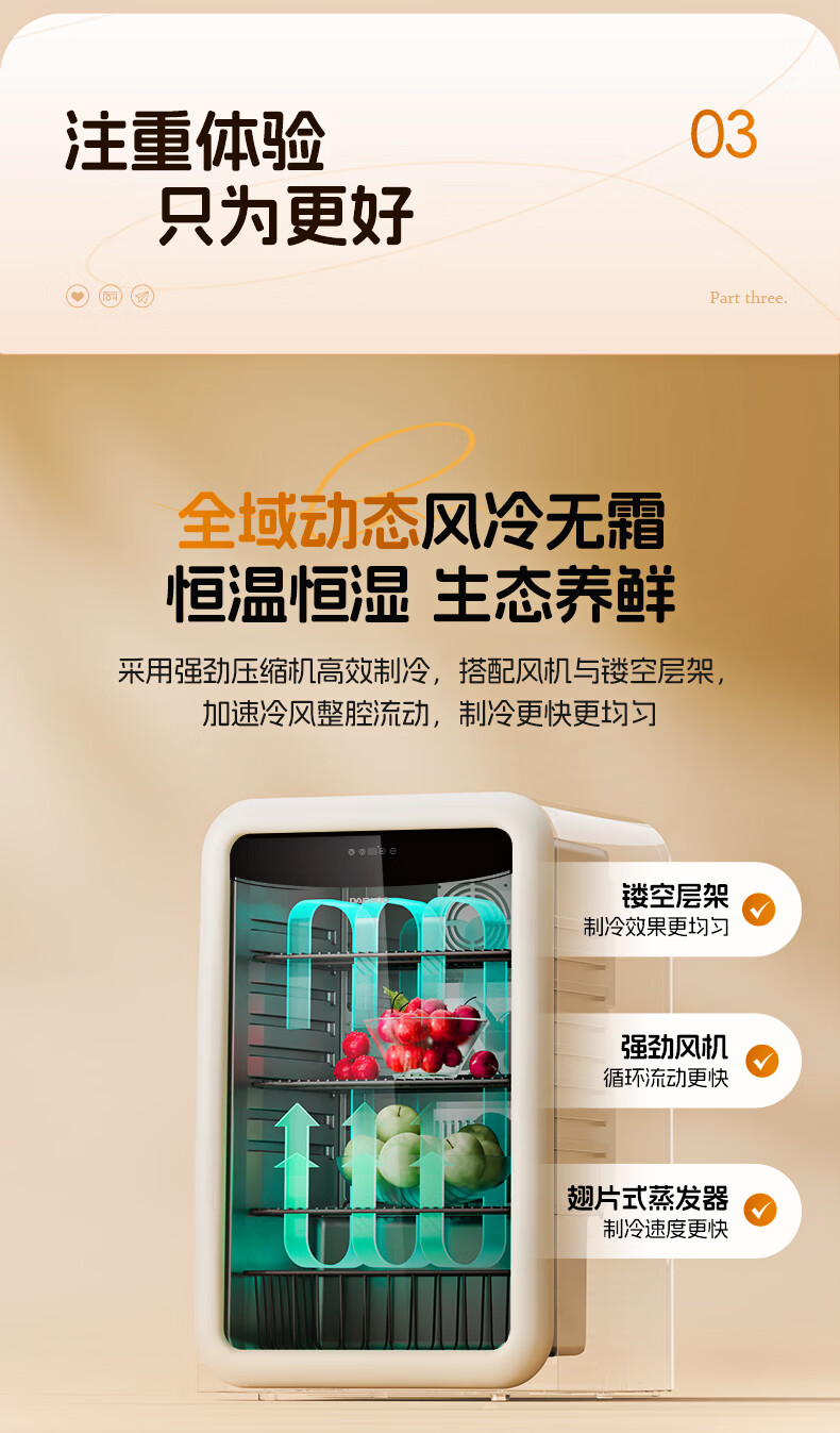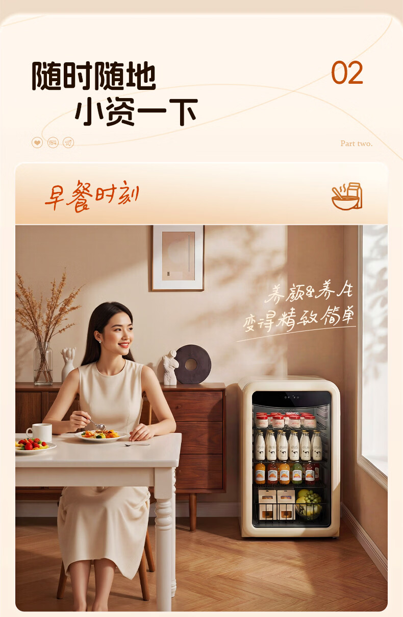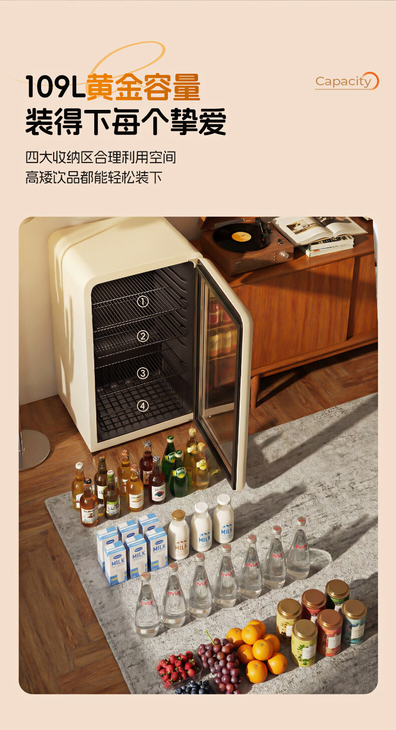 大宇(DAEWOO)小型冰箱迷你冰吧小户型家用复古电冰箱办公室茶叶冷藏保鲜柜酒柜109L大容量恒温恒湿储藏柜 风冷无霜|一级能效|109L-奶油白