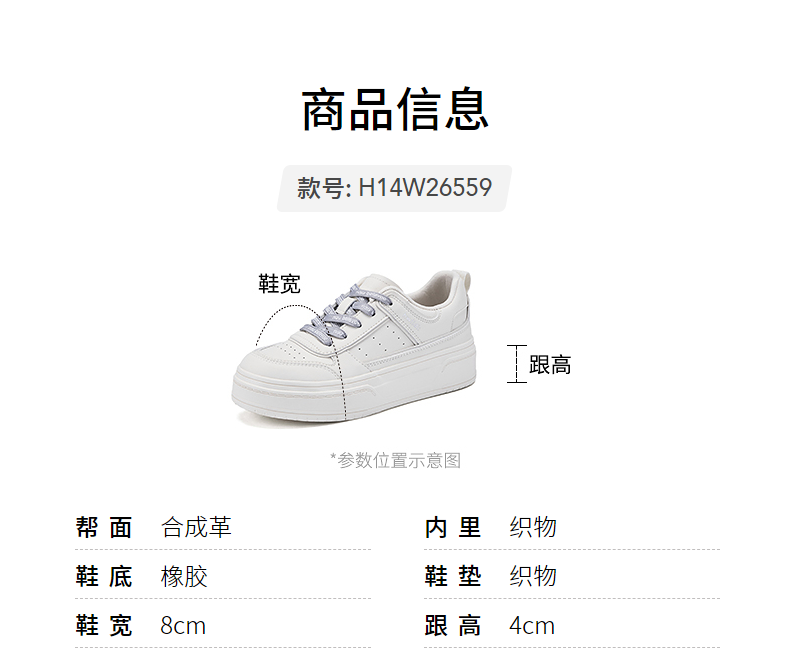 热风(Hotwind)厚底小白鞋女款2026年春季新款百搭增高休闲鞋简约板鞋女鞋子