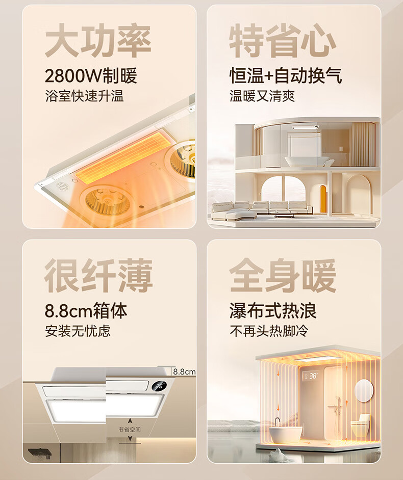 欧普照明(OPPLE)风暖浴霸基础暖系列即开即暖浴霸超薄多合一 F132-A