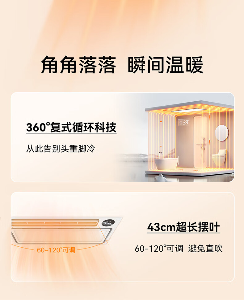 美的(Midea)风暖浴霸云帆系列暖风照明排气一体广角摆风速暖Y5