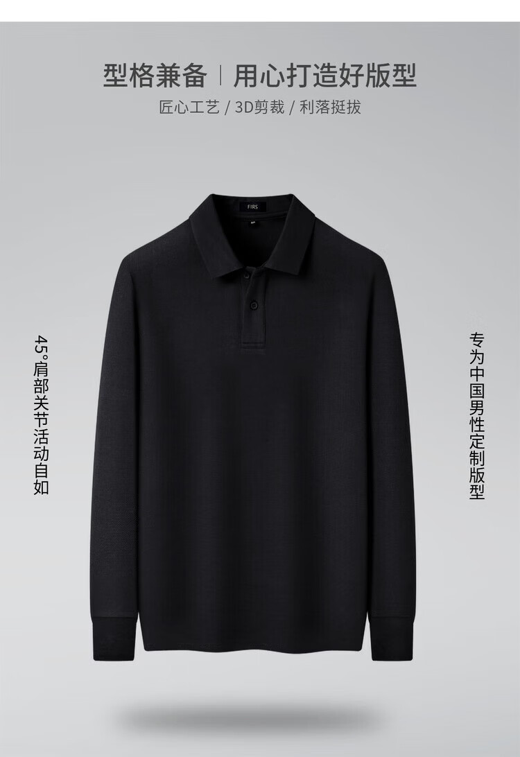 杉杉(FIRS)【10A抗菌】长袖T恤男秋冬宽松保暖通勤中青年爸爸装打底POLO衫 黑色 M 170/88A