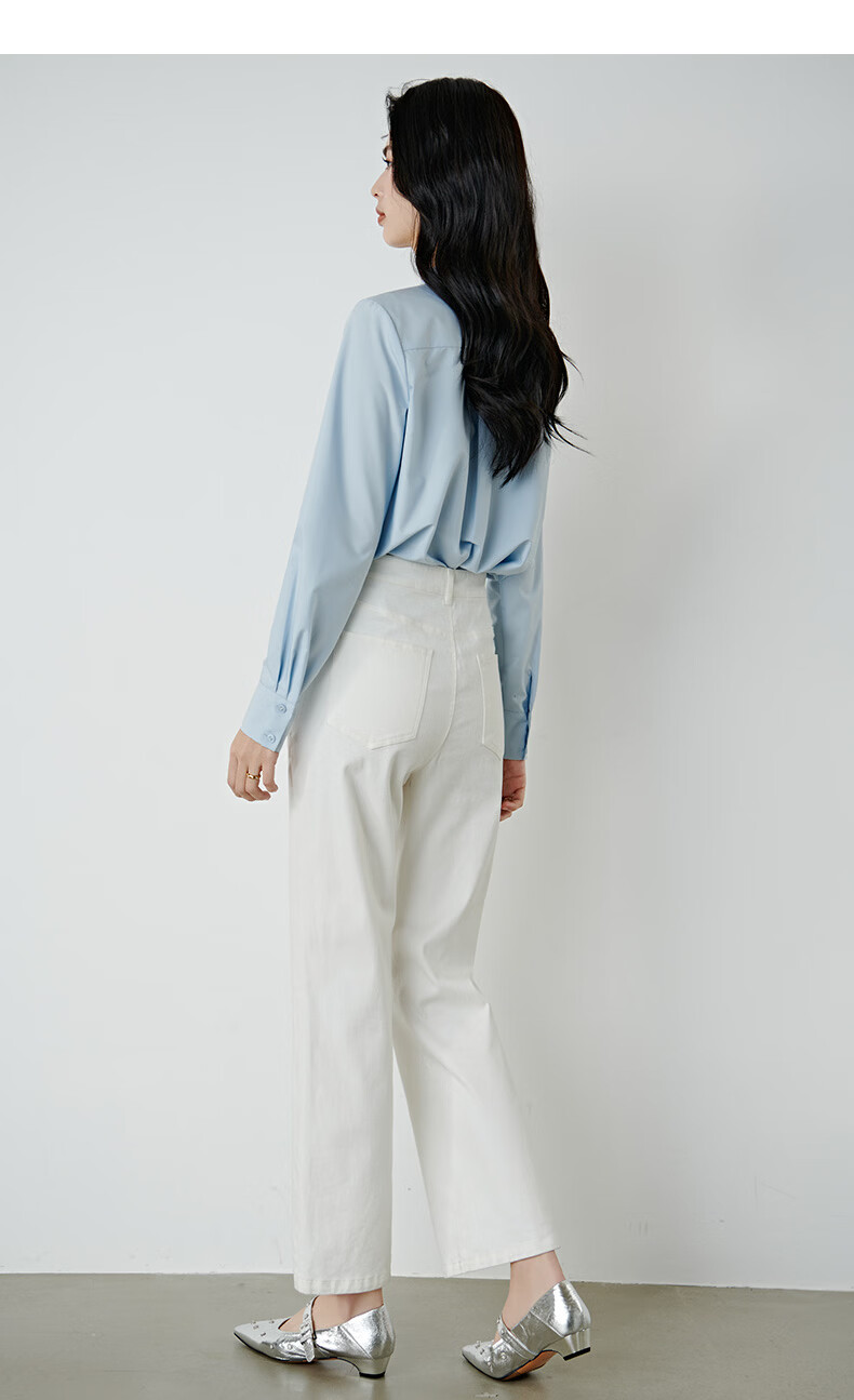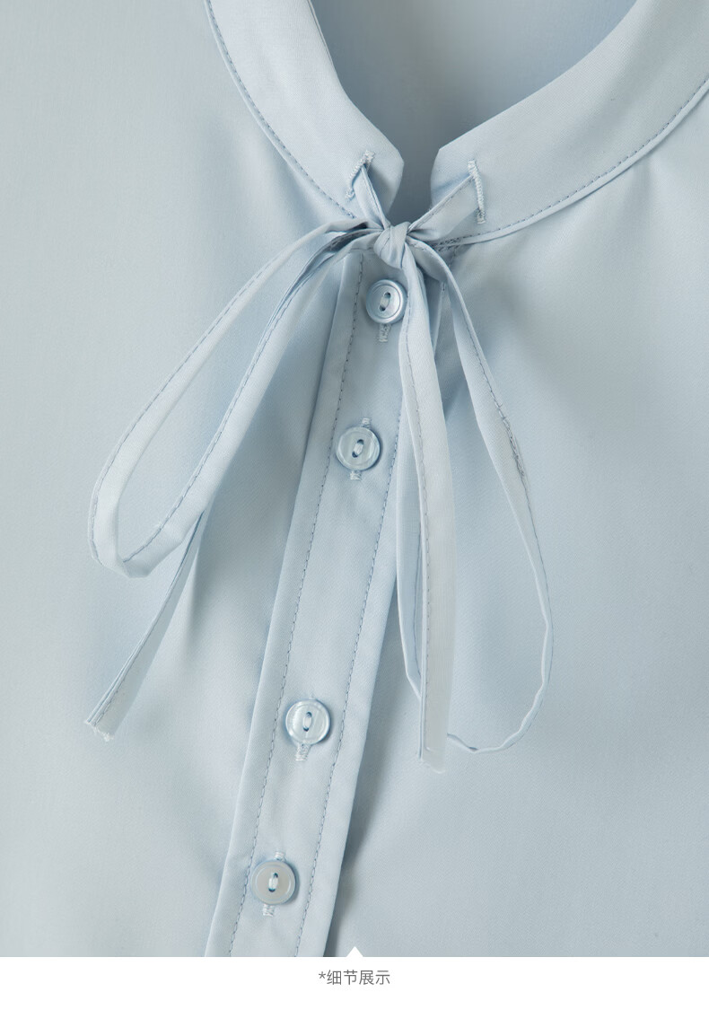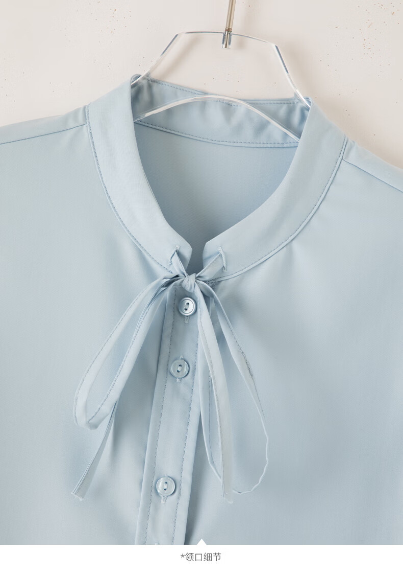 晚白2026年春款miu系气质可拆卸系带立领上衣挺括抗皱减龄通勤衬衫女 浅蓝色 XL