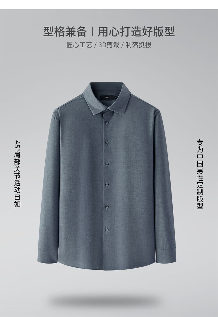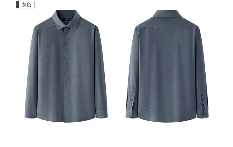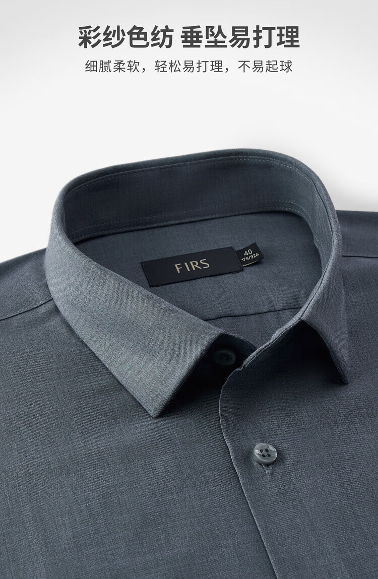 杉杉(FIRS)2025彩纱色纺垂坠易打理免烫通勤款商务休闲男士长袖衬衫四季可穿 灰色 39 170/88A(39)