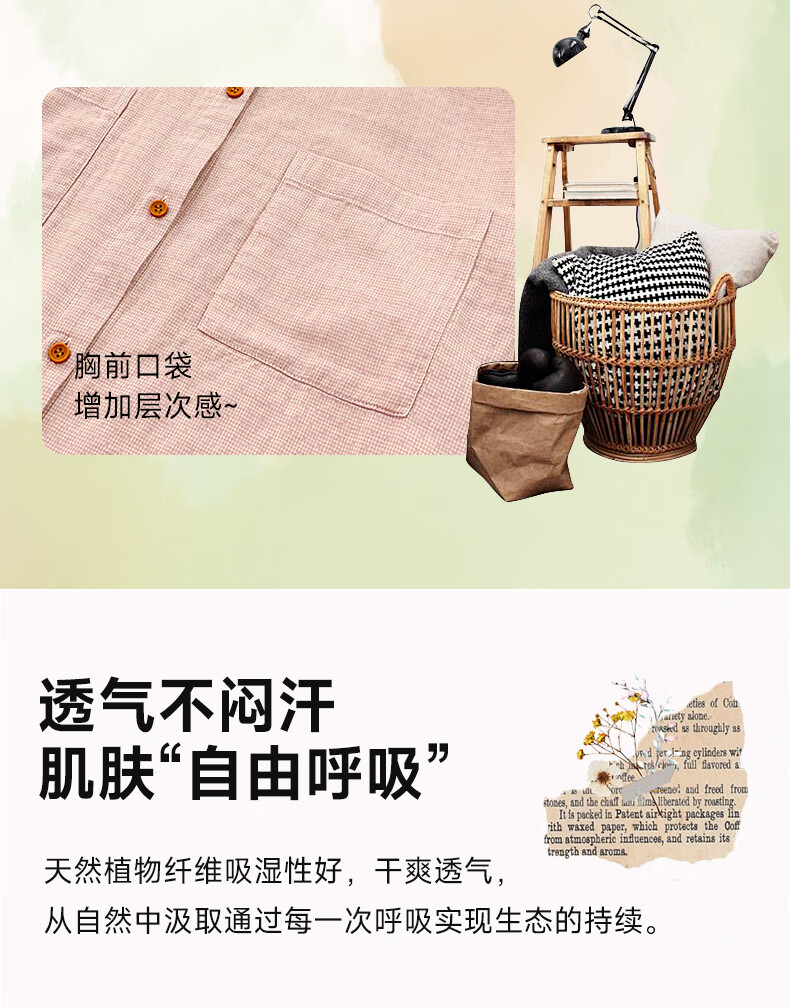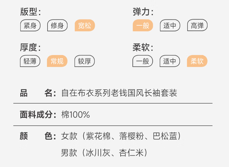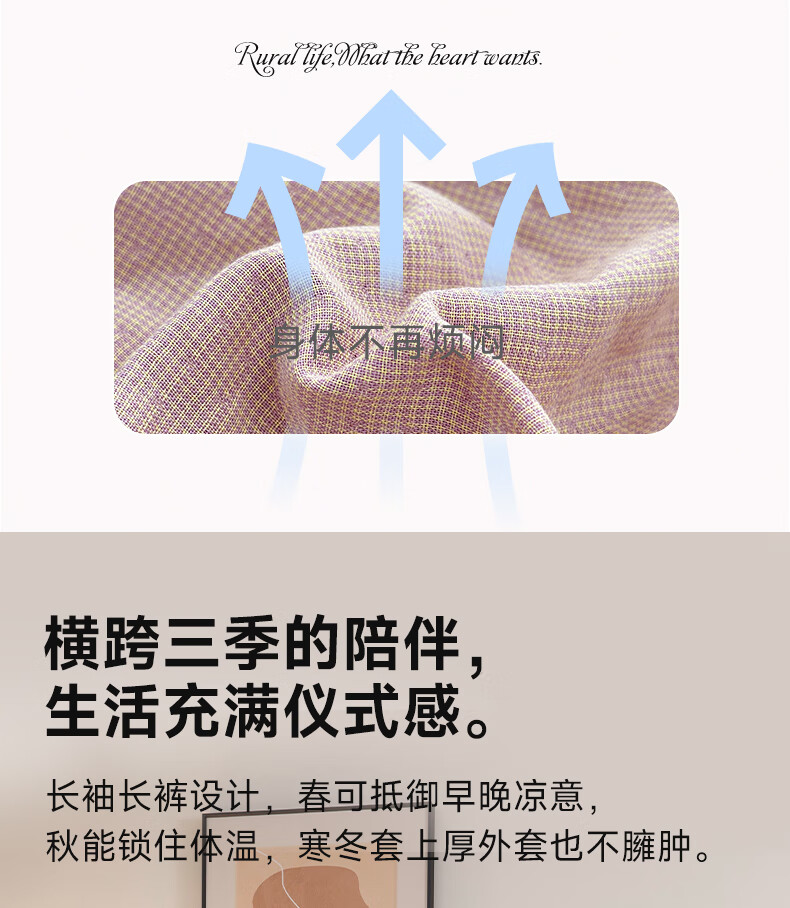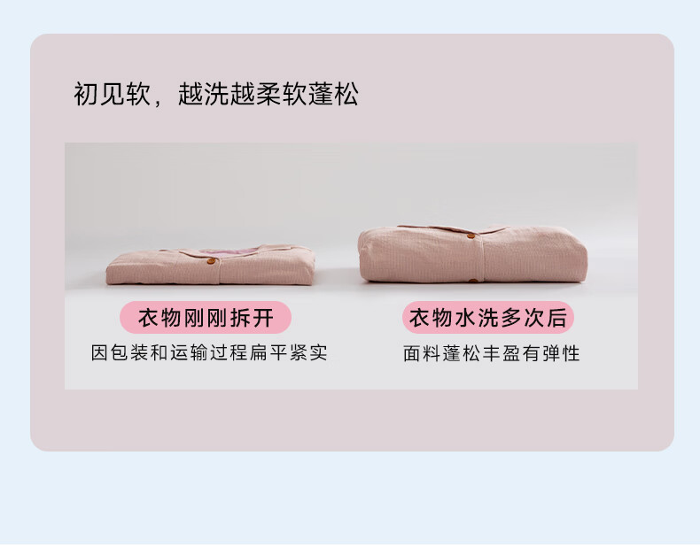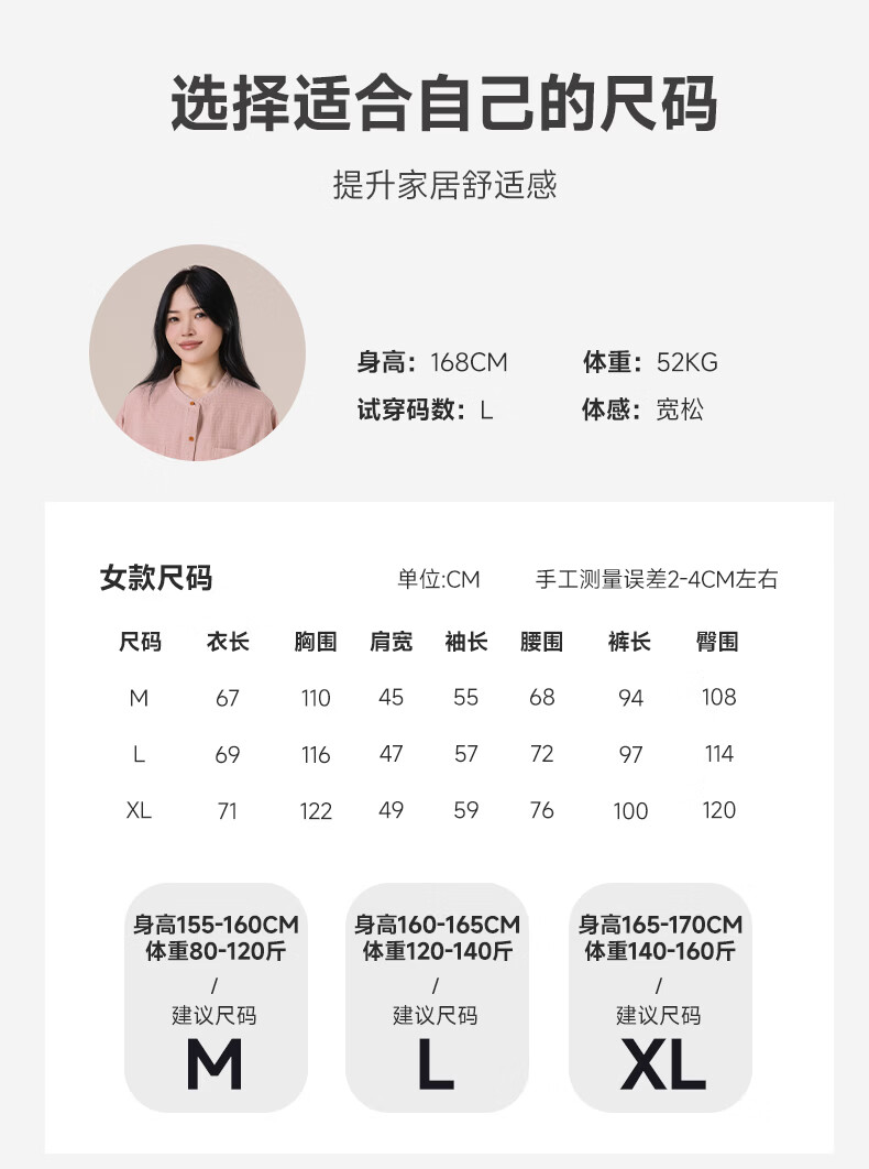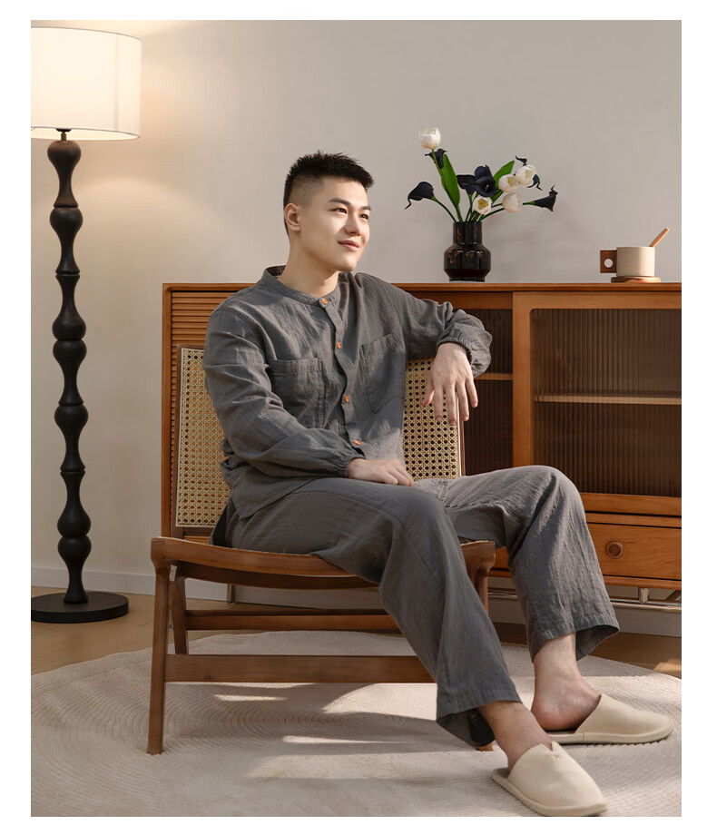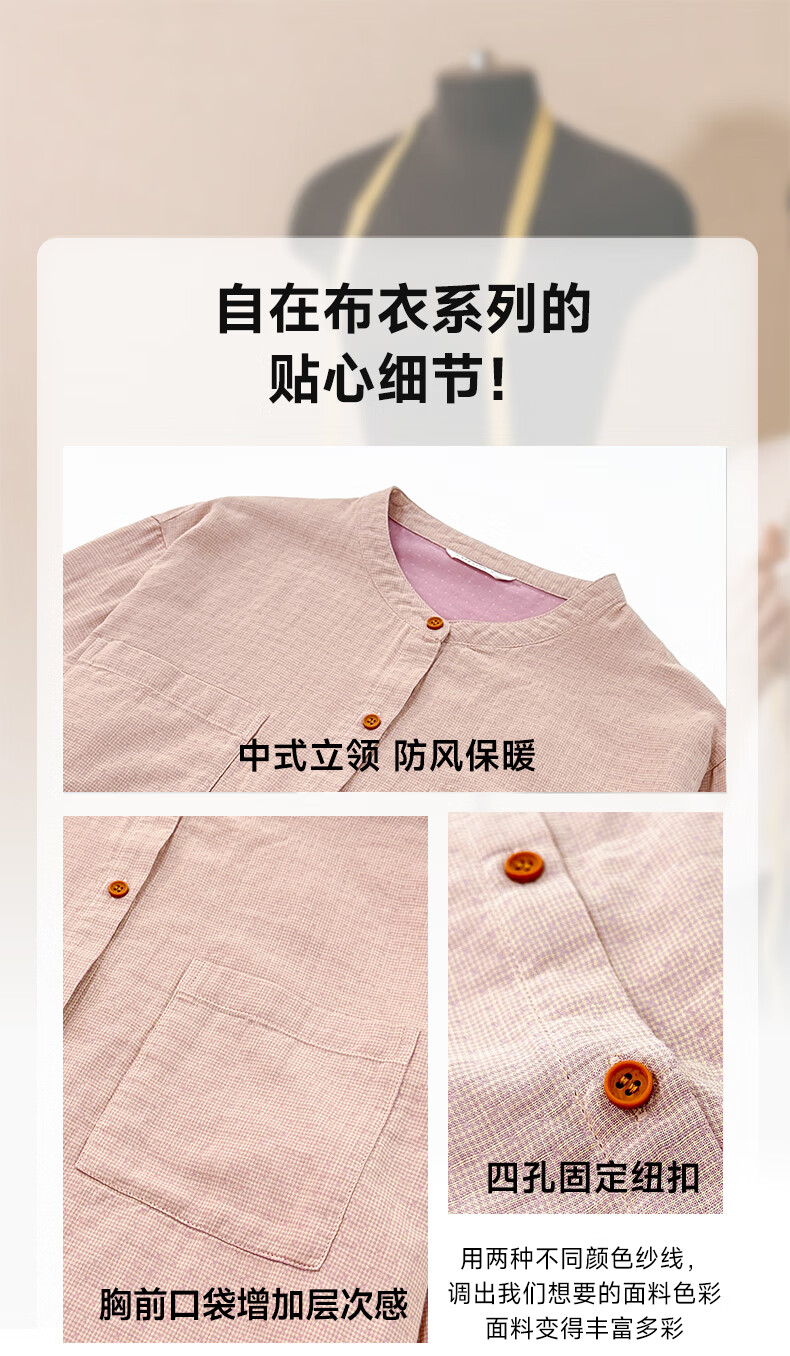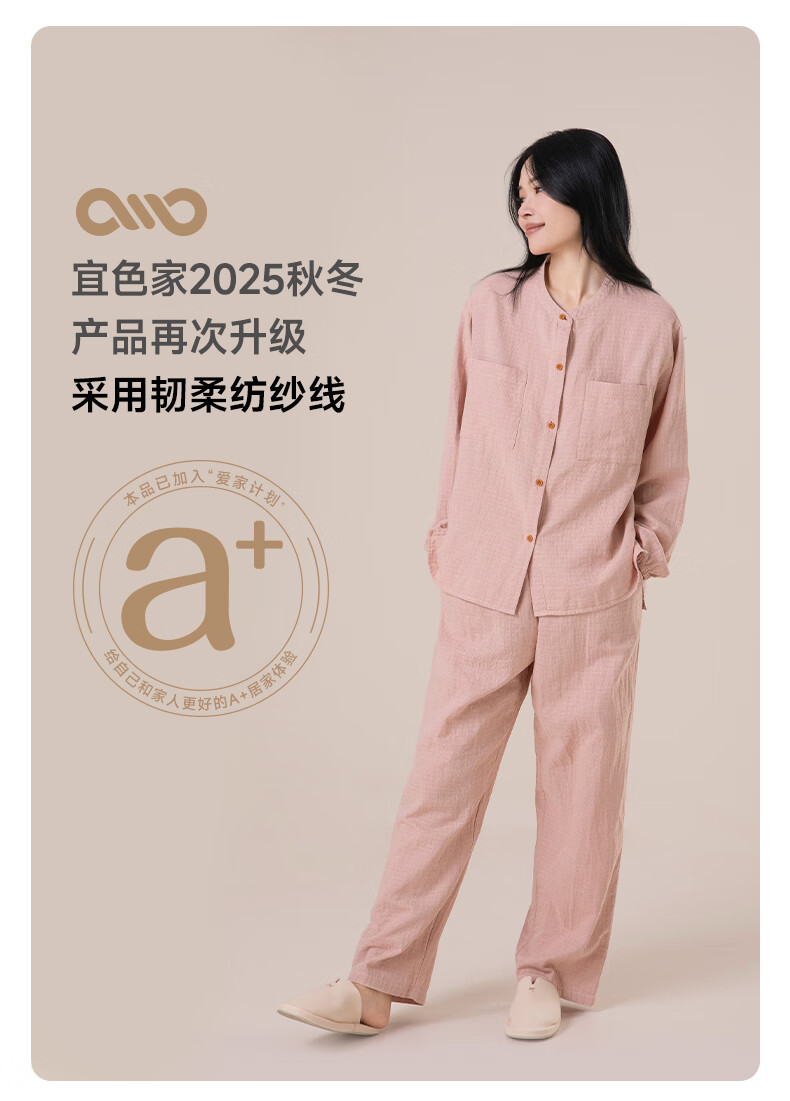 宜色家纯棉睡衣家居服双层纱织情侣家居服国风立领长袖男女士睡衣可外穿 布衣国风系列-落樱粉 女款套装 M 女80-120斤或男110-140斤