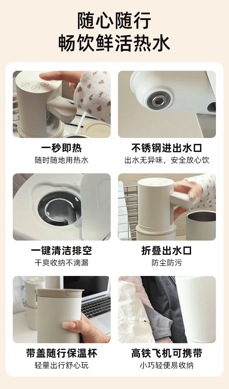 IMiMONE米萌便携即热饮水机桶装水下置式 宿舍差旅免安装折叠电烧水壶 小型保温杯泡奶台式饮水机家用速热