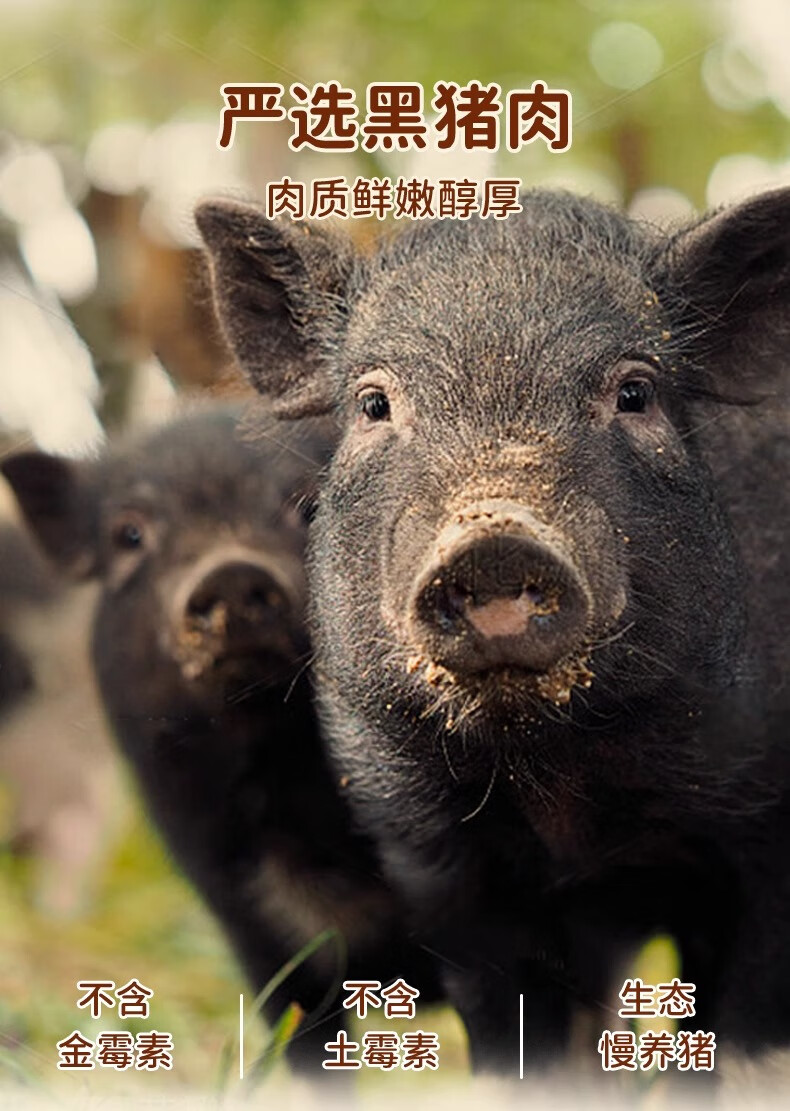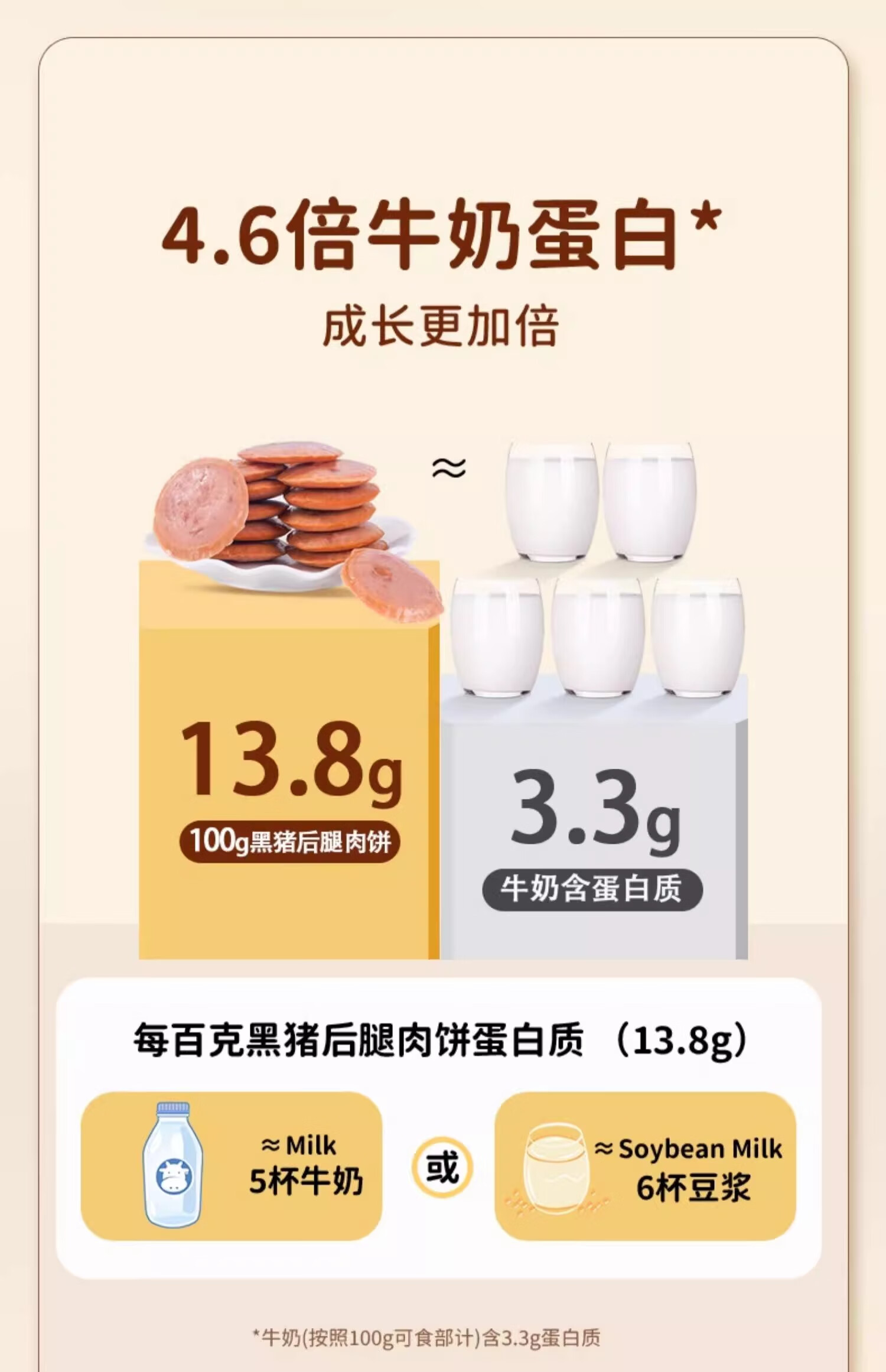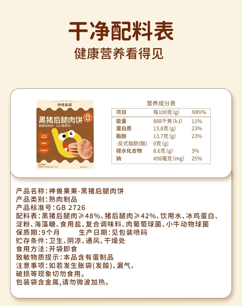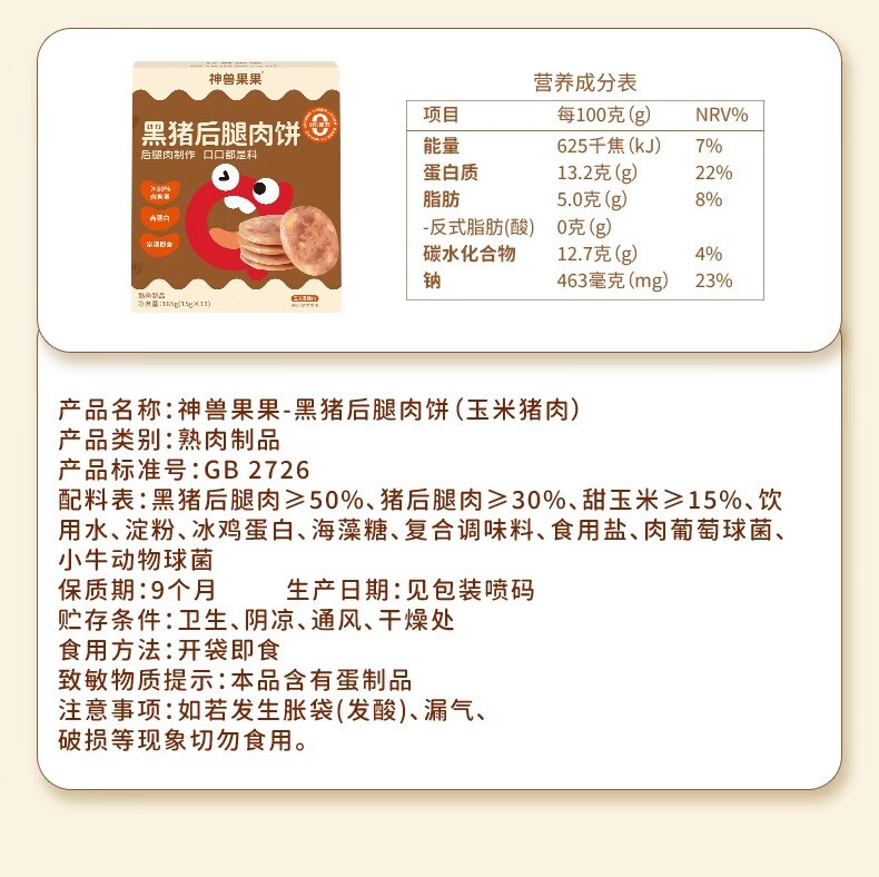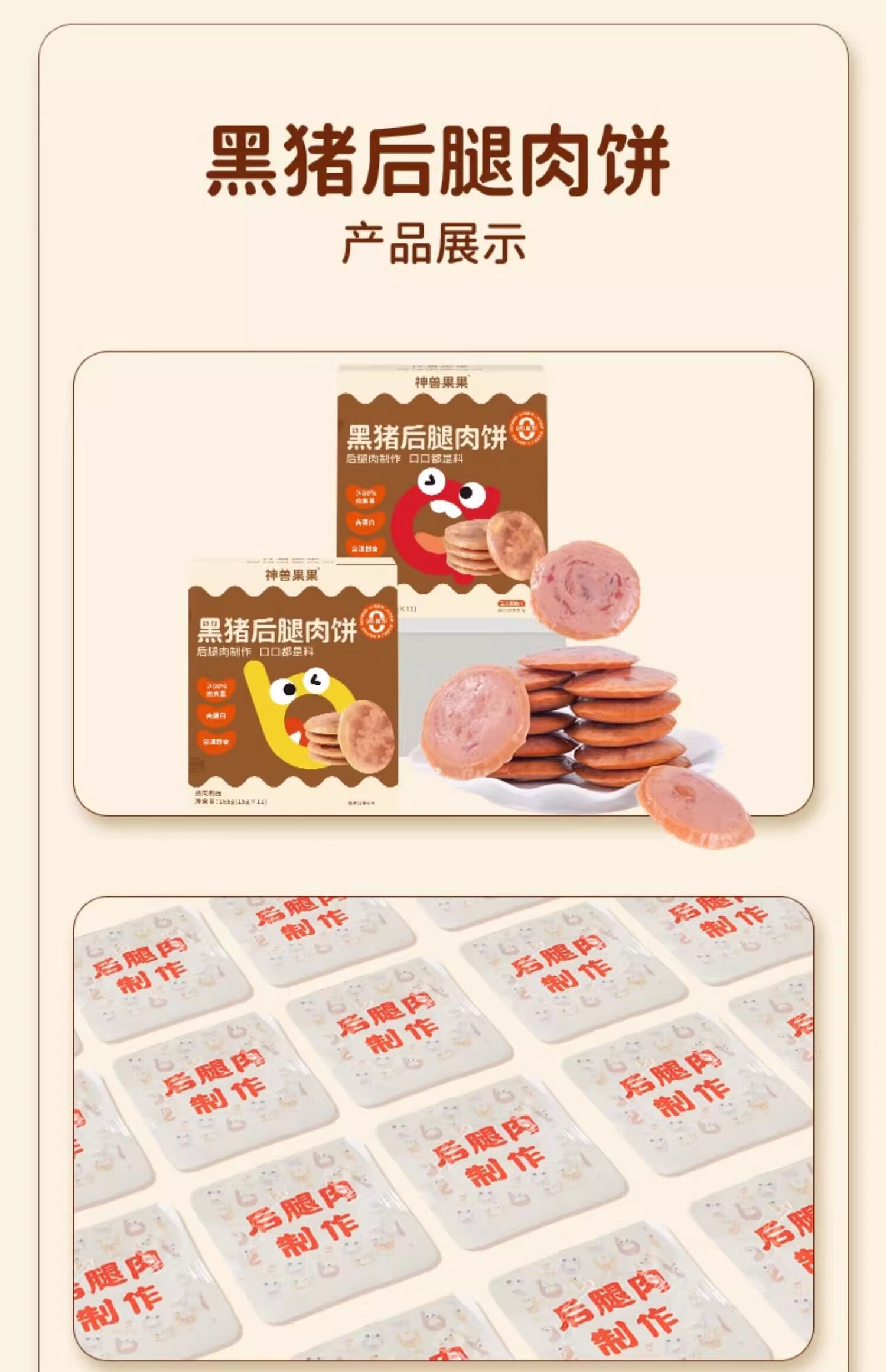 神兽果果黑猪午餐肉儿童零食独立包装即食0添加白砂糖【≥90%后腿肉】 【11袋装】黑猪后腿肉饼-原味