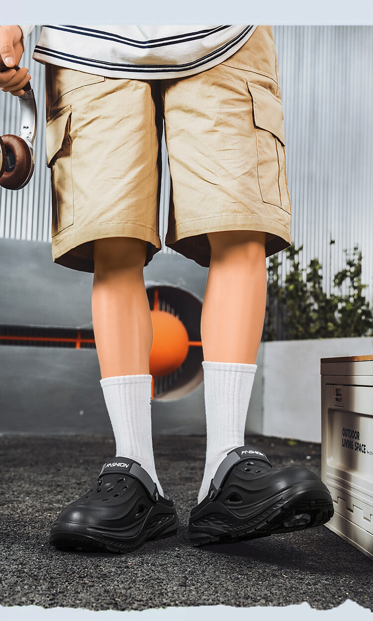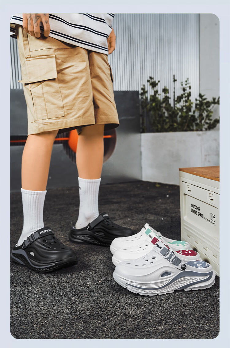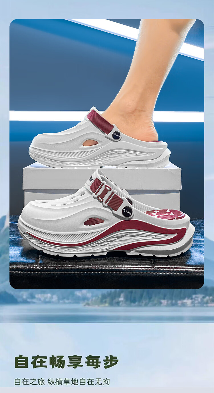 森馬洞洞鞋男潮夏季新款外穿耐磨运动开车凉鞋两用青少年海边沙滩拖鞋 白红【基础款】 38-39 【现货秒发】