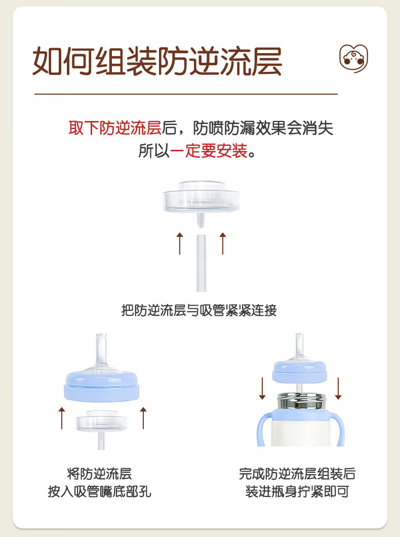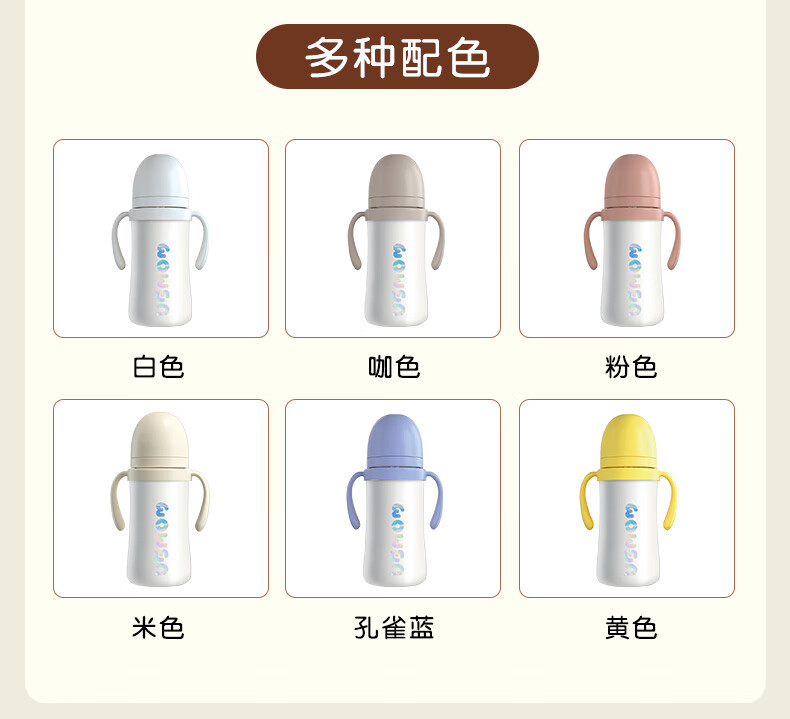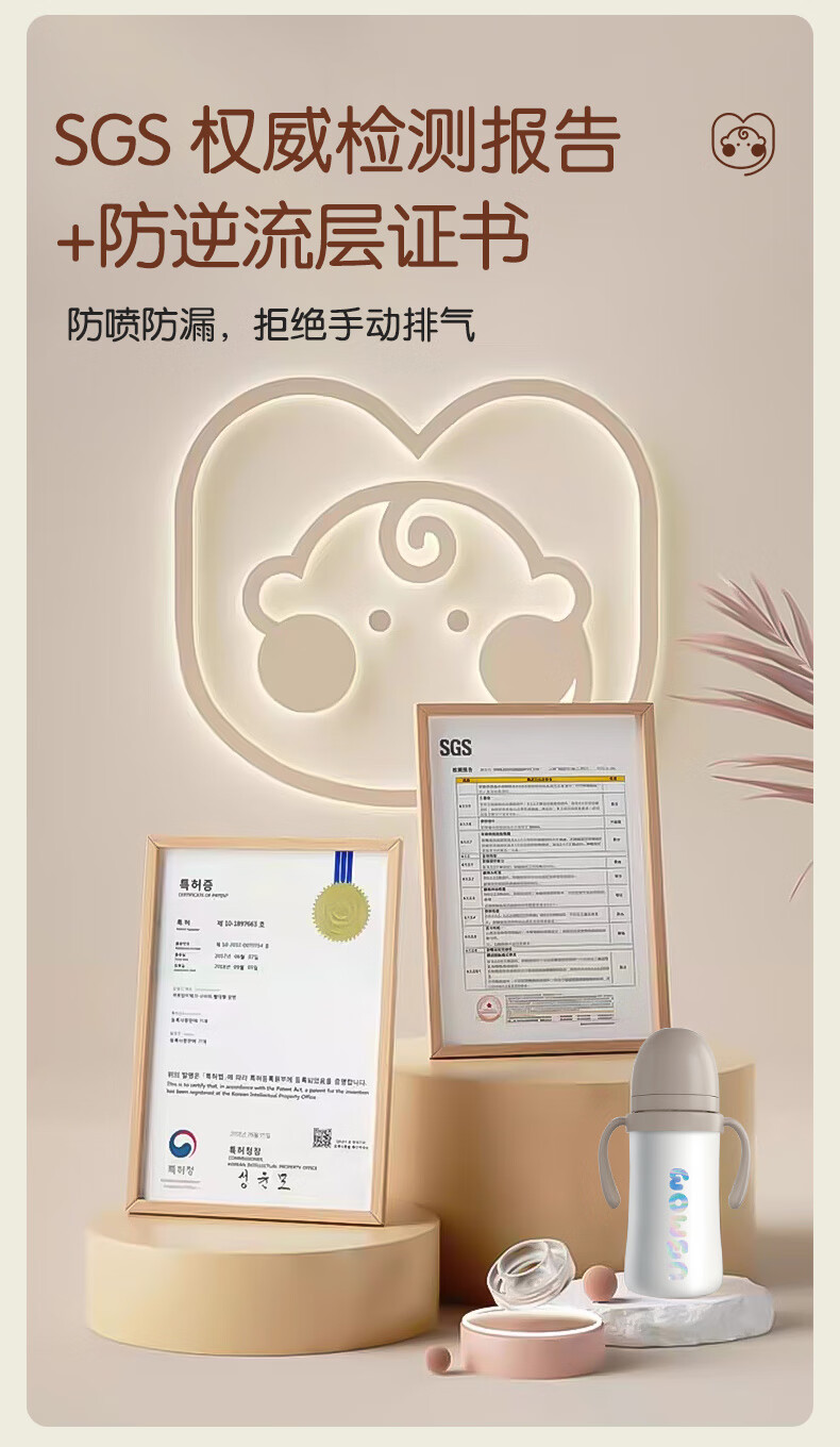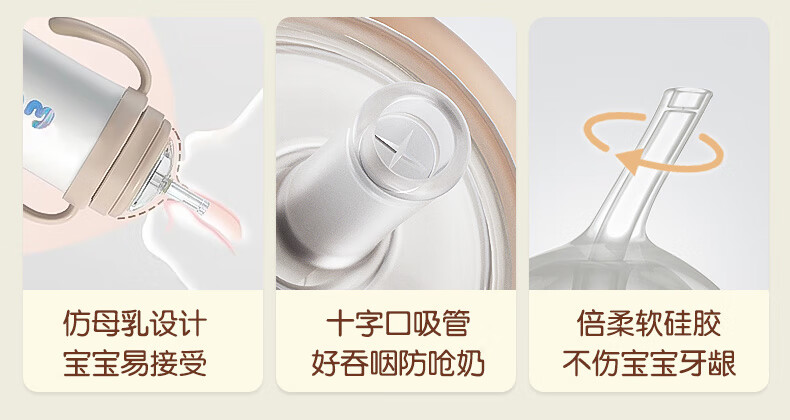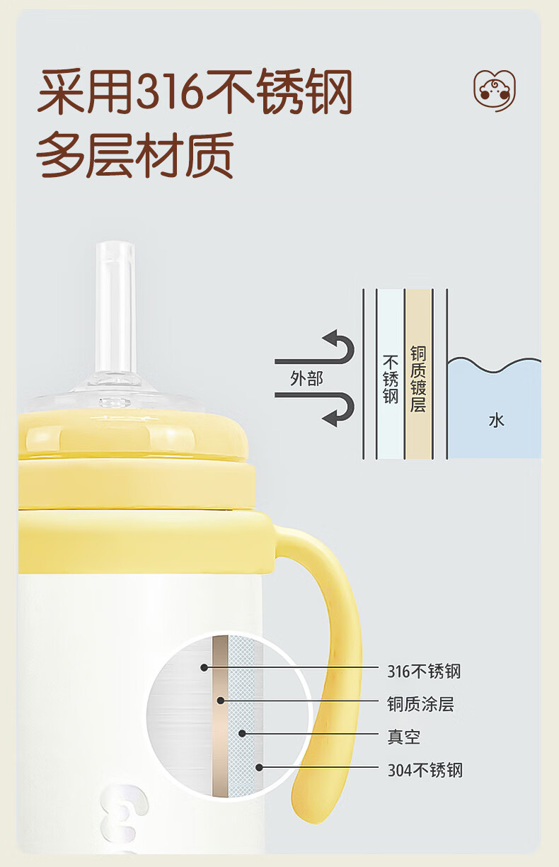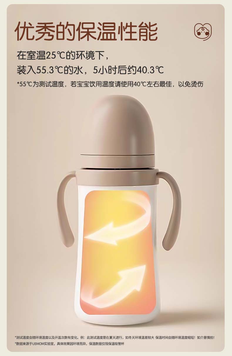 UBMOM韩国婴儿保温杯小月龄6月以上宝宝儿童冲奶不锈钢学饮杯吸管杯 白色 220ml