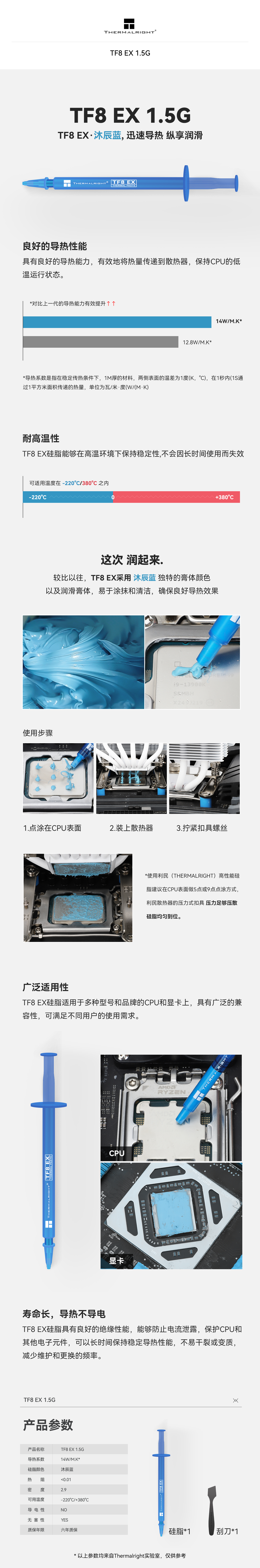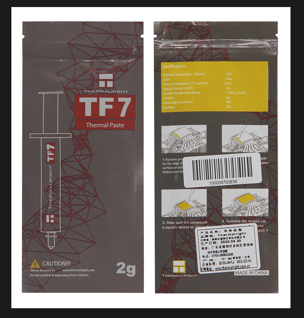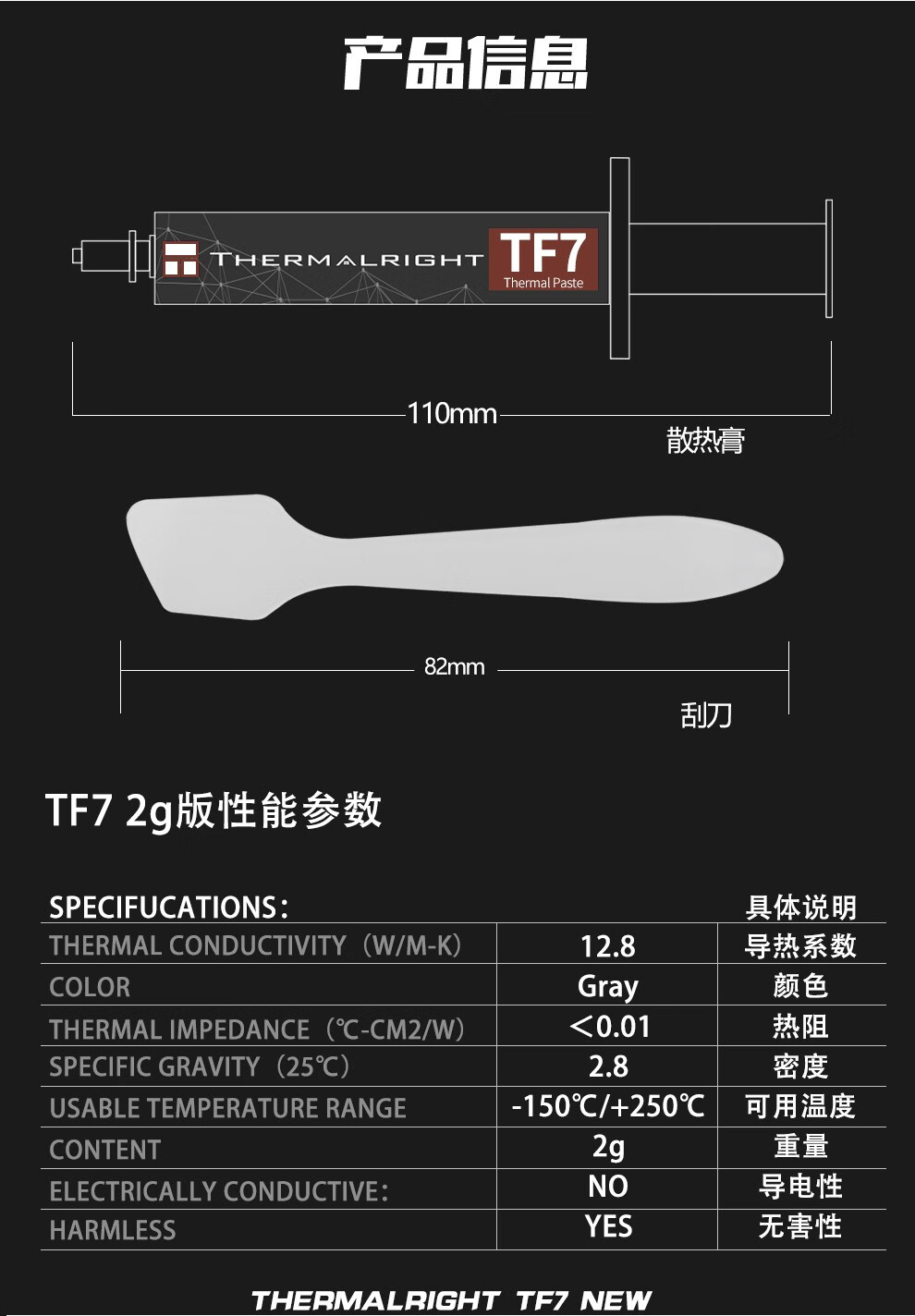 利民(thermalright)TF7/TF8/TF9导热硅脂 CPU散热膏导热系数CPU显卡核心散热风冷水冷游戏笔记本适用 TF7 2g导热硅脂【导热系数12.8】