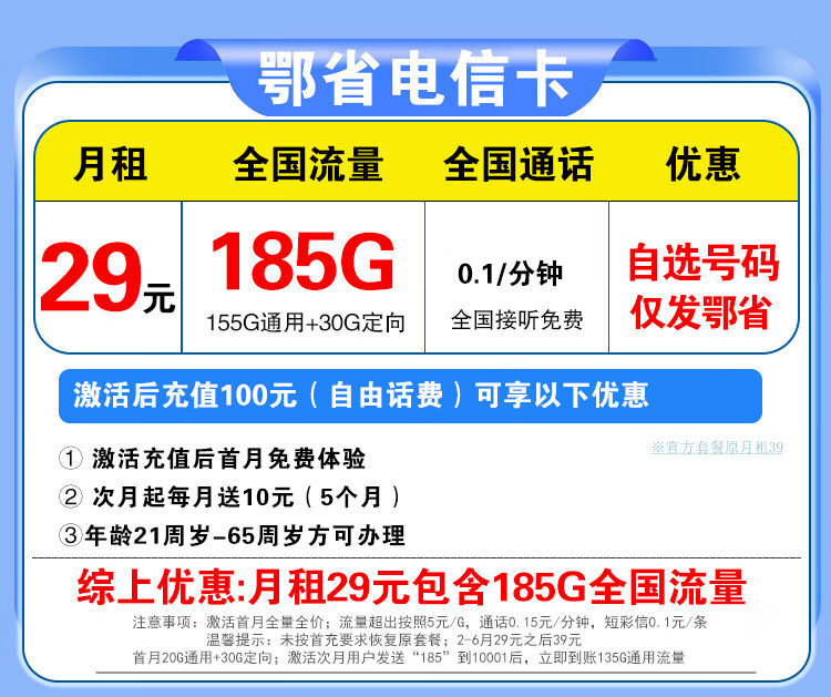 中国电信流量卡电话卡手机卡纯流量卡5G不限速上网卡全国通用无限流量卡非永久流量卡 广东专属-29元205G+100分钟本地超长套餐