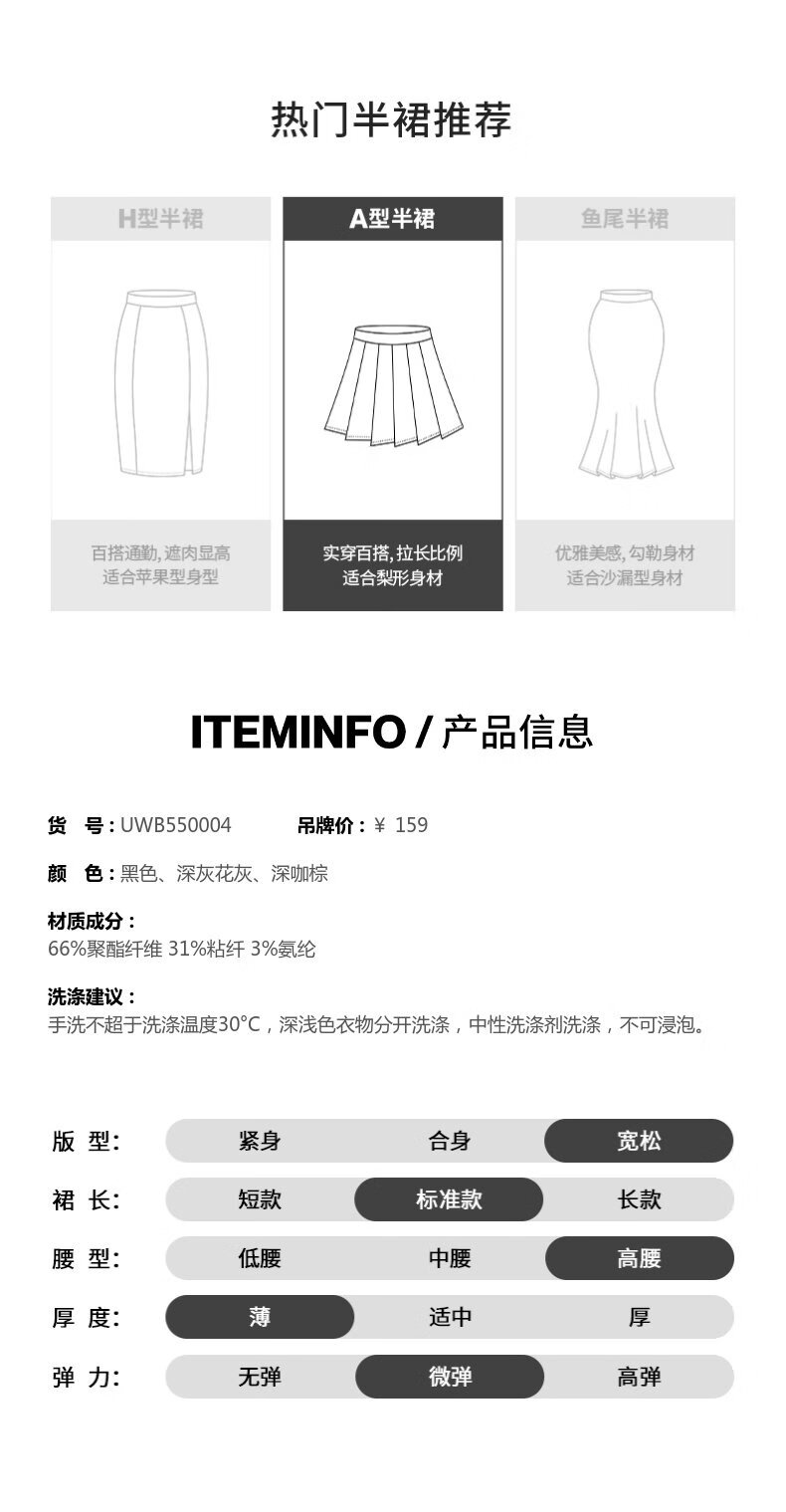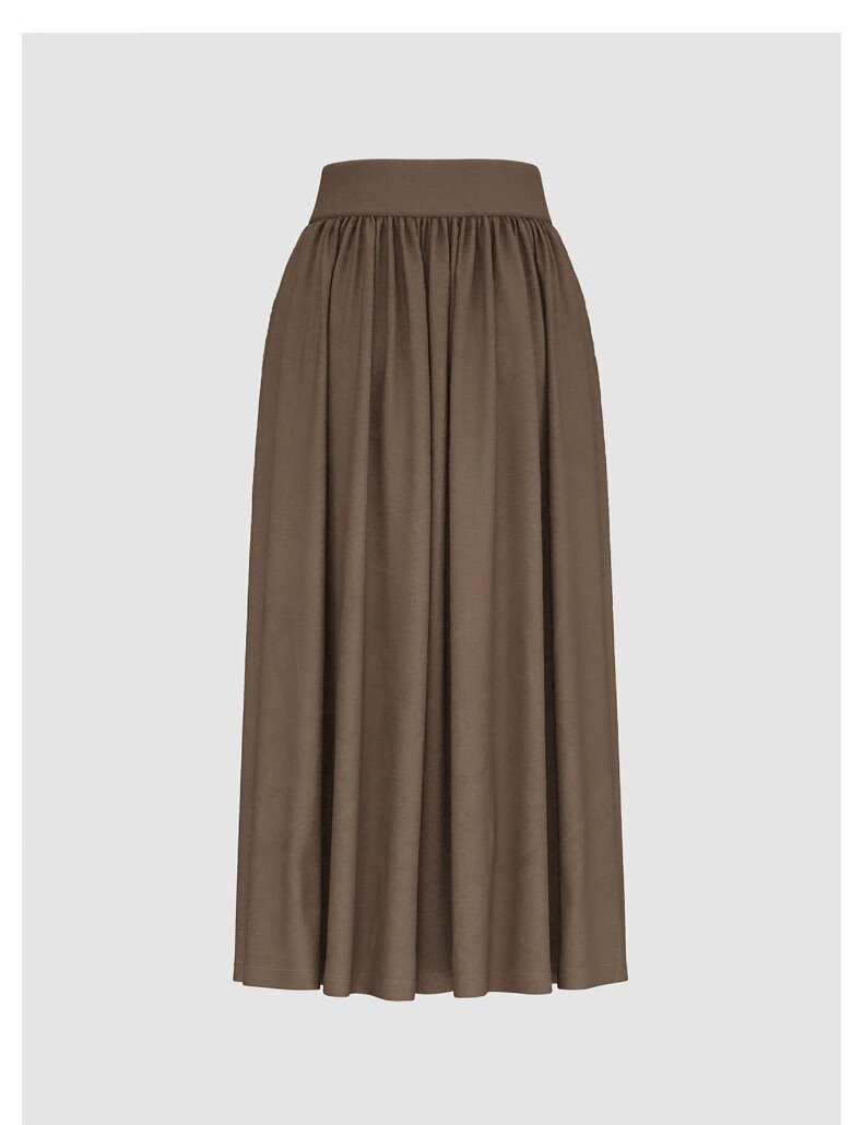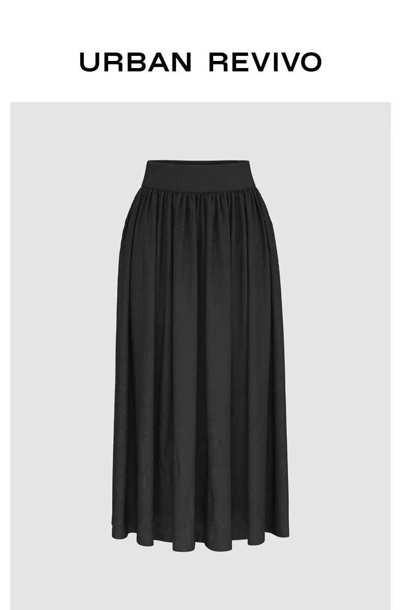 UR2025冬季新款女装简约休闲纯色超宽松高腰A字半裙UWB550004