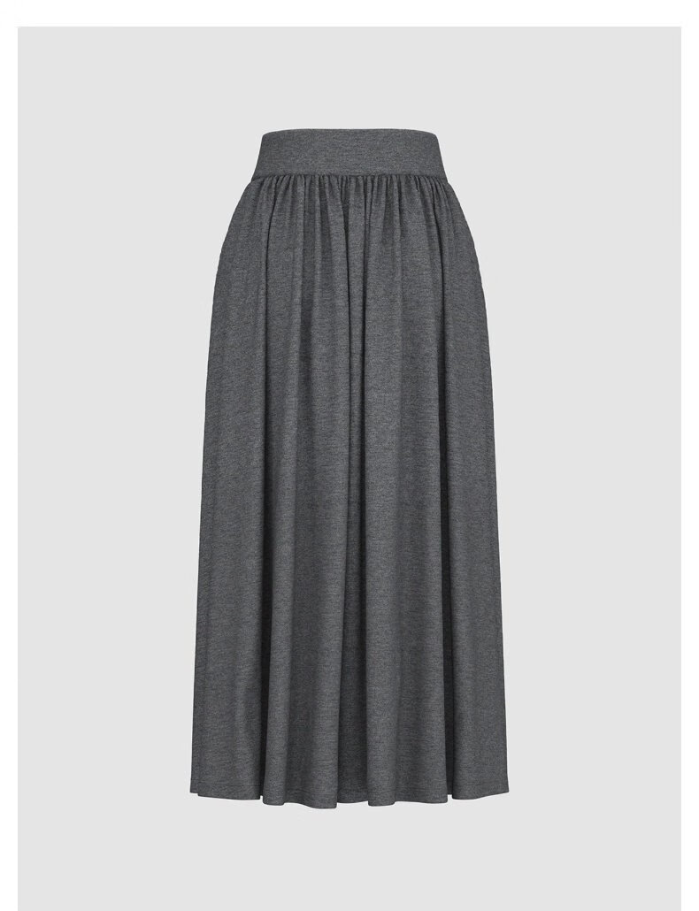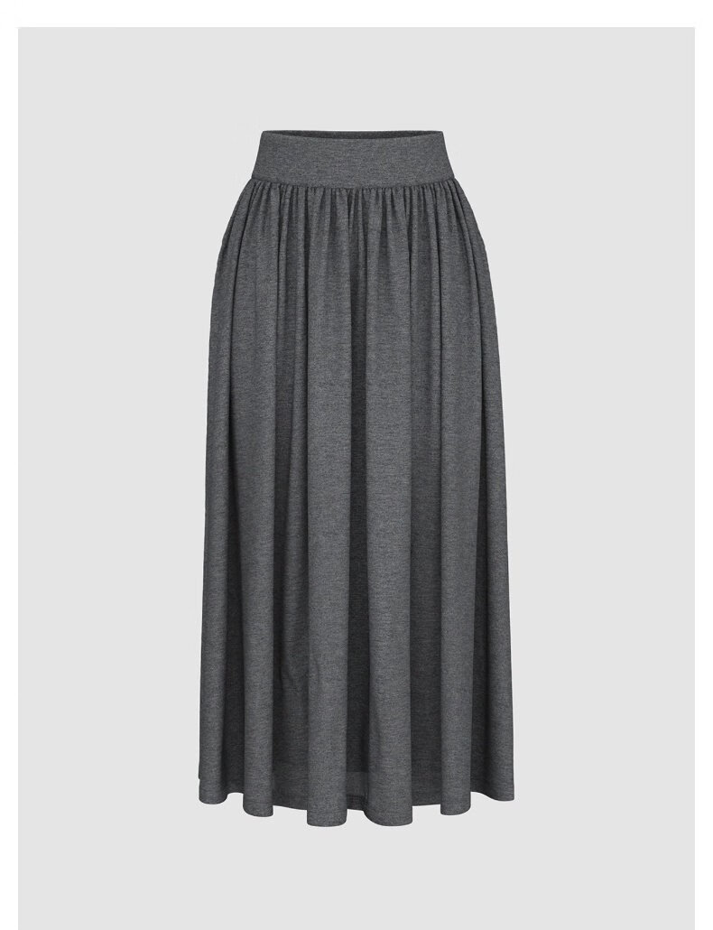 茵曼 格雷系百褶半身裙秋季女装经典A字宽松遮胯显瘦长裙 贵族灰 XL