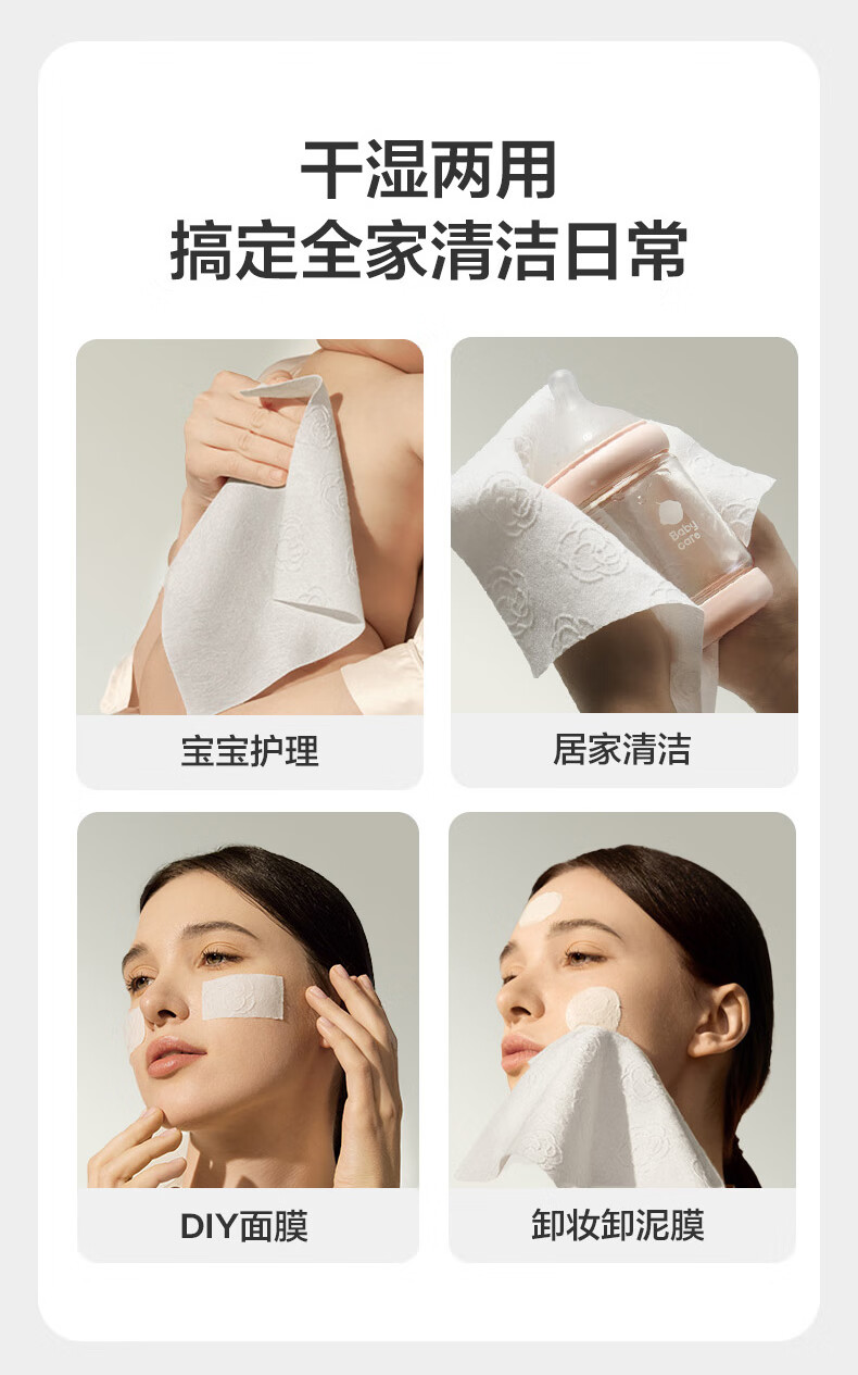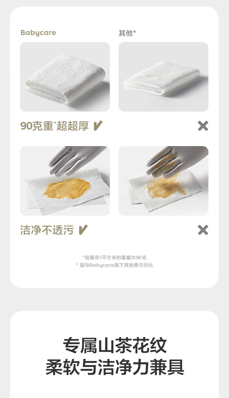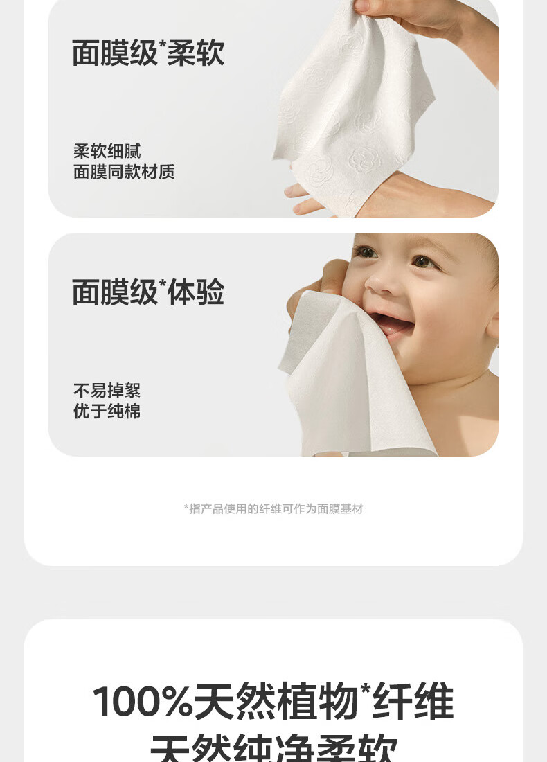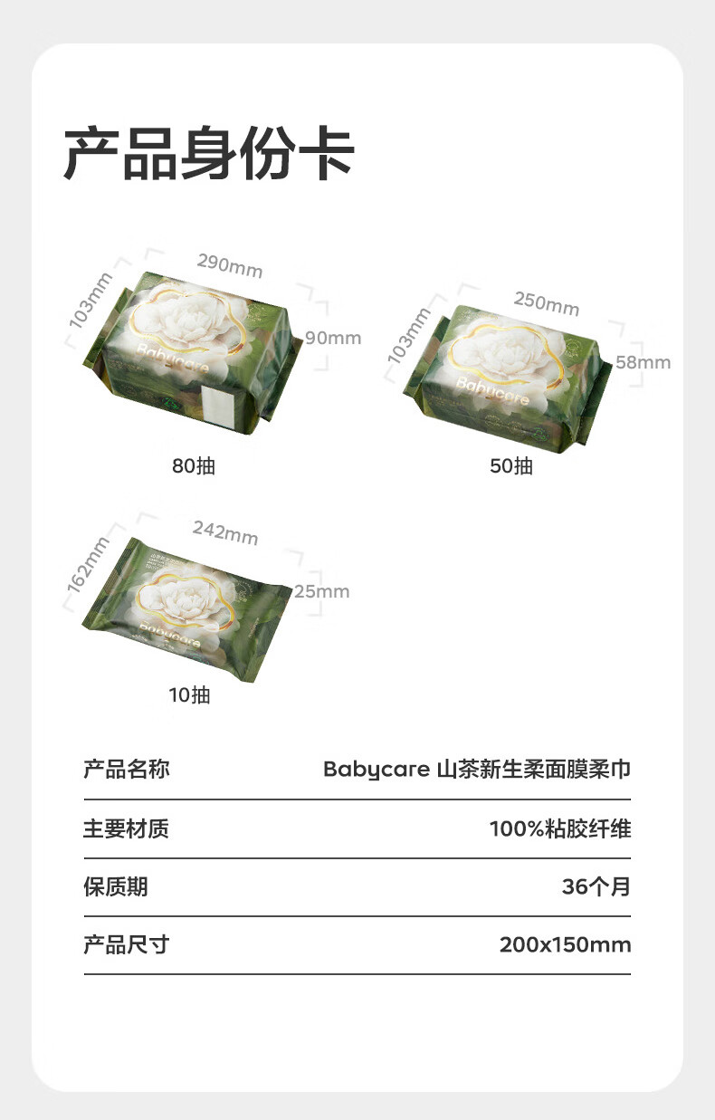babycare面膜柔巾婴儿山茶新生柔超柔乳霜巾一次性洗脸巾绵柔巾 80抽*8包