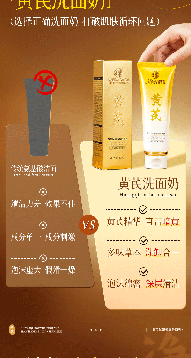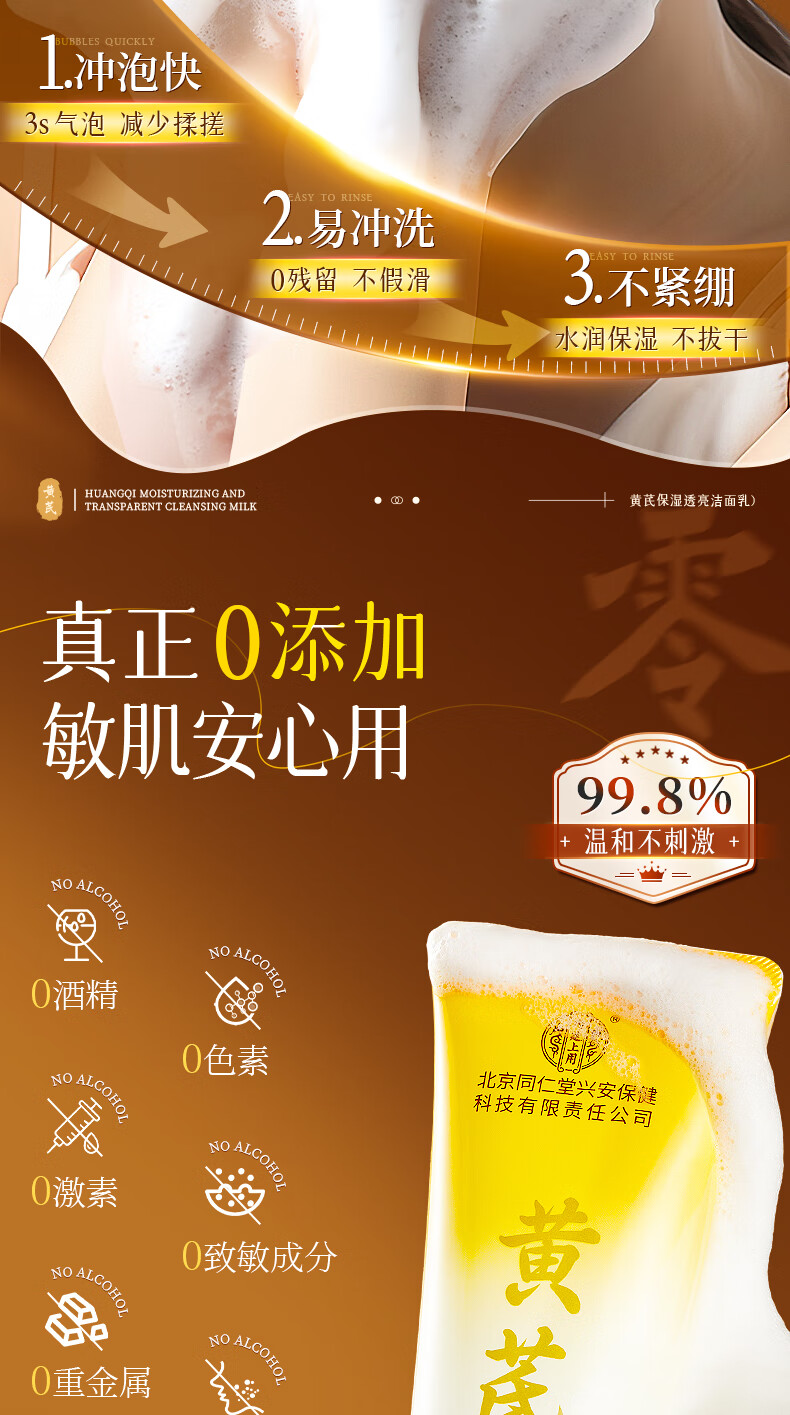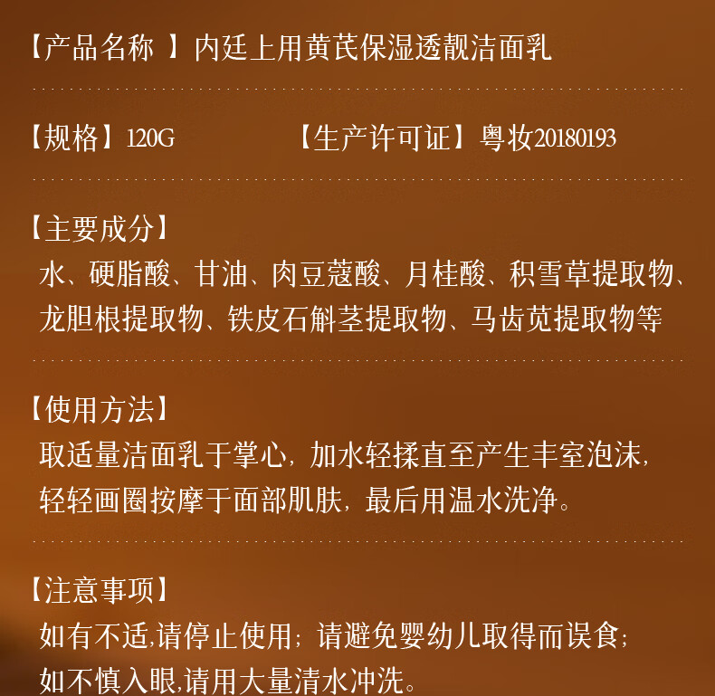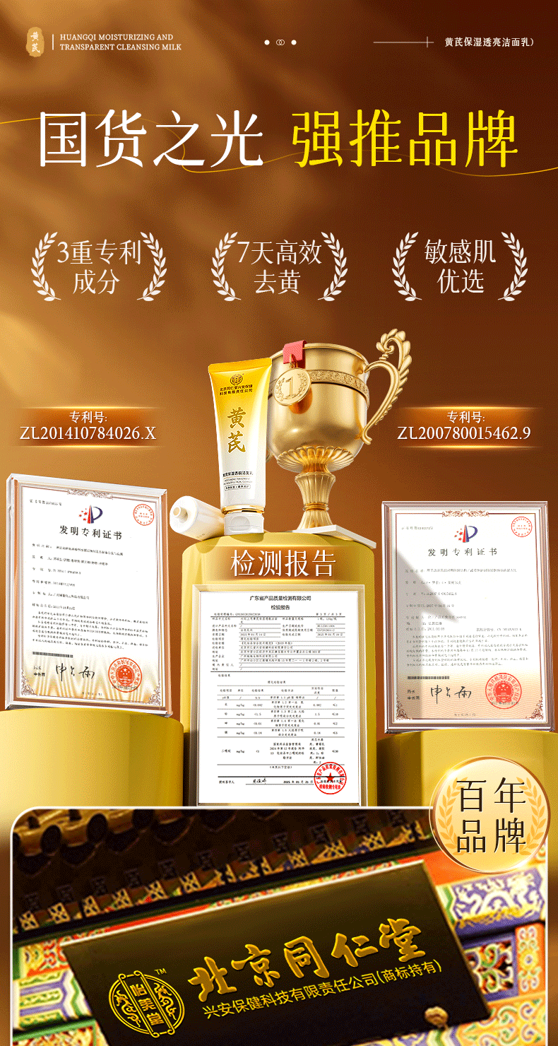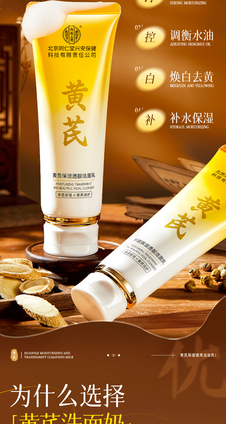 内廷上用北京同仁堂烟酰胺洗面奶男女补水控油提亮肤色改善黑头黄气洁面乳 【1盒体验装】120g/盒