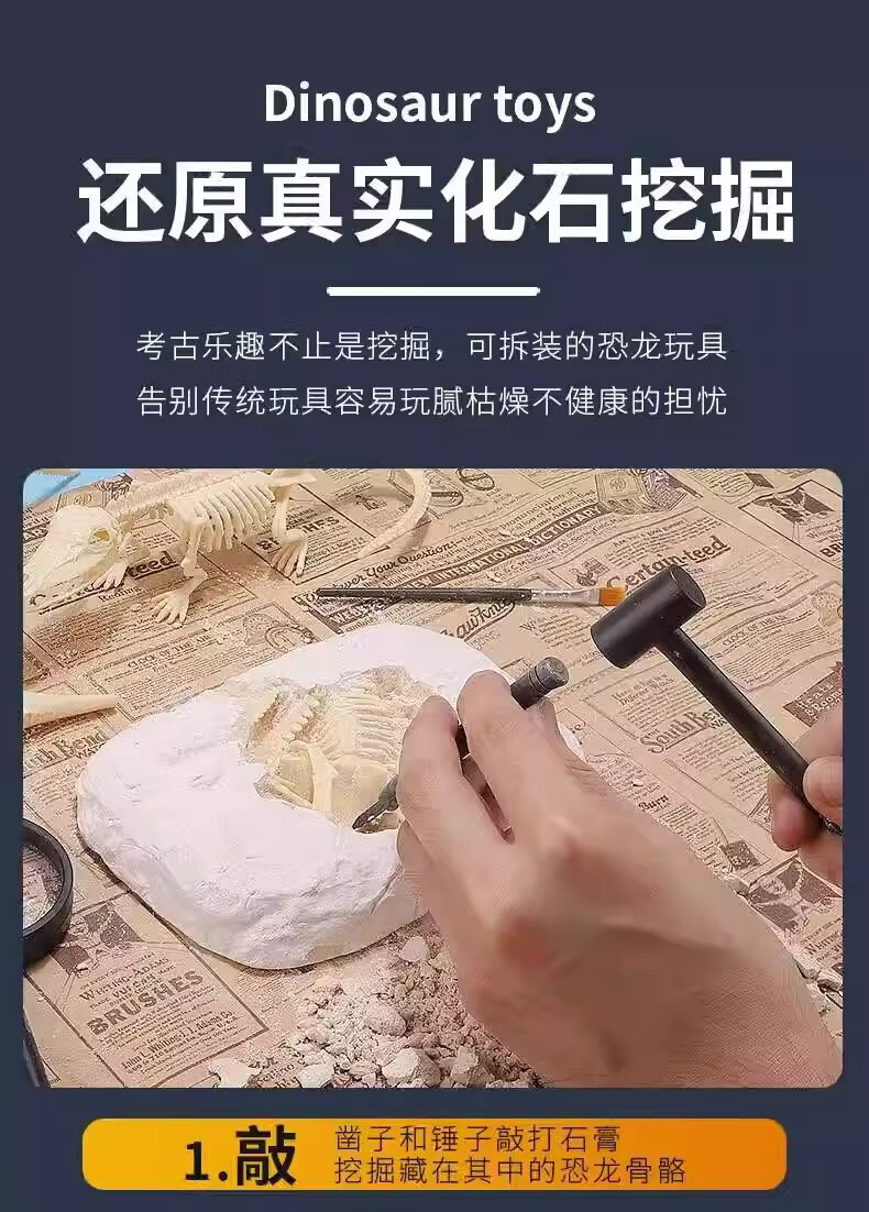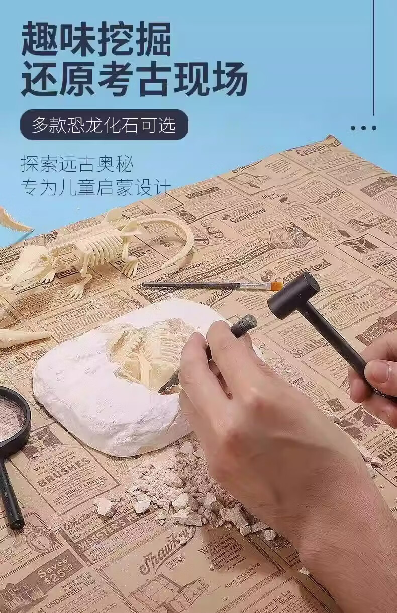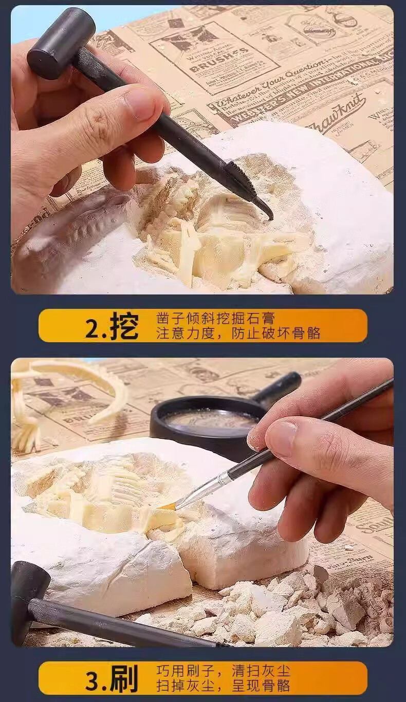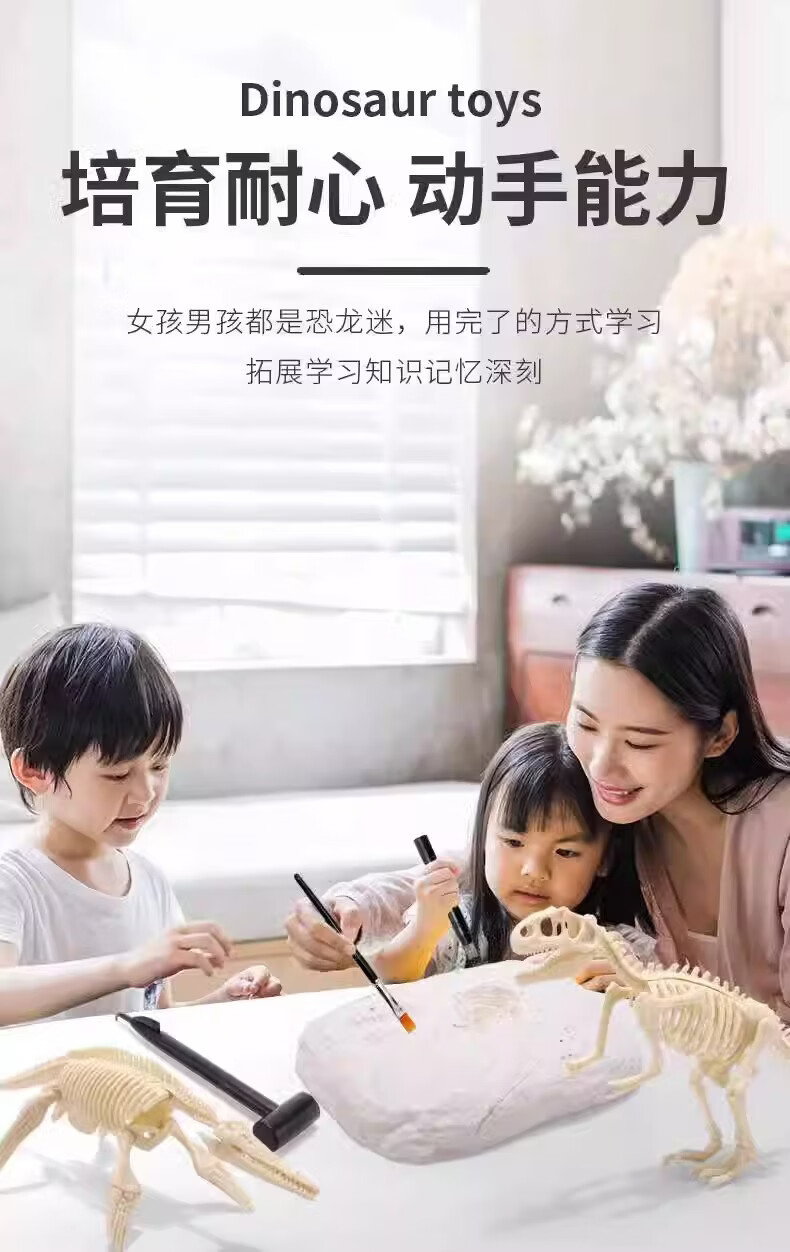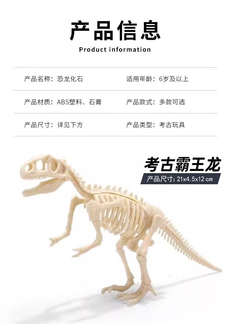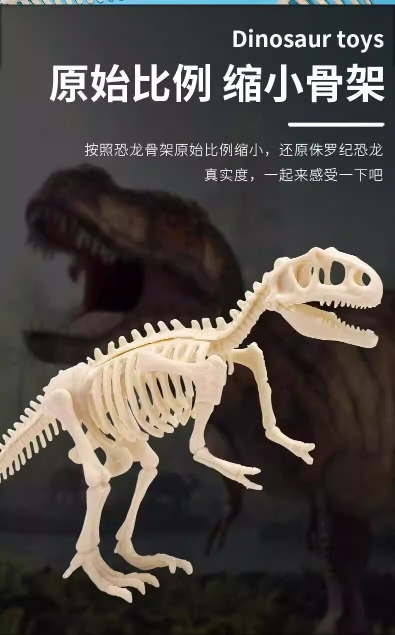 【好物优选】恐龙化石考古挖掘儿童玩具挖土盲盒霸王龙骨架模型三 彩盒装霸王龙