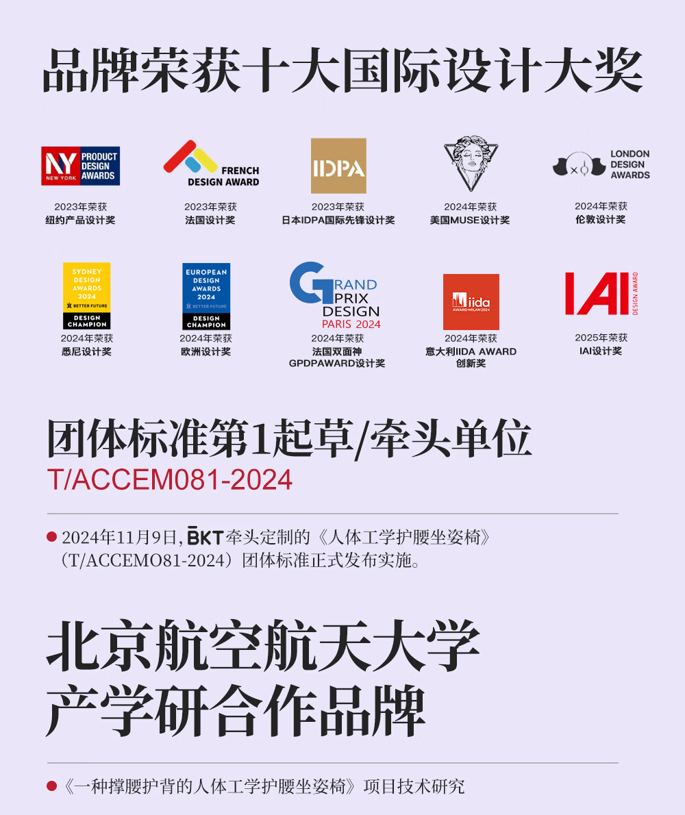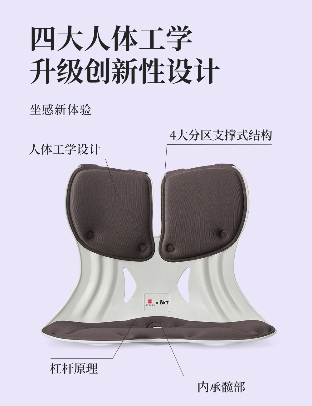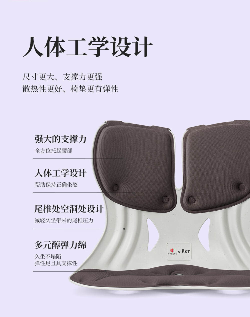 BKT护腰坐垫久神器靠背人体工学椅座姿托办公室部支撑官方旗舰店 超大版-神秘黑【300斤以内适用】