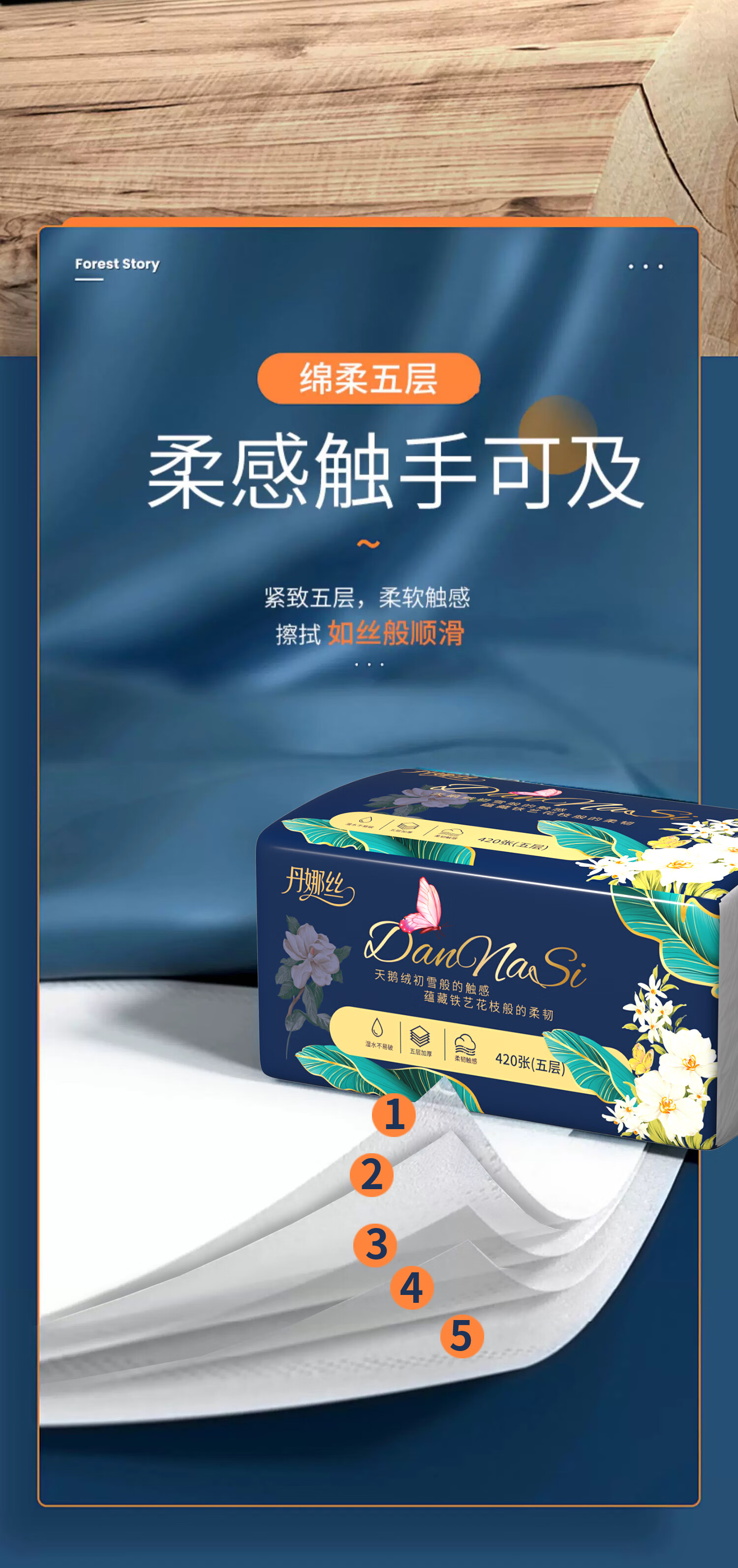 丹娜丝【严选好物】抽纸420张加量款面巾纸超市加厚大尺寸家庭装卫生纸 5层 420张*2包