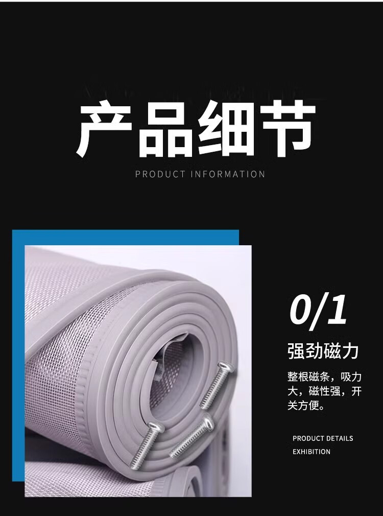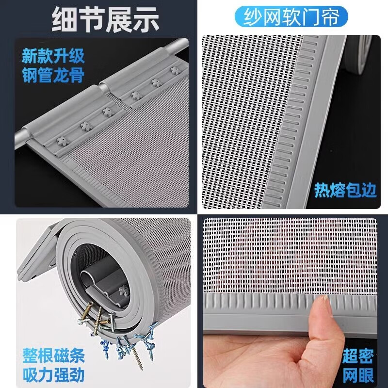 大门专用防蚊门帘店铺商用磁性纱网门市夏季饭店超市食堂防蝇穿杆 40厘米宽双丝送杆+配重 高度220厘米