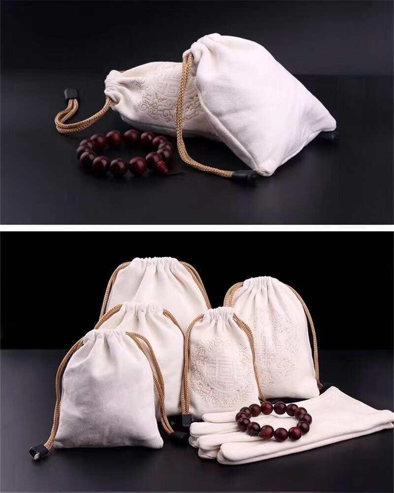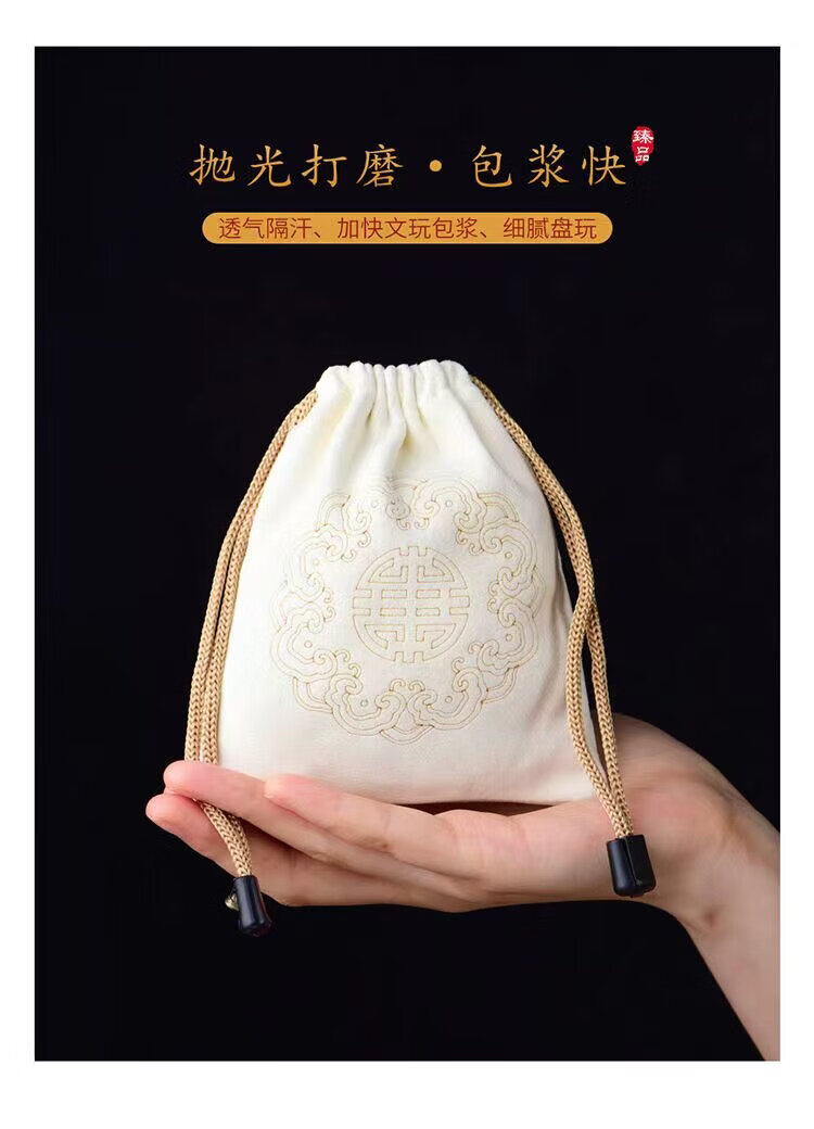 麂皮文玩手套鹿皮盘珠袋文玩袋子星月菩提紫檀金刚包浆 印红花 大号 约17x21CM