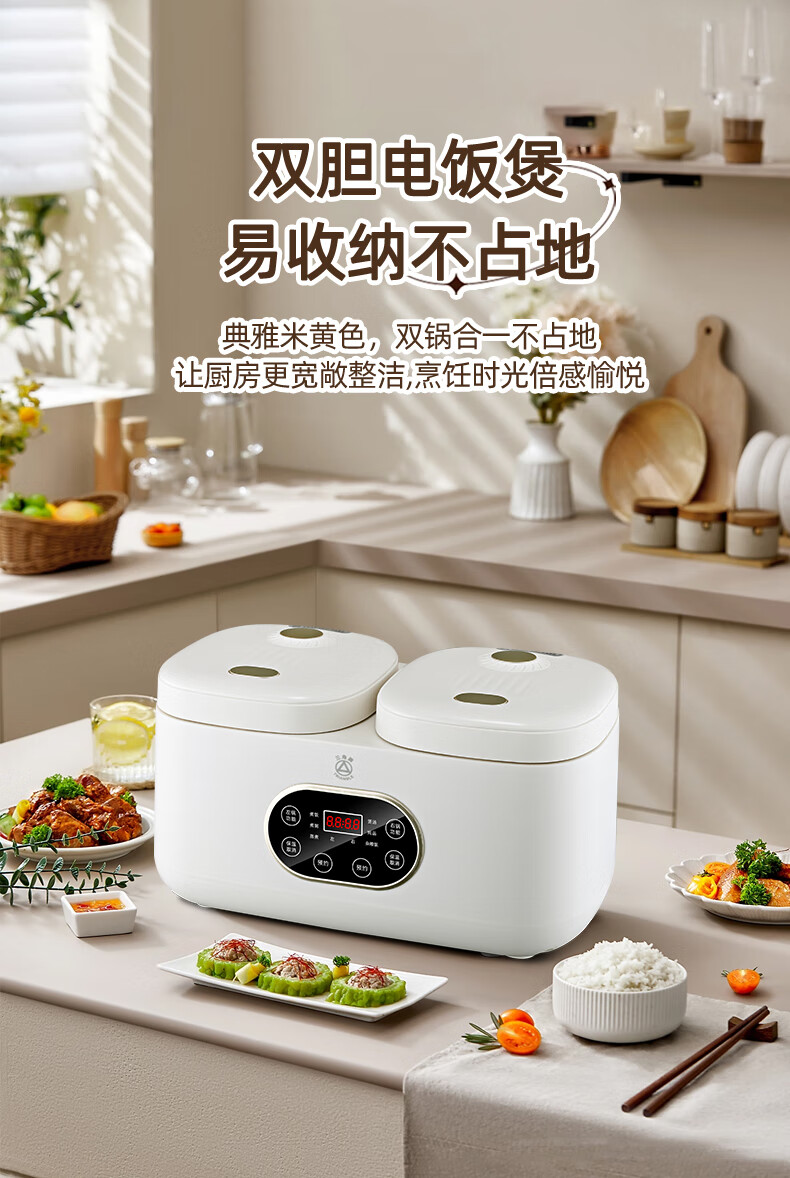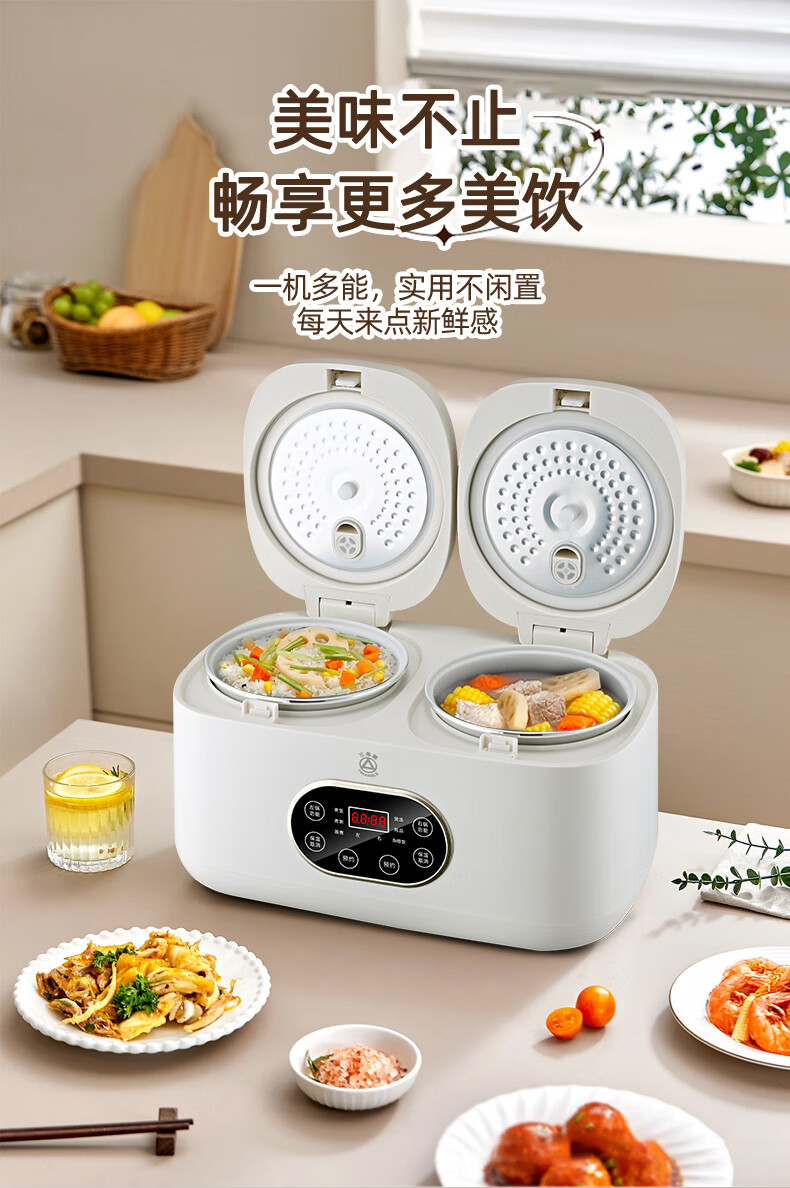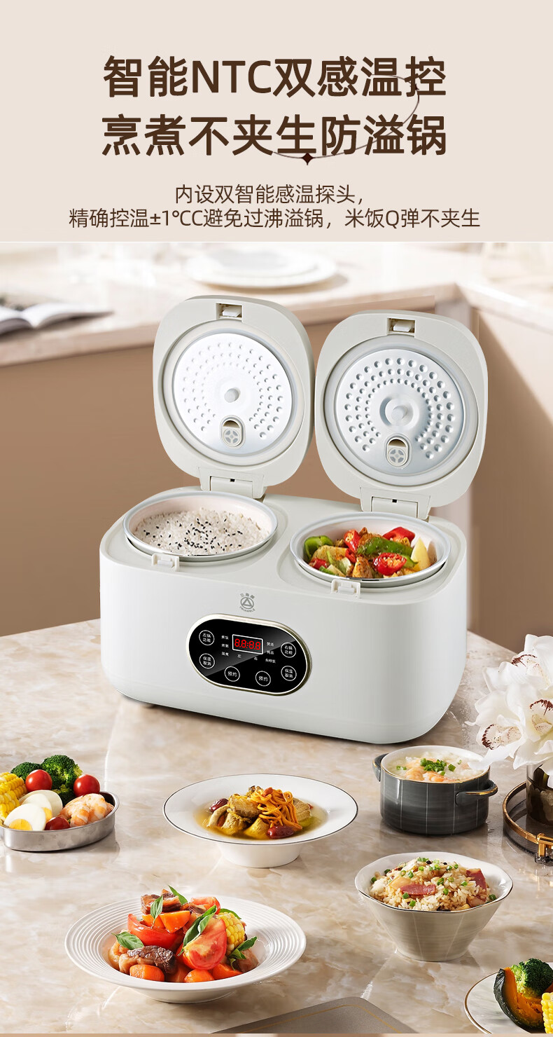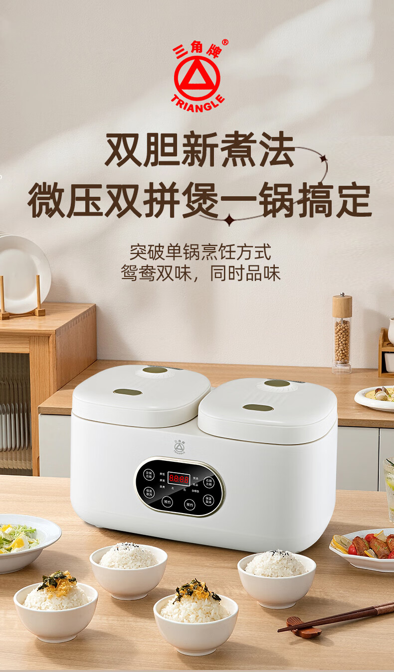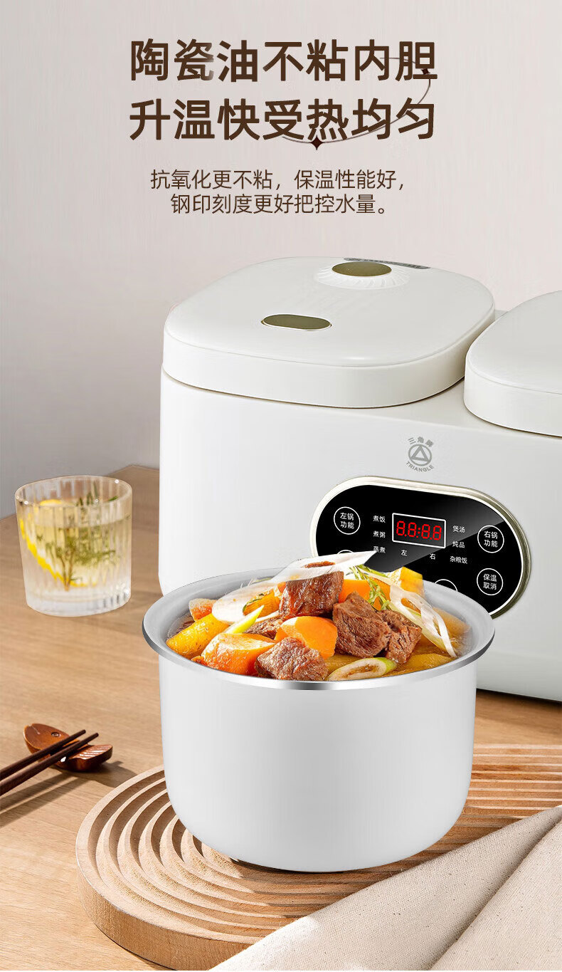 三角牌(Triangle)双胆电饭煲电饭锅 家用2L+2L双胆双控二合一多功能低糖煲3-4人用煮饭微压煲汤煮饭煲汤锅 2L+ 2L 陶瓷油内胆-低糖款