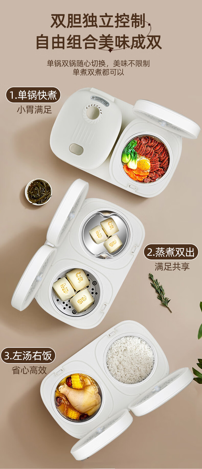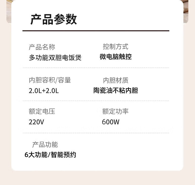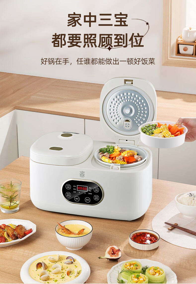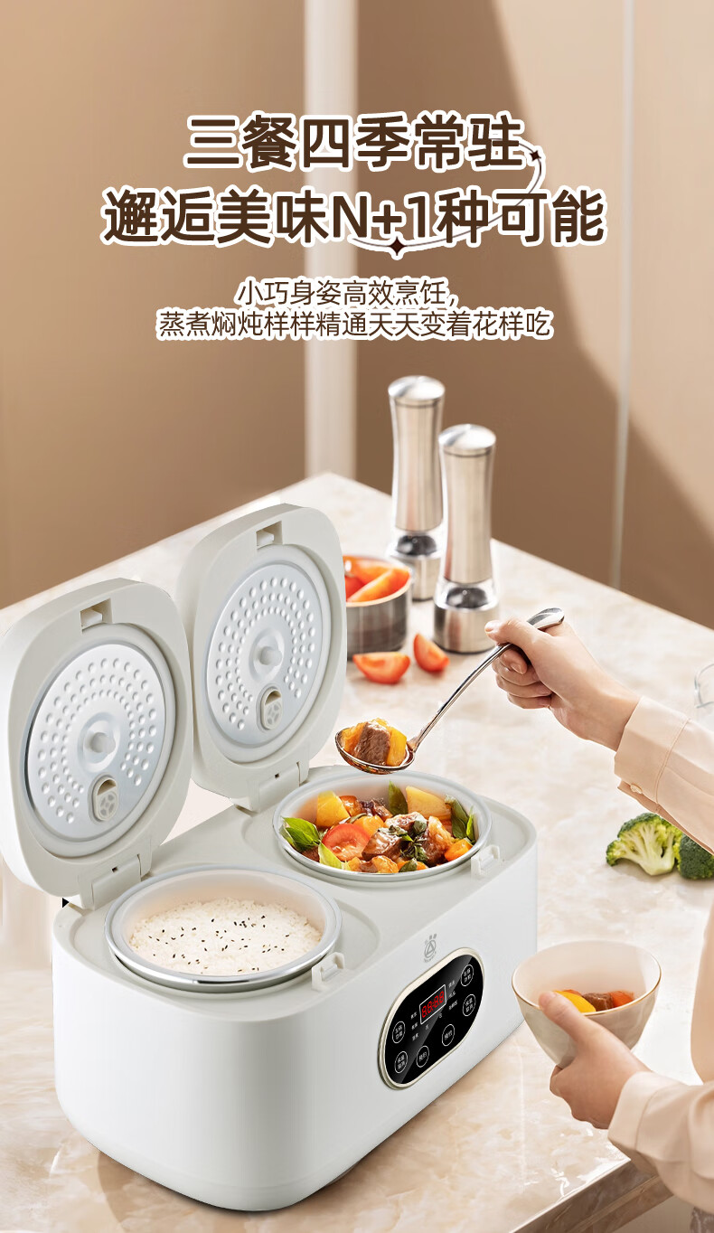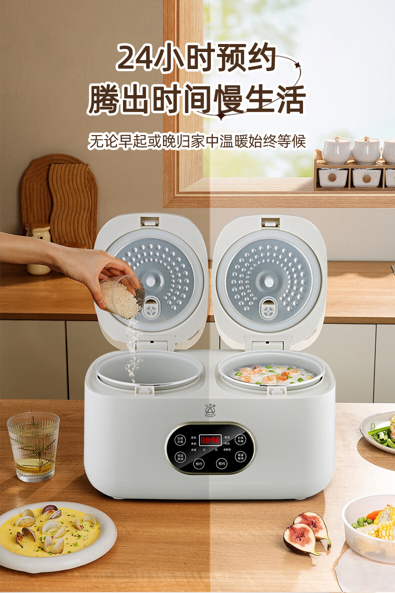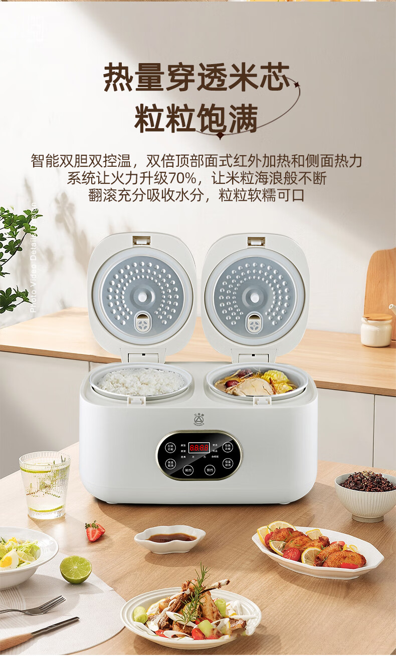 三角牌(Triangle)双胆电饭煲电饭锅 家用2L+2L双胆双控二合一多功能低糖煲3-4人用煮饭微压煲汤煮饭煲汤锅 2L+ 2L 陶瓷油内胆-低糖款