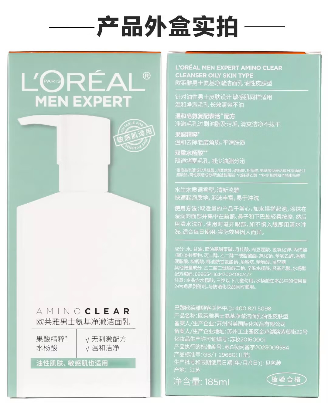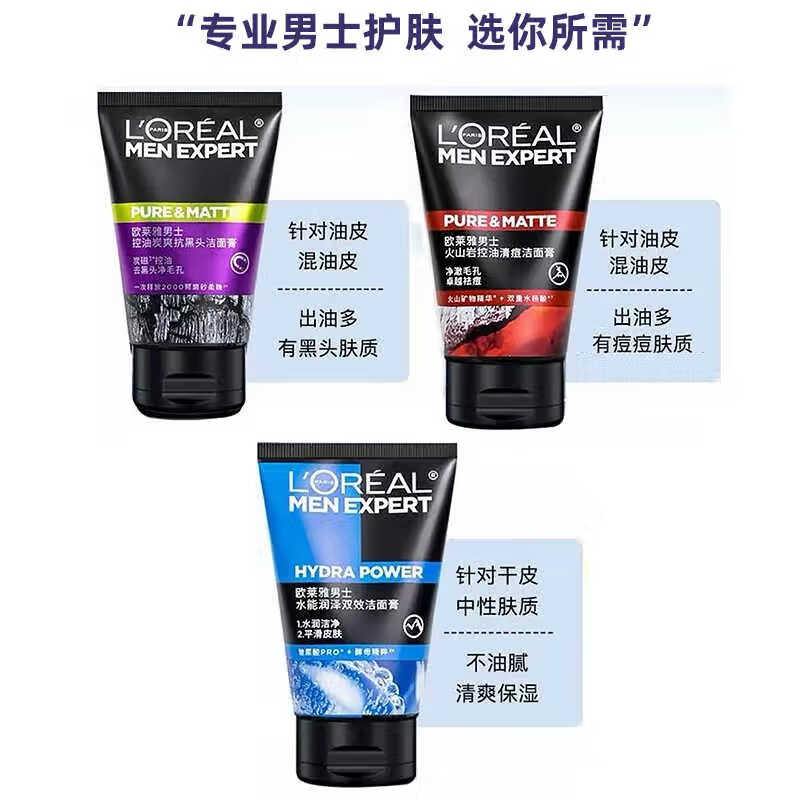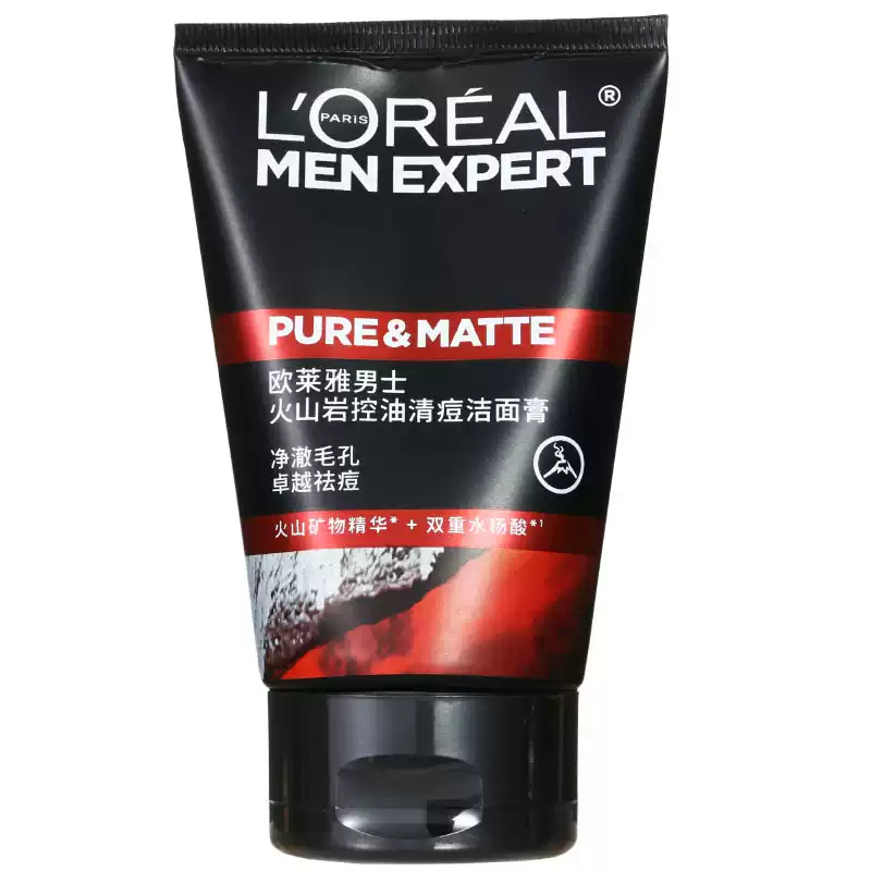 欧莱雅【严选】男士洁面乳洗面奶 氨基酸清洁毛孔抗痘清痘温和护肤品 火山岩控油清痘洁面100ml