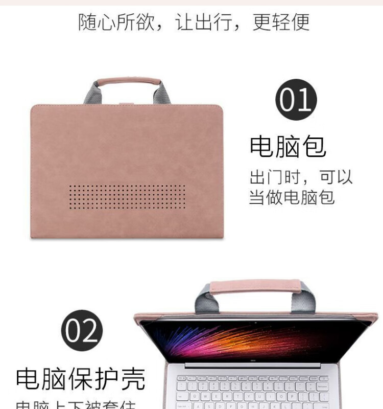 贺美诗适用小米笔记本RedmiBook14电脑包15.6保护套pro16内胆13.3皮套 手提款深灰+收纳包-留言电脑型号 16英寸